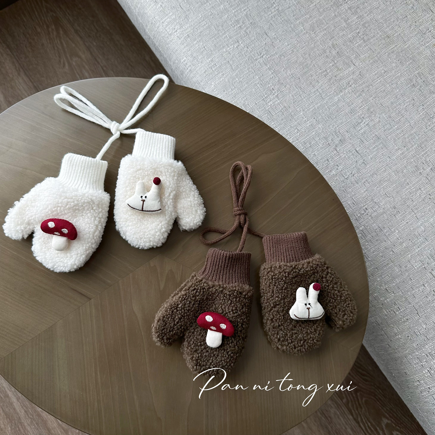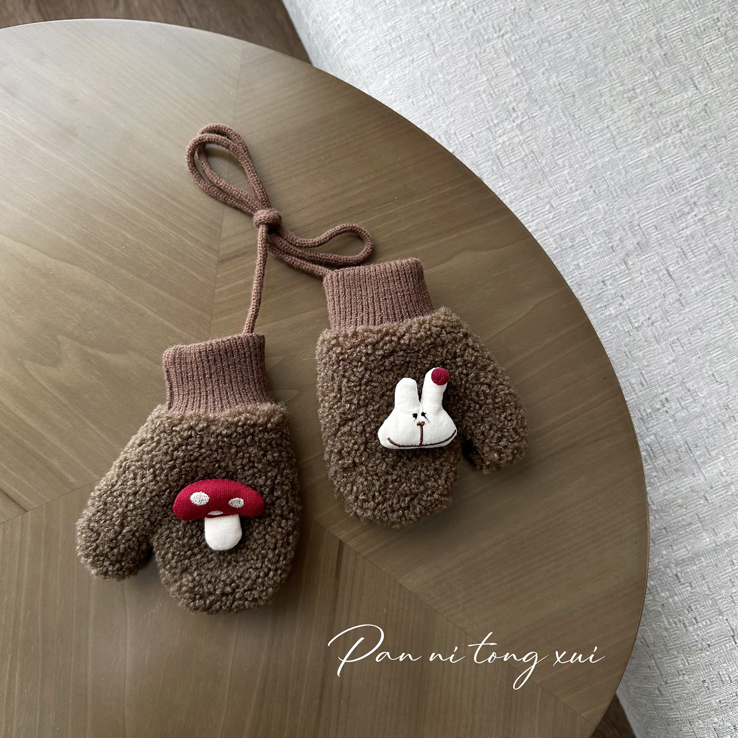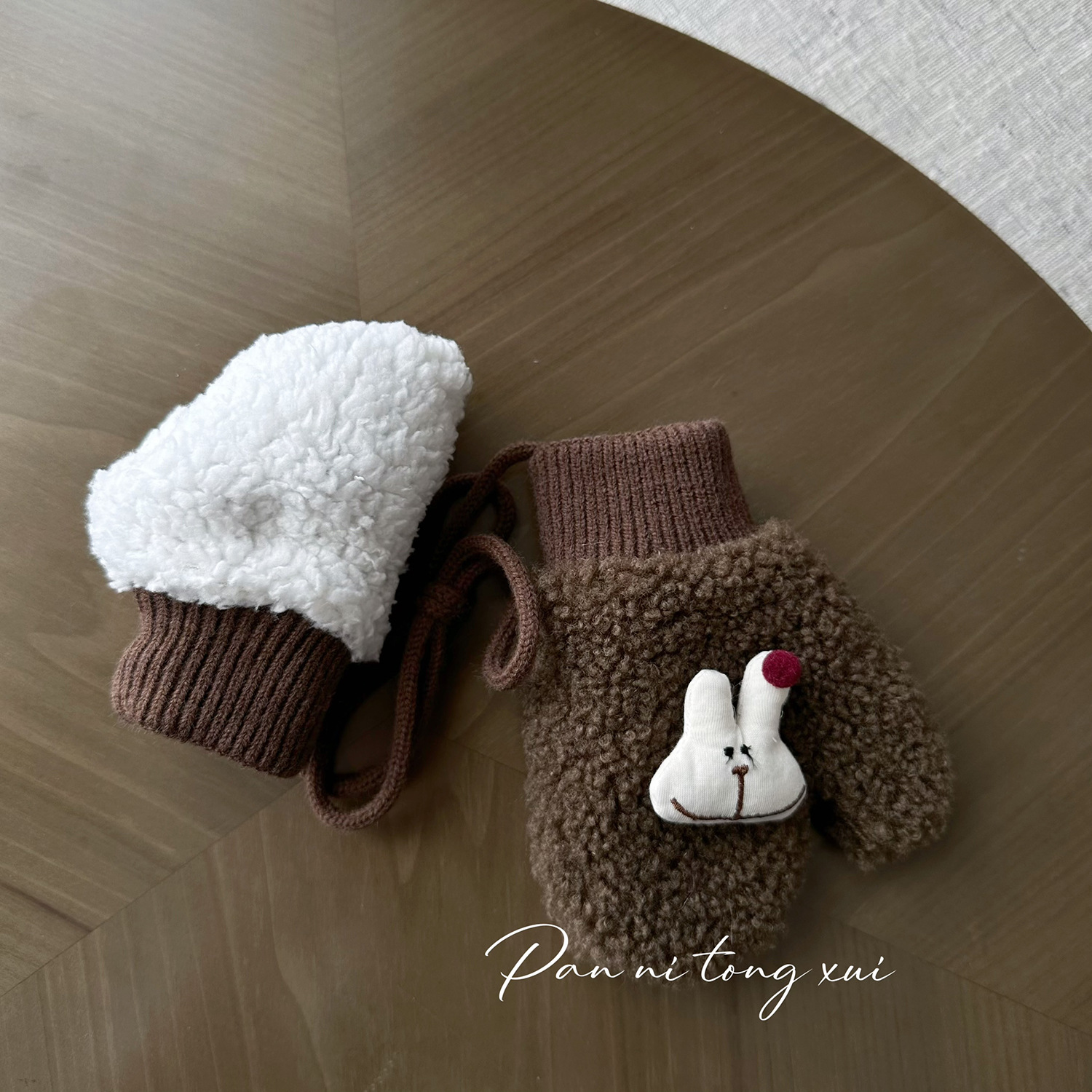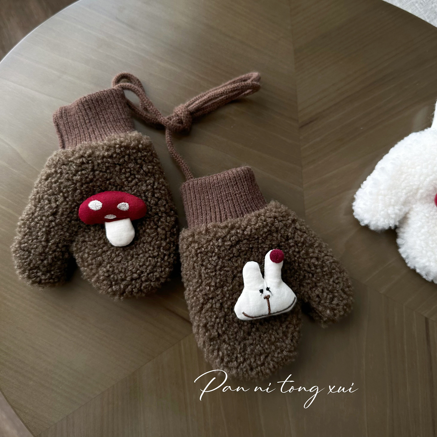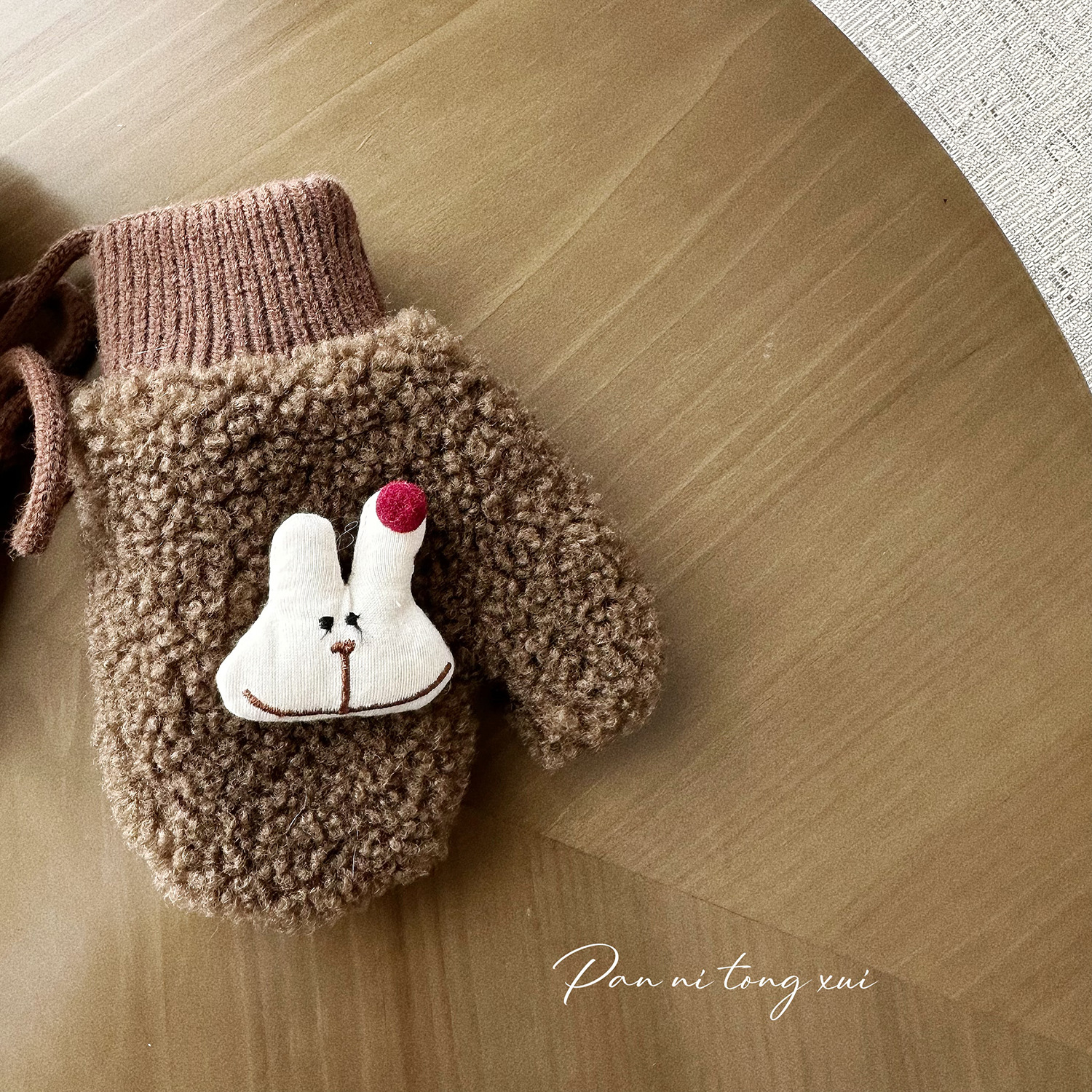 어린이 봉제 장갑 한국 스타일 귀여운 소년 소녀 두꺼운 기모 목 만화 토끼 겨울 따뜻한 장갑