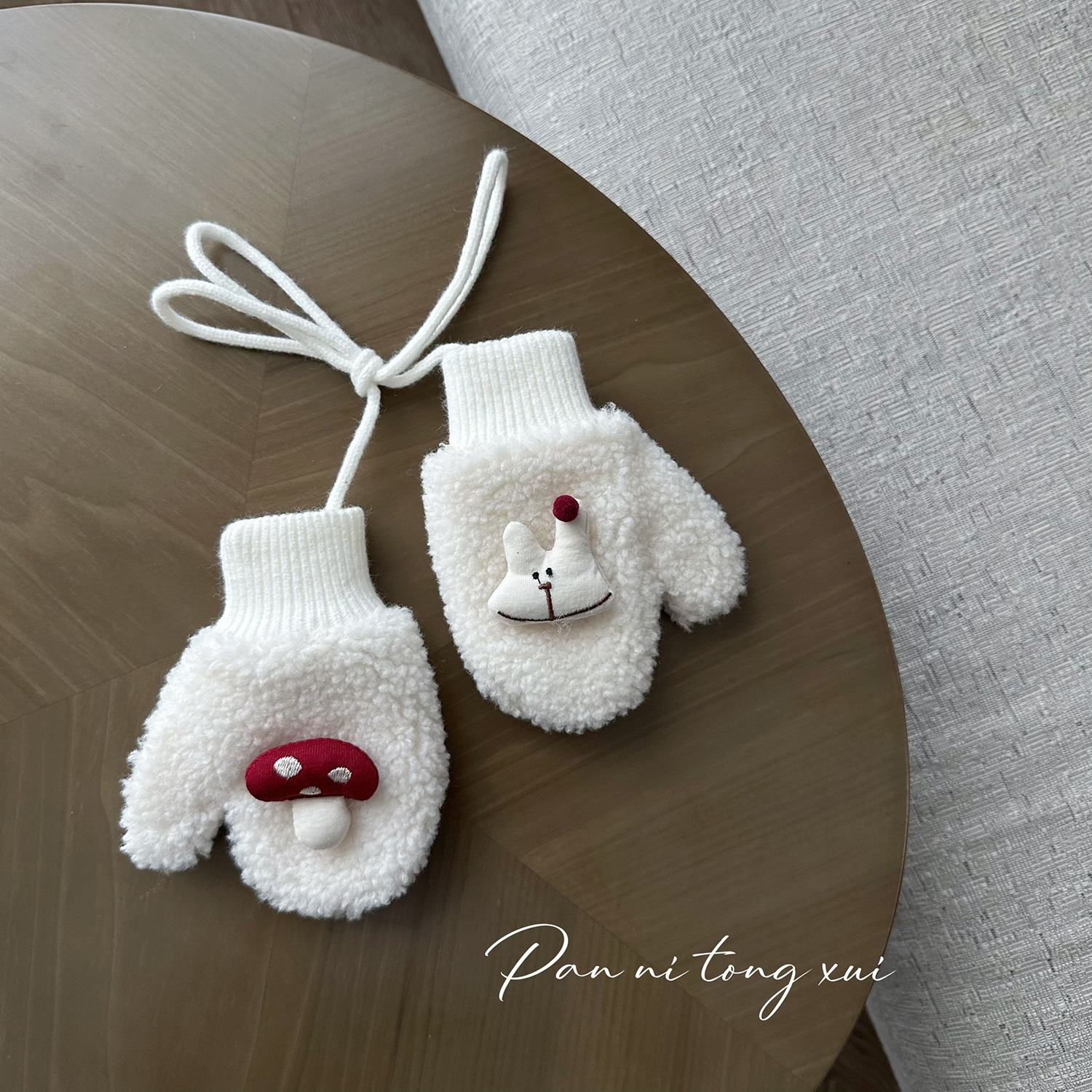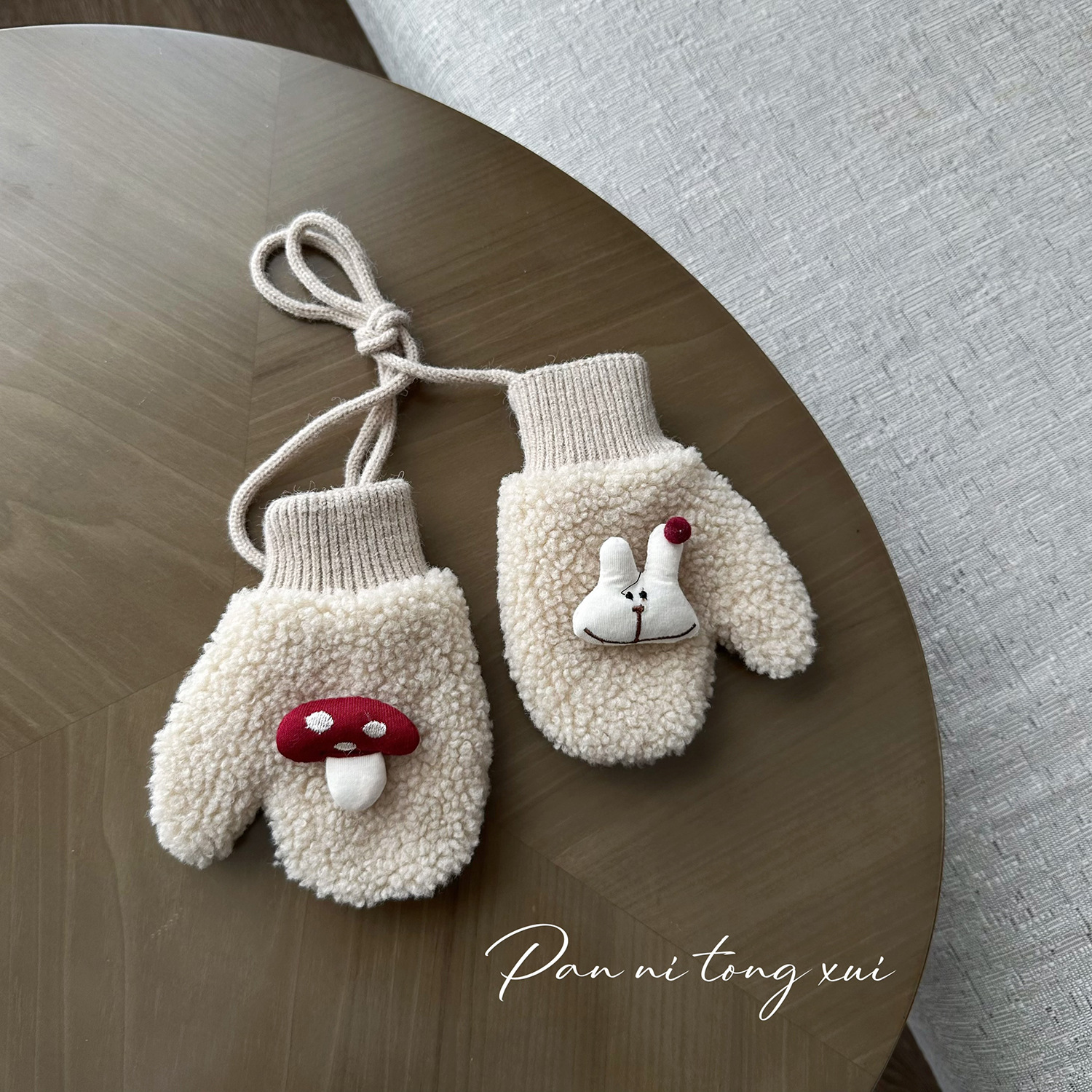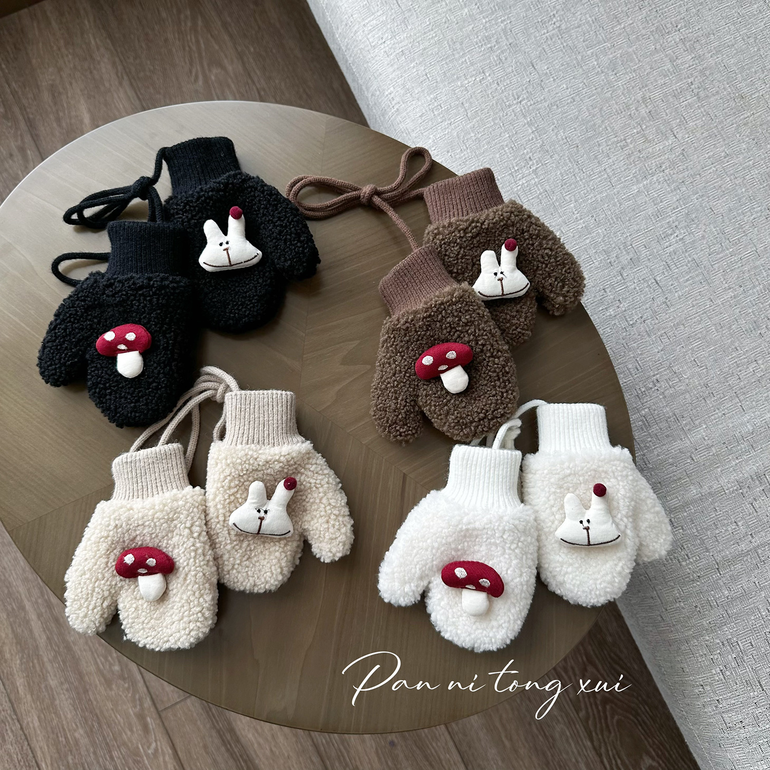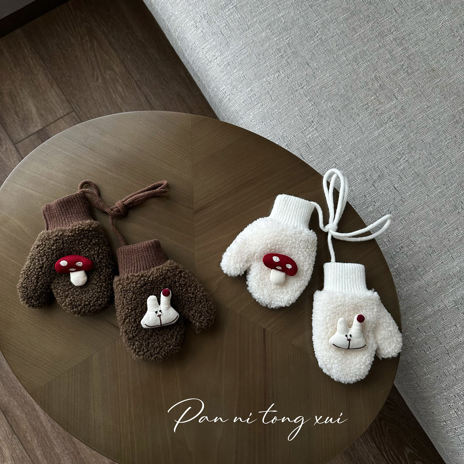 어린이 봉제 장갑 한국 스타일 귀여운 소년 소녀 두꺼운 기모 목 만화 토끼 겨울 따뜻한 장갑