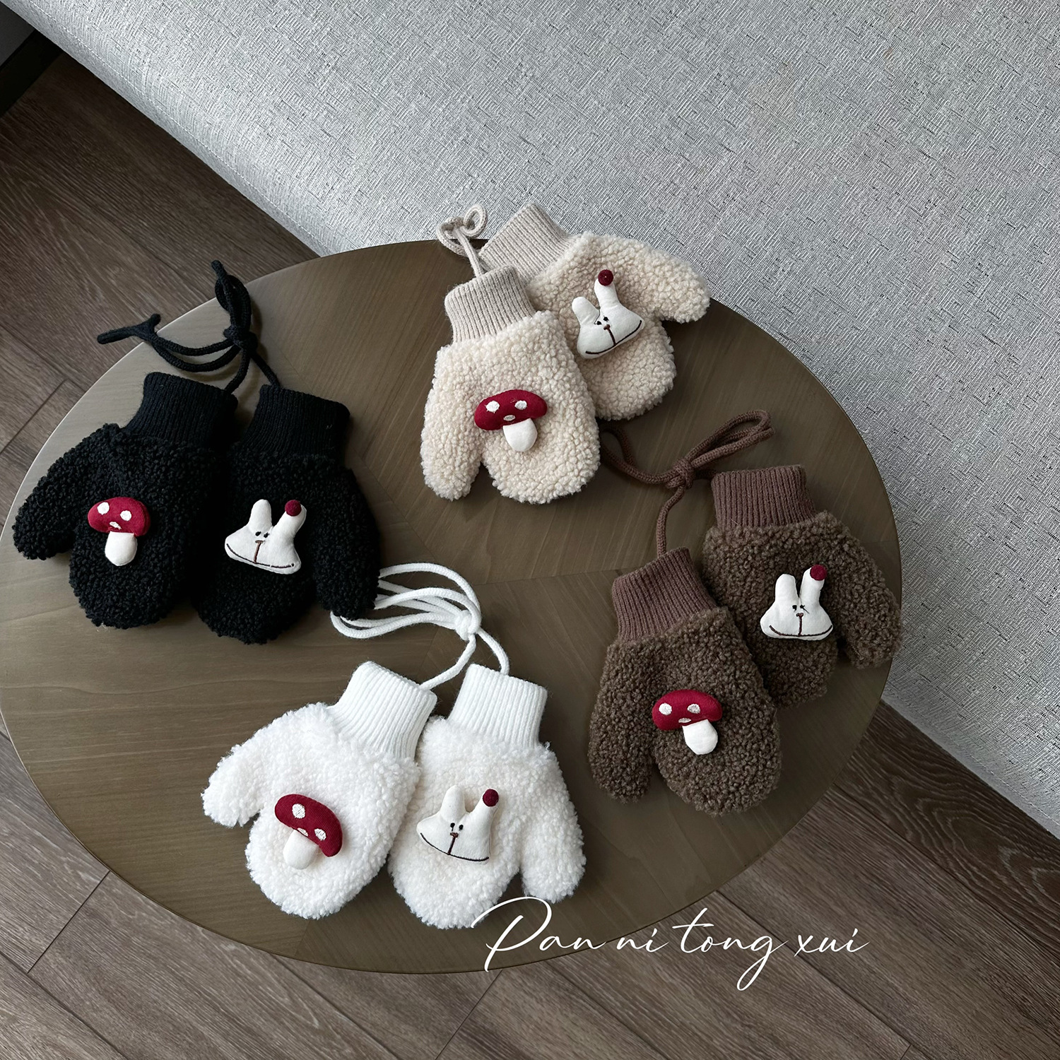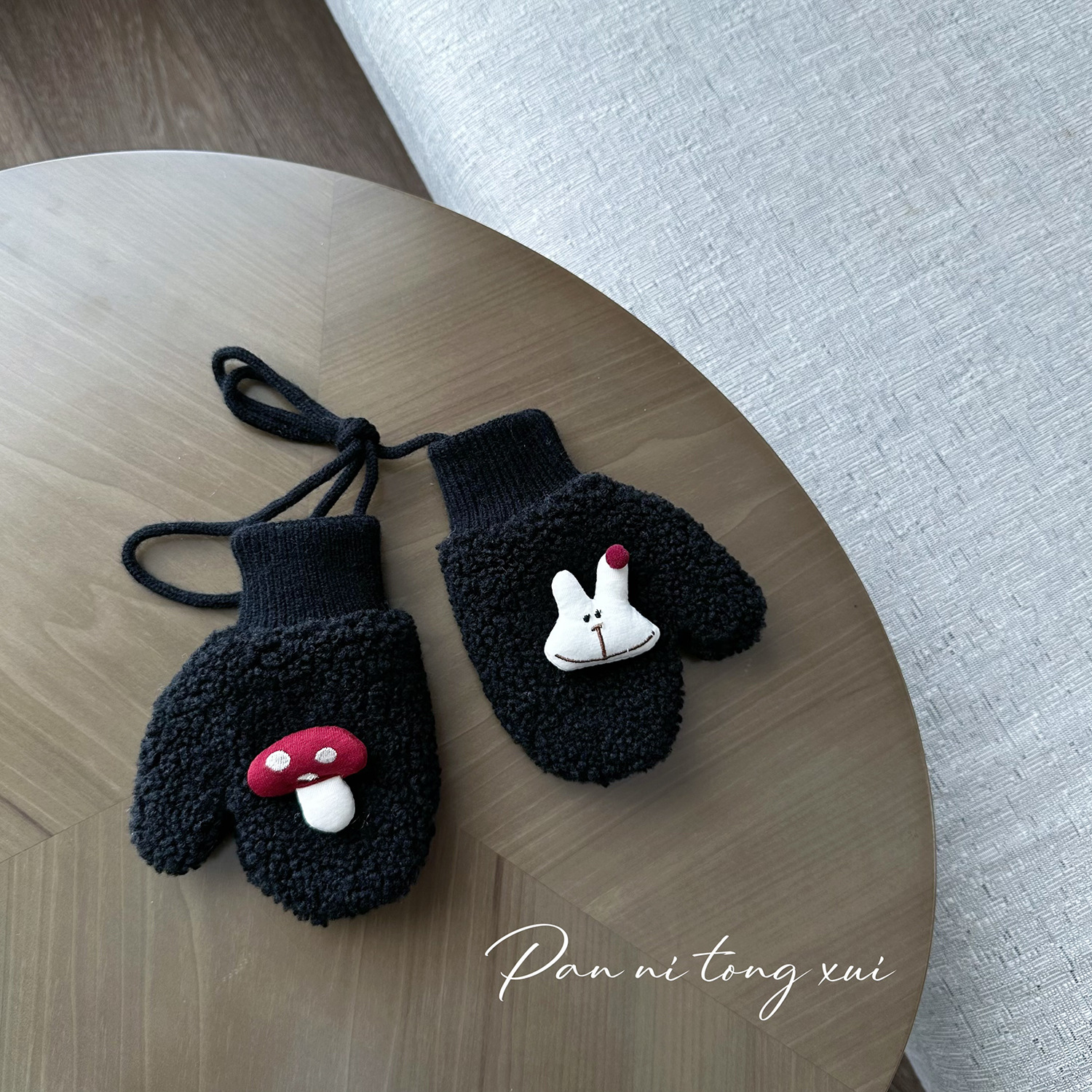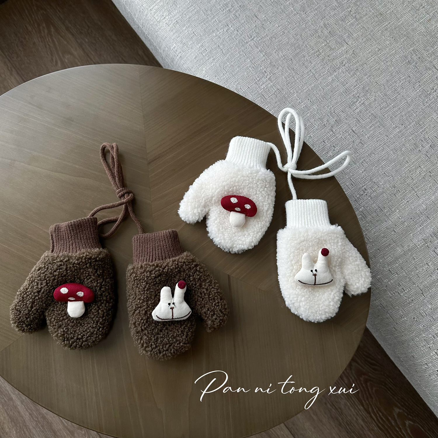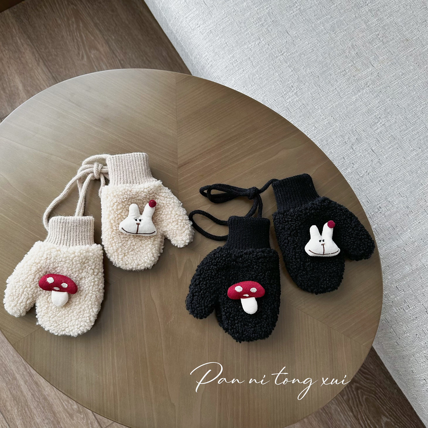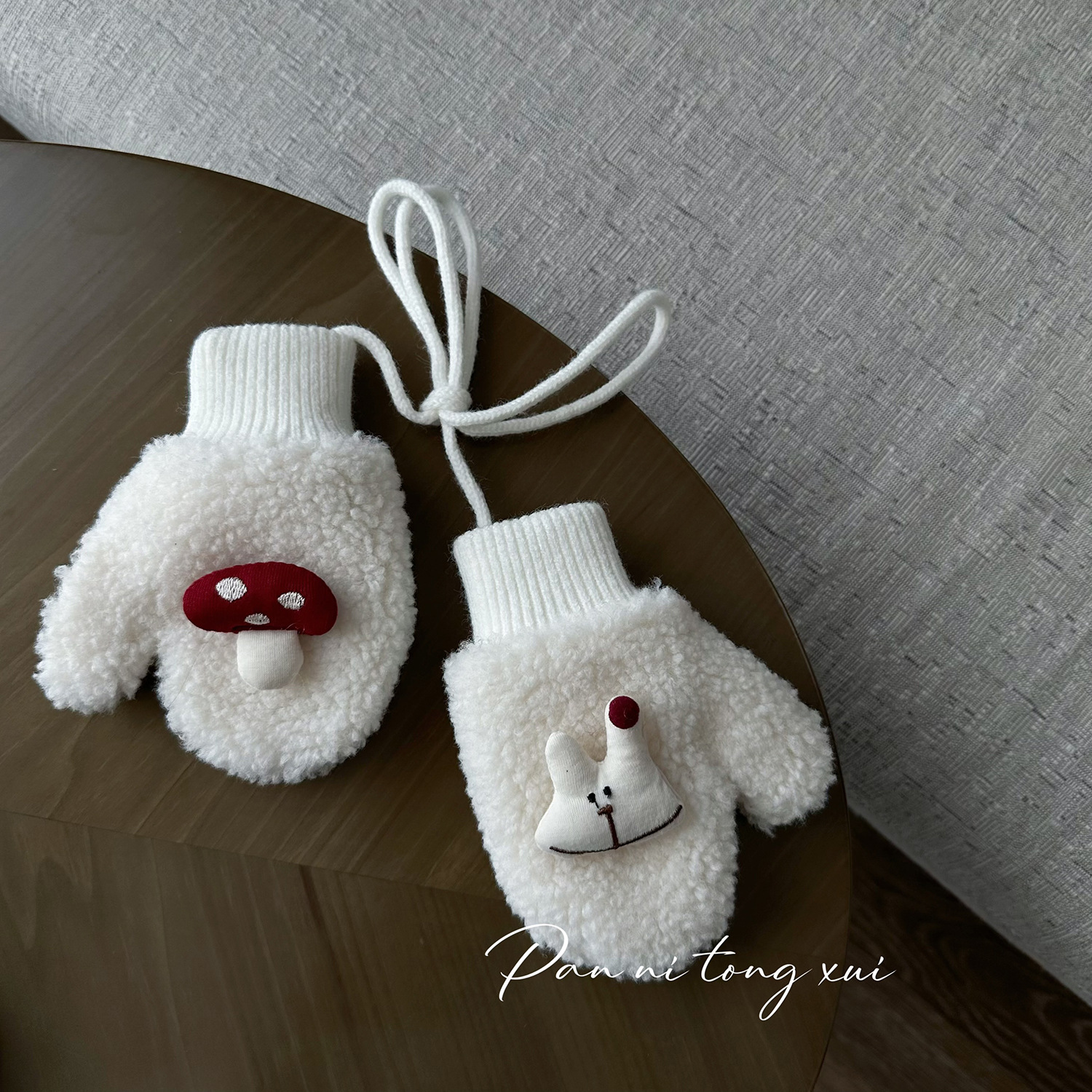 어린이 봉제 장갑 한국 스타일 귀여운 소년 소녀 두꺼운 기모 목 만화 토끼 겨울 따뜻한 장갑
