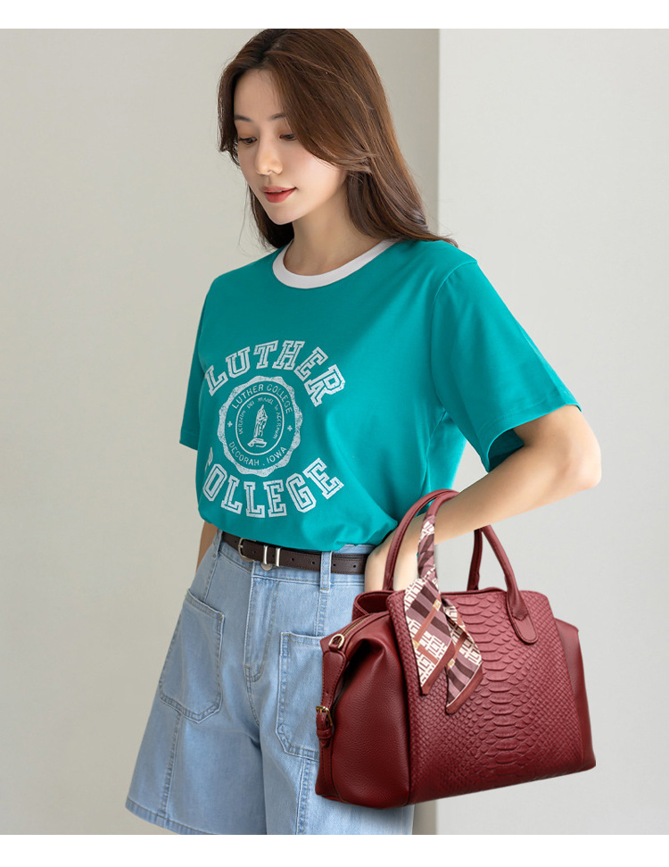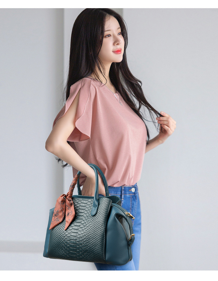 어머니의 날 선물 대용량 악어 무늬 가죽 가방 엠보싱 크로스 바디 토트 백 보스턴 백 여성 핸드백