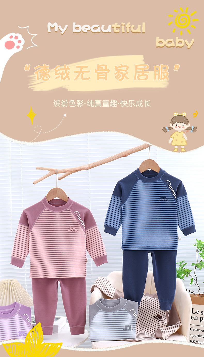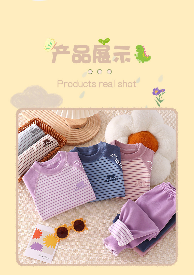 어린이용 가을/겨울 기모 내의, 남아 여아용 무봉제 베이스 레이어, 가을/겨울 잠옷, 공예 스트라이프스토어 가기