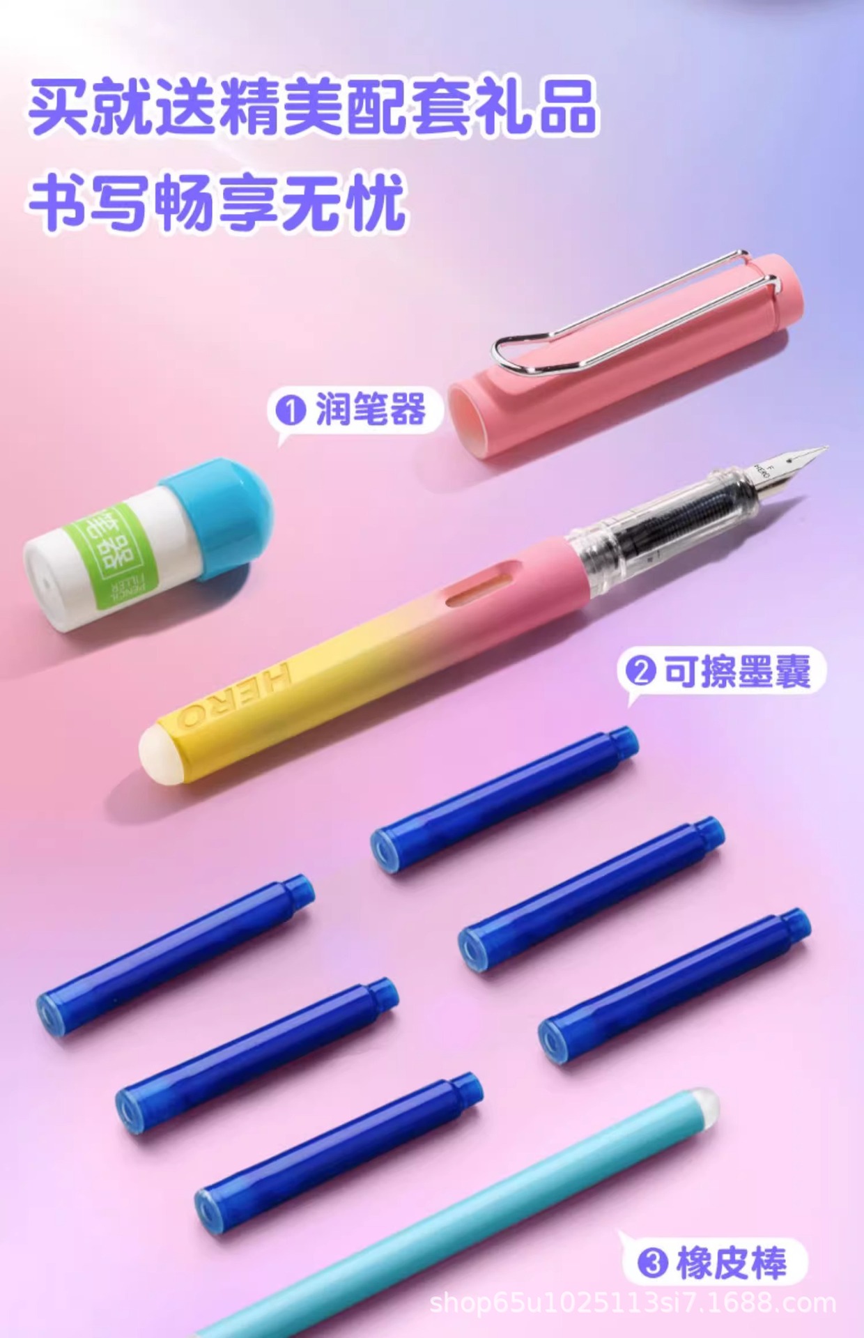 영웅펜, 3학년 초등학생을 위한 특수 자세 교정펜, 교체 가능한 잉크백, 열 지울 수 있는 펜 도매스토어 가기