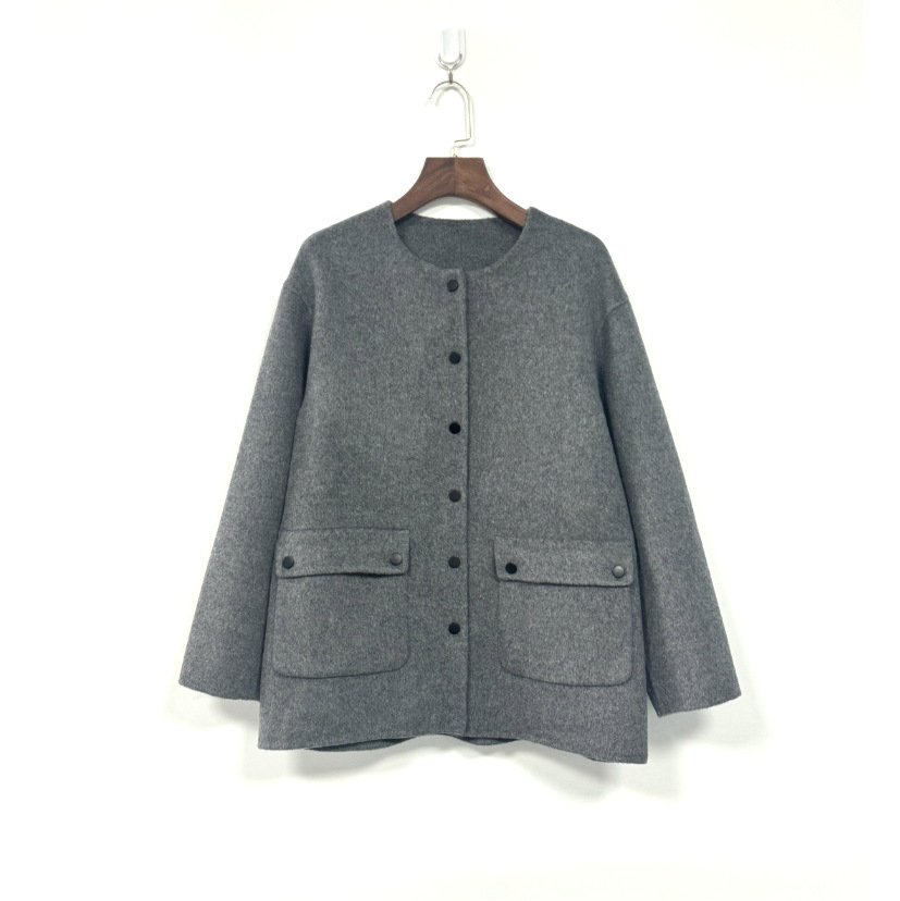 IC2024 가을과 겨울 새로운 간단한 편안한 짧은 양면 양모 코트 탑