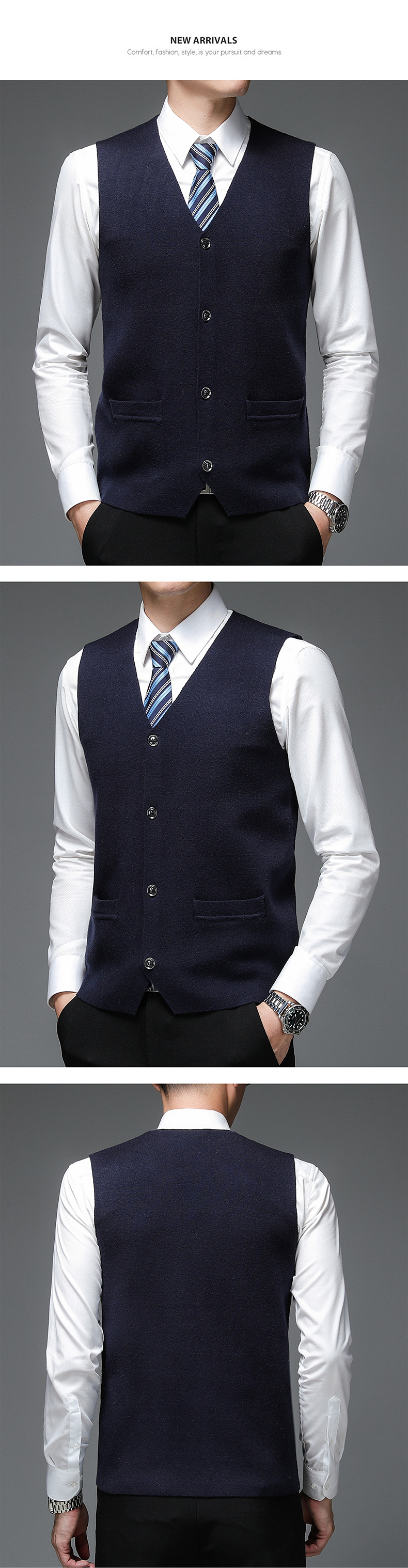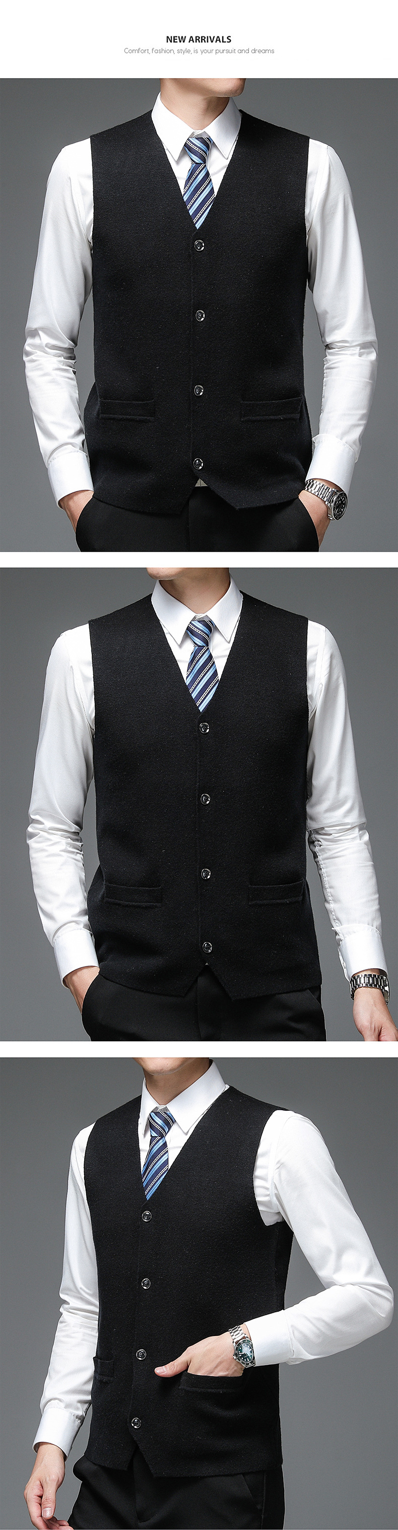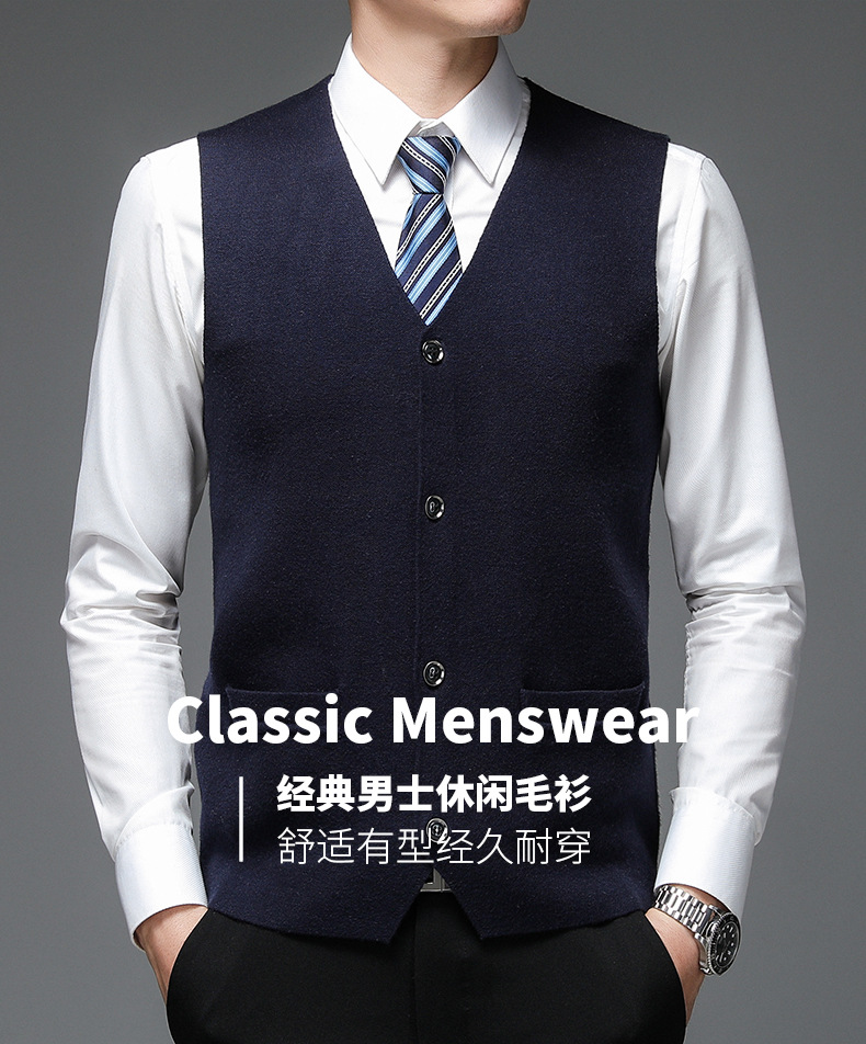 가을과 겨울 2024 새로운 남성 니트 조끼 골든 벨벳 V-넥 싱글 브레스트 두꺼운 솔리드 컬러 스웨터 조끼 남성용스토어 가기