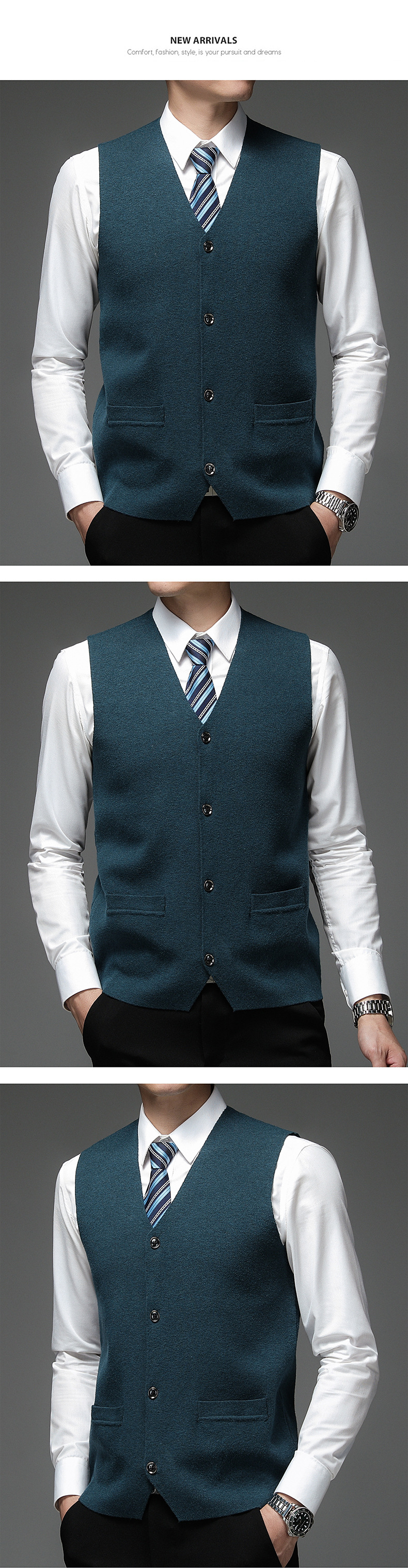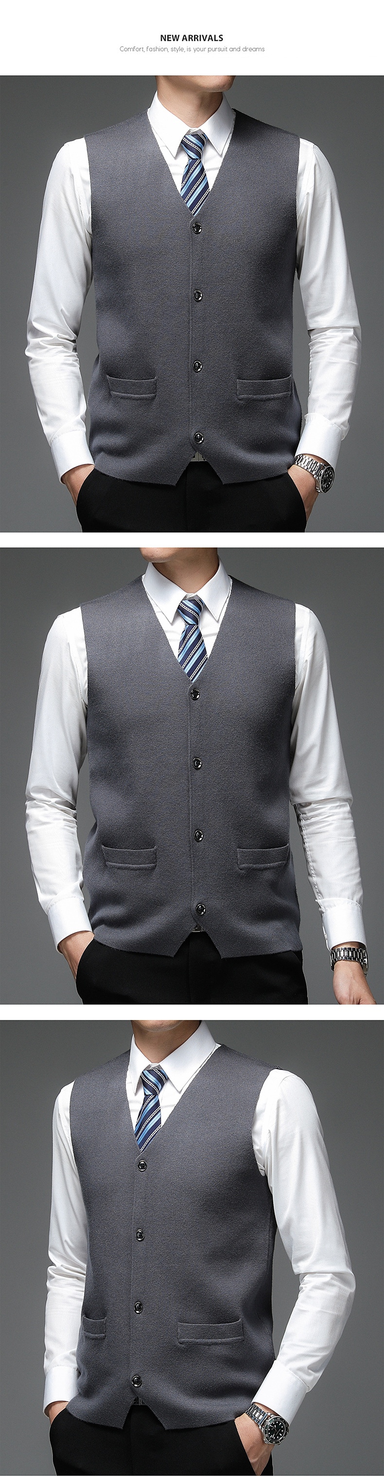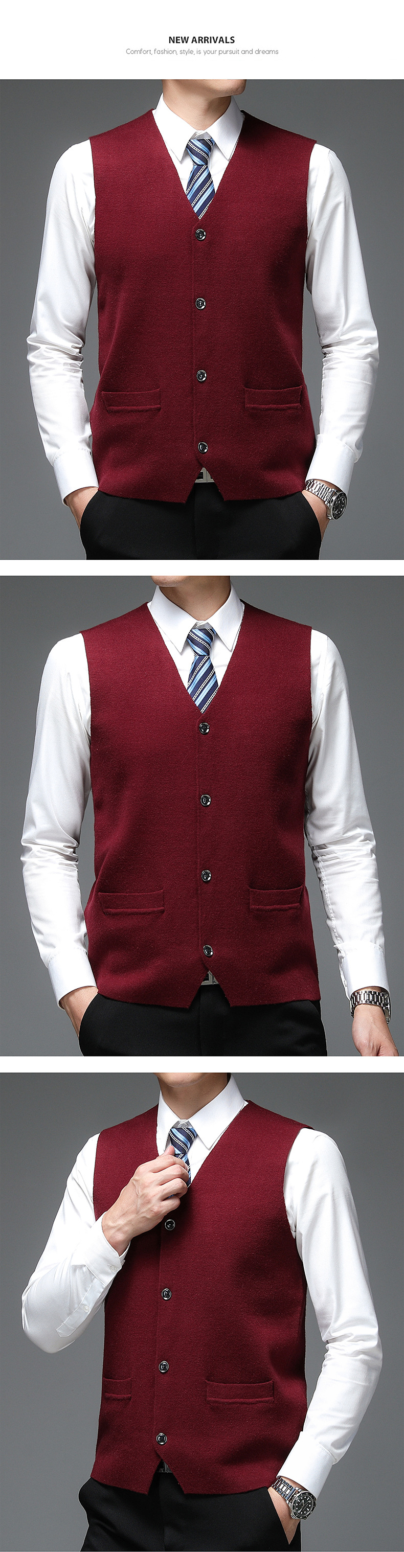 가을과 겨울 2024 새로운 남성 니트 조끼 골든 벨벳 V-넥 싱글 브레스트 두꺼운 솔리드 컬러 스웨터 조끼 남성용스토어 가기