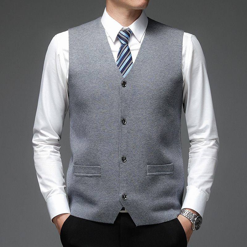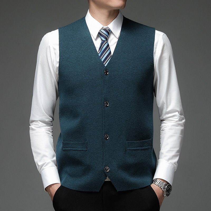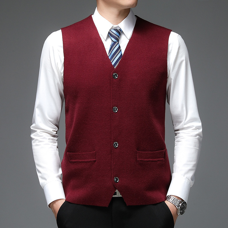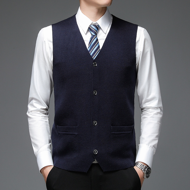 가을과 겨울 2024 새로운 남성 니트 조끼 골든 벨벳 V-넥 싱글 브레스트 두꺼운 솔리드 컬러 스웨터 조끼 남성용