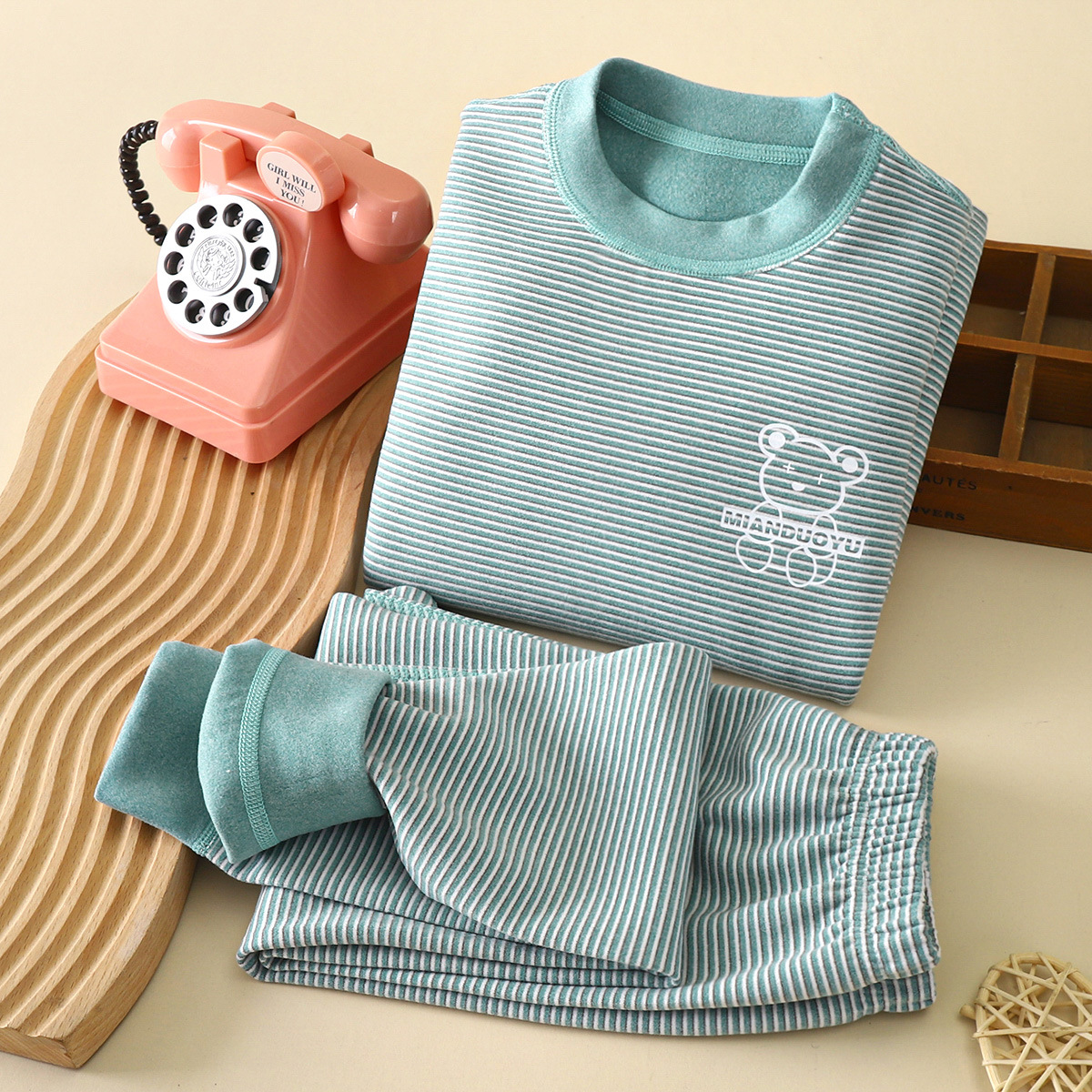 아동복, 큰 아동용 보온 속옷 세트, 아동 가정복 투피스 세트, 남아 및 여아 가을 옷과 긴 바지