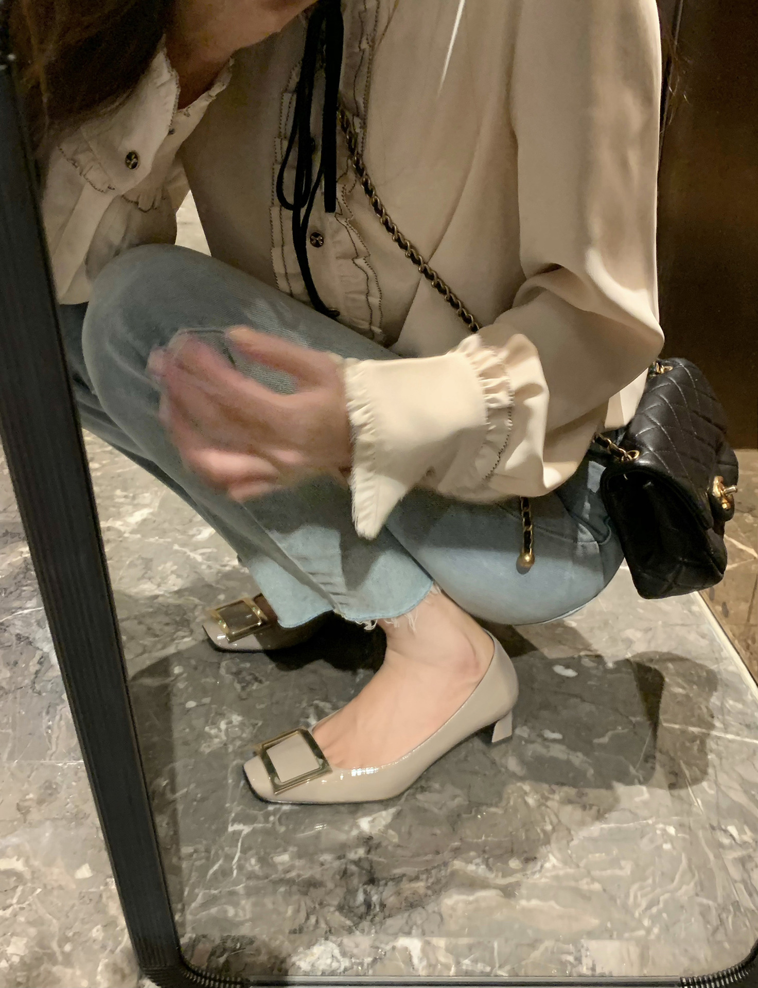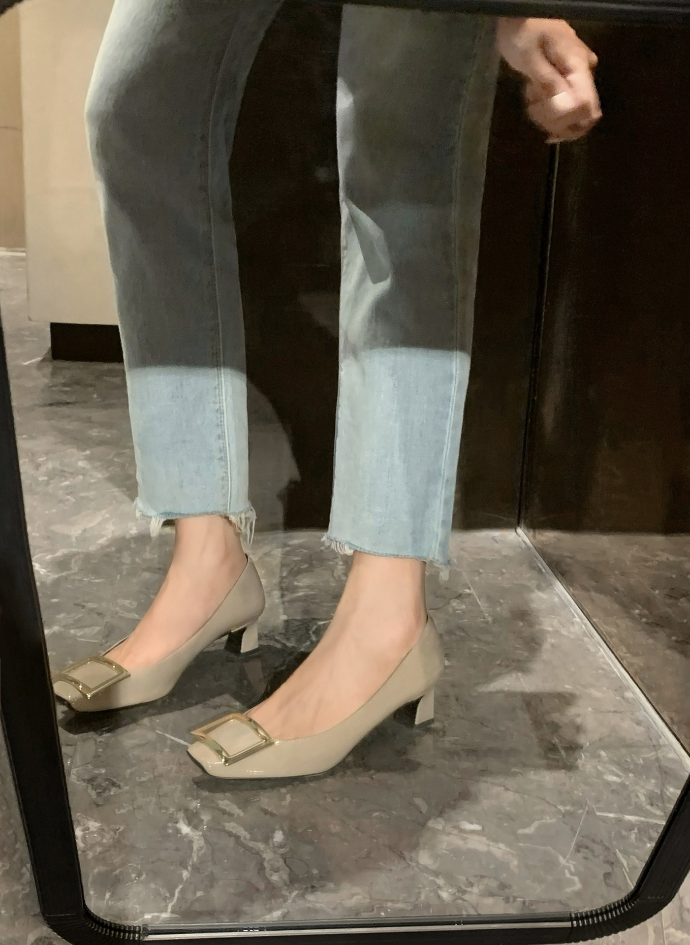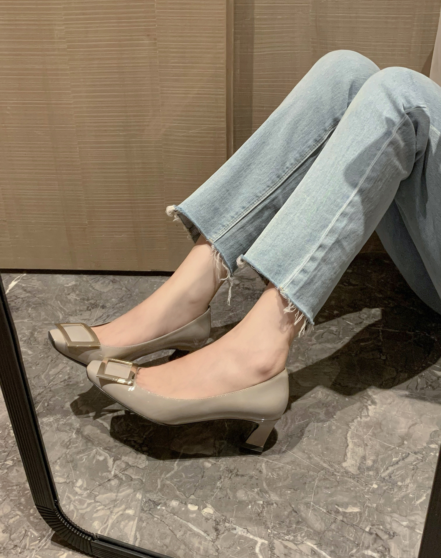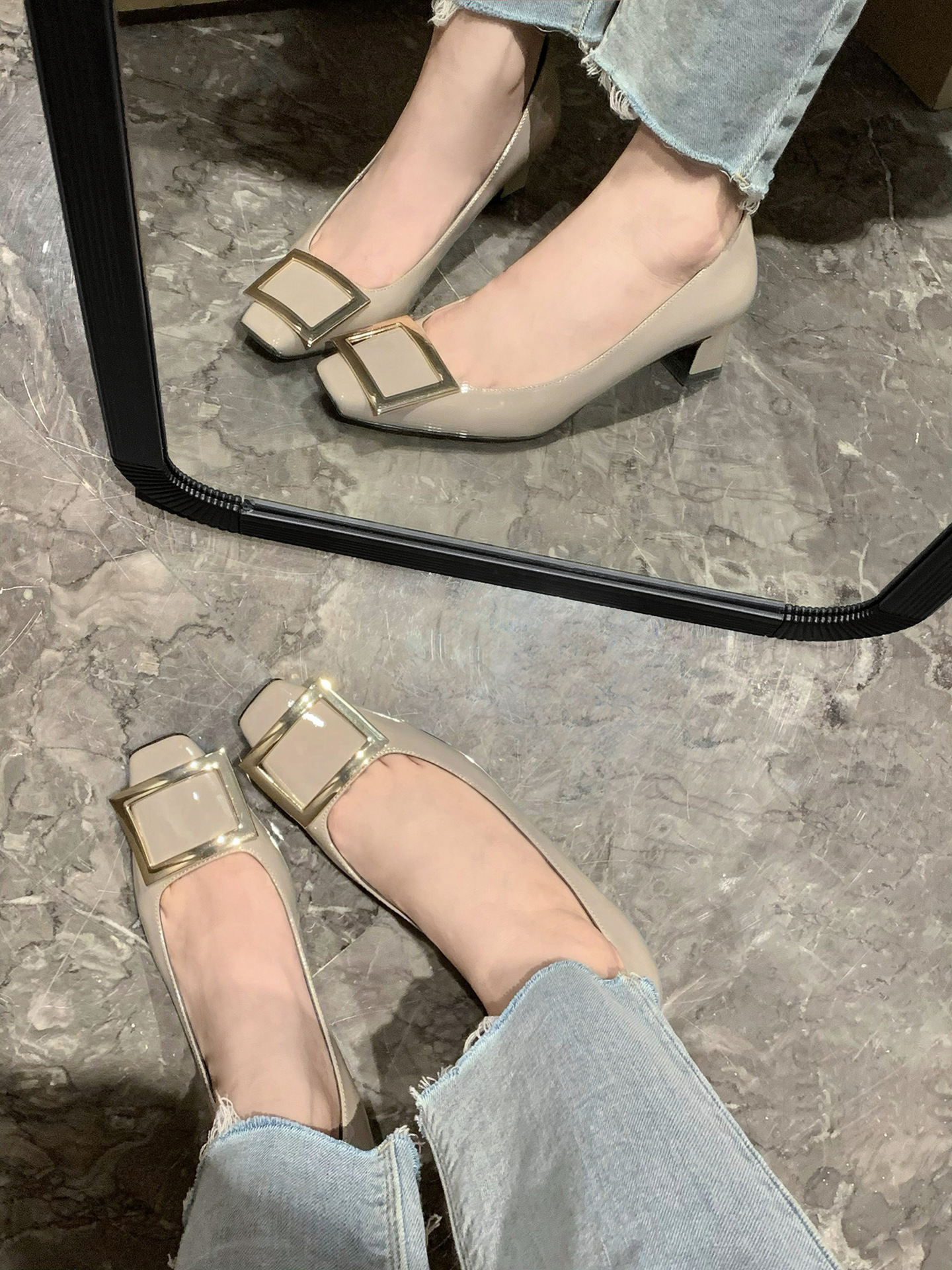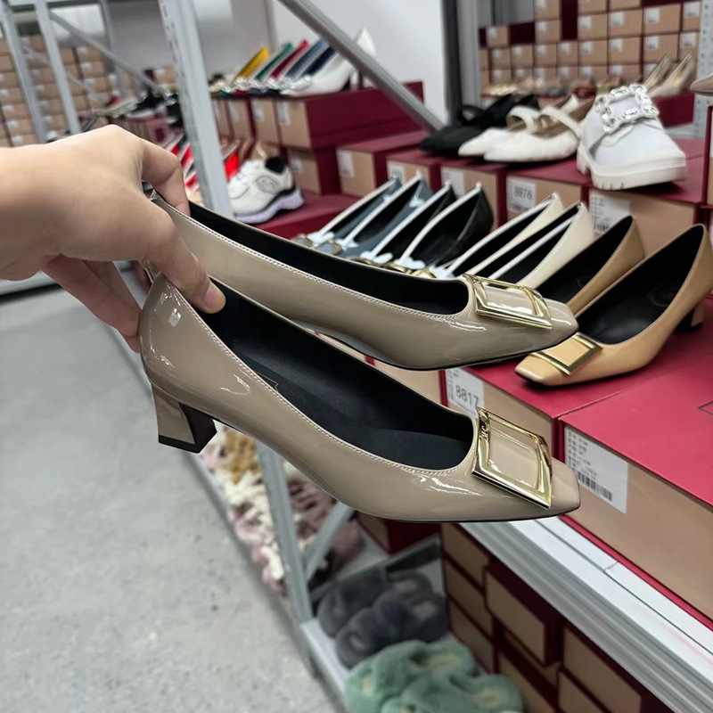 2024년 가을 RV 여성용 스퀘어 버클 슈즈, 여성용 스퀘어 토 두꺼운 굽 하이힐, 얕은 굽 웨딩 슈즈, 패션 슈즈, 여성용 패션스토어 가기