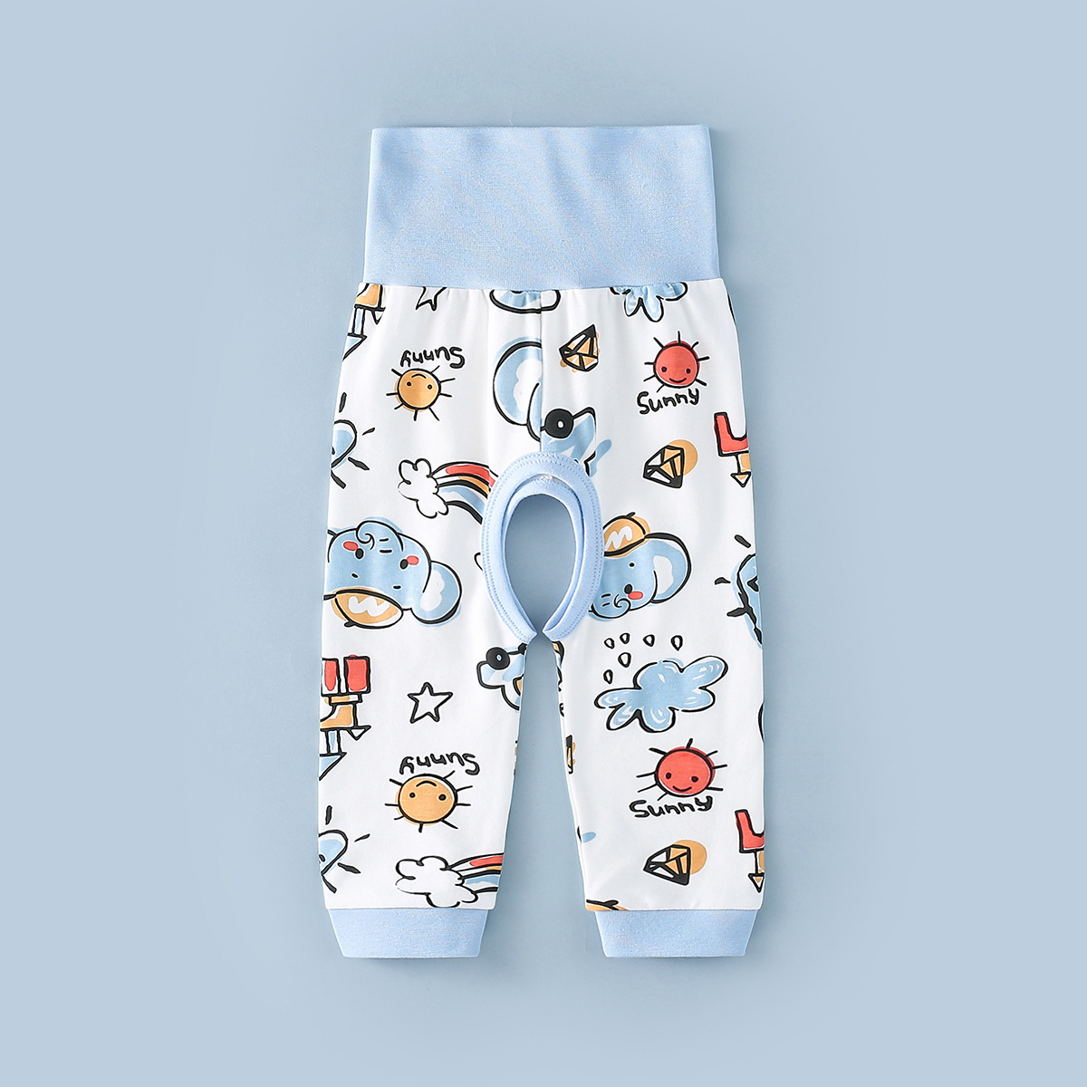 아기의 높은 허리 오픈 크로트 바지 봄과 가을면 어린이 오픈 바지 따뜻한 배 보호 아기의 긴 존스 배꼽 보호 바지