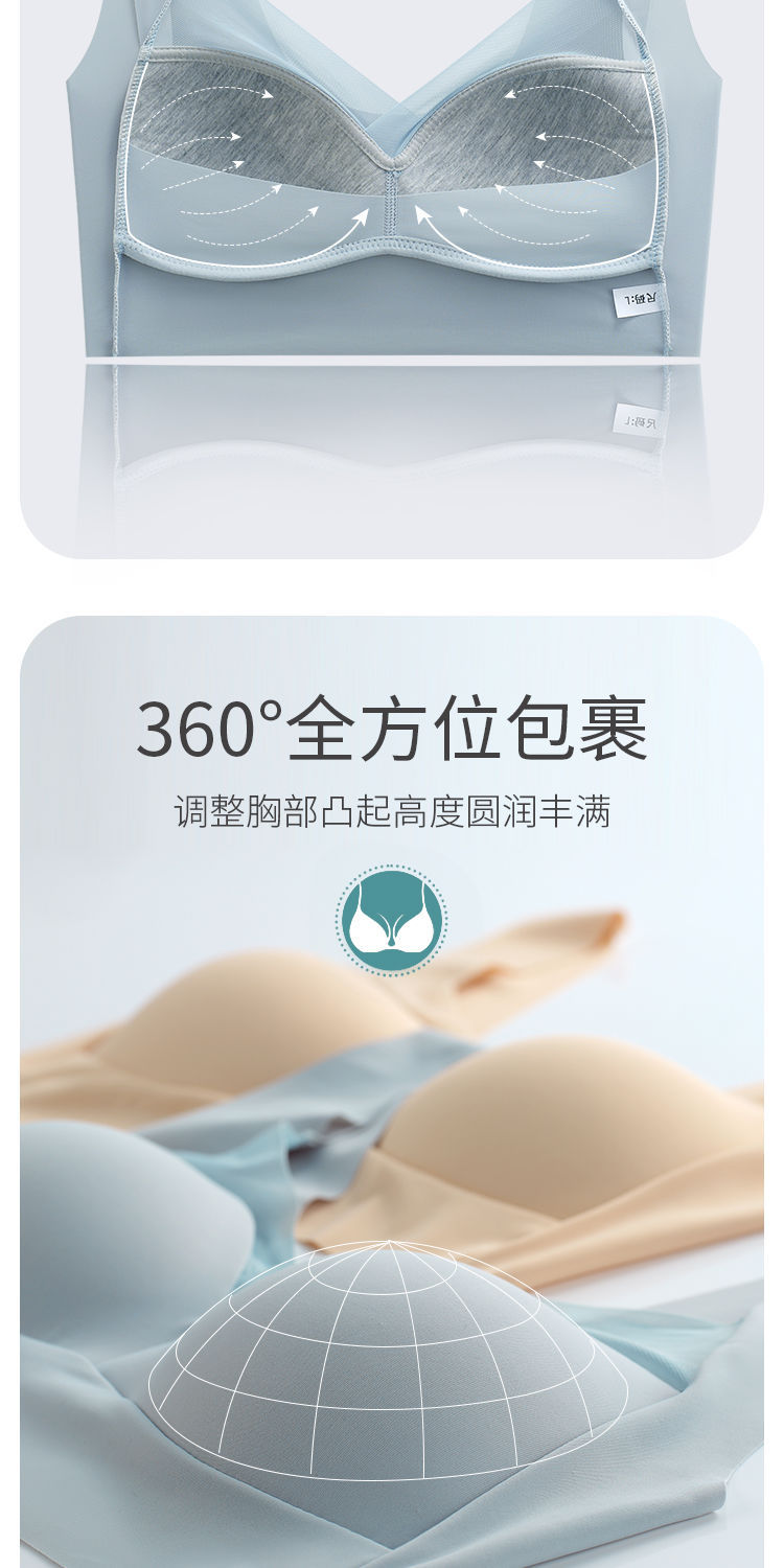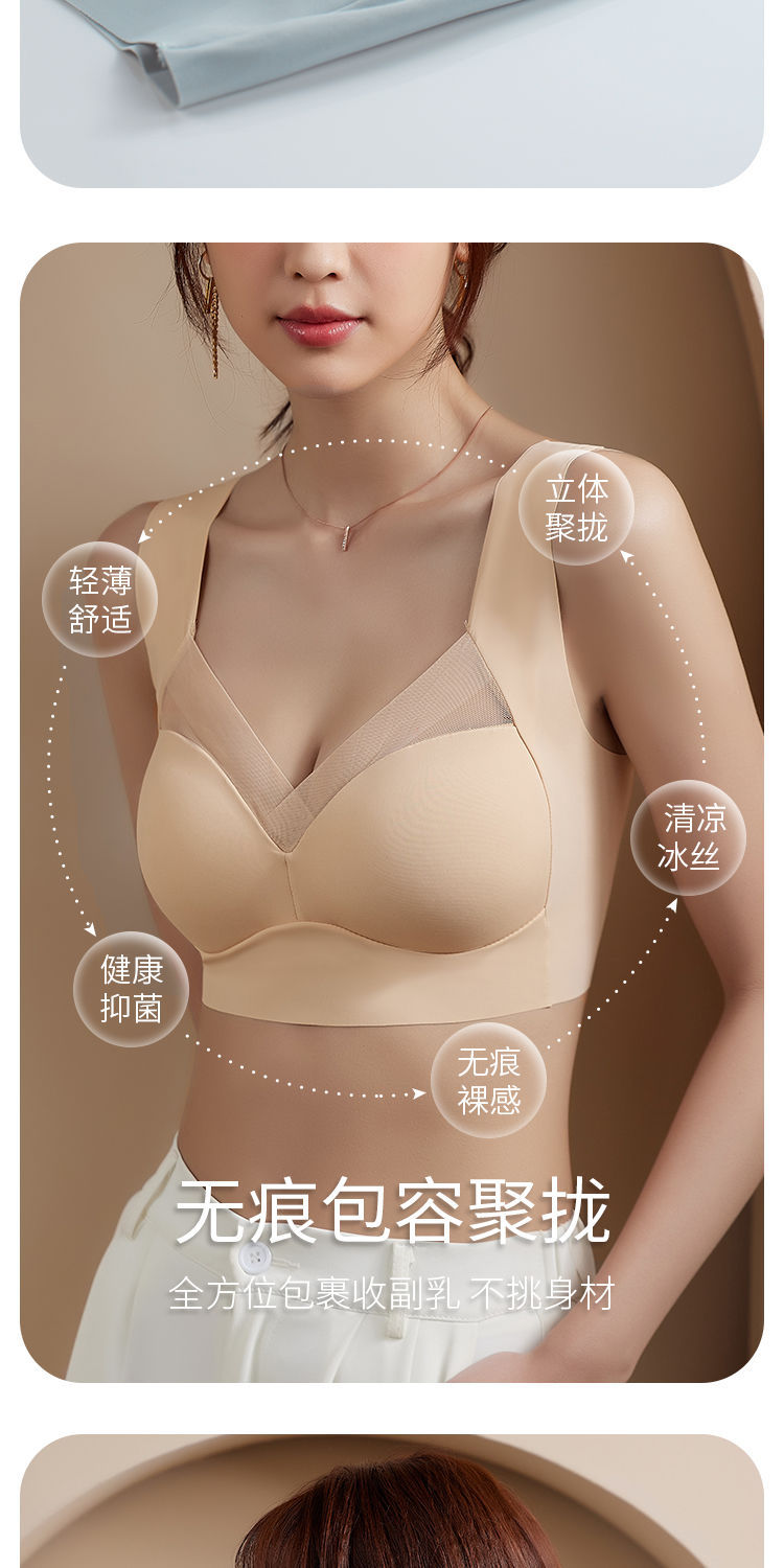 아이스 실크 여성용 속옷 스틸 반지가없는 여성용 브래지어 속옷 원피스 고정 집착 방지 처짐 Paramilis Upper Bracket