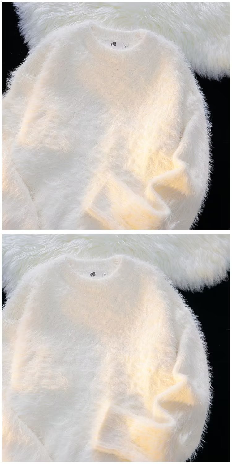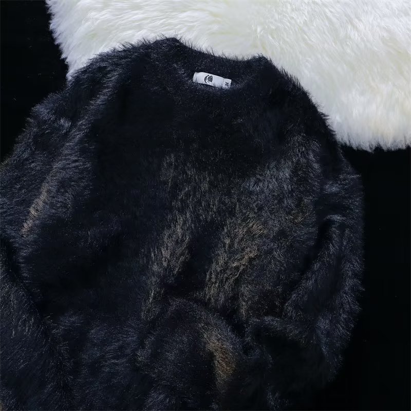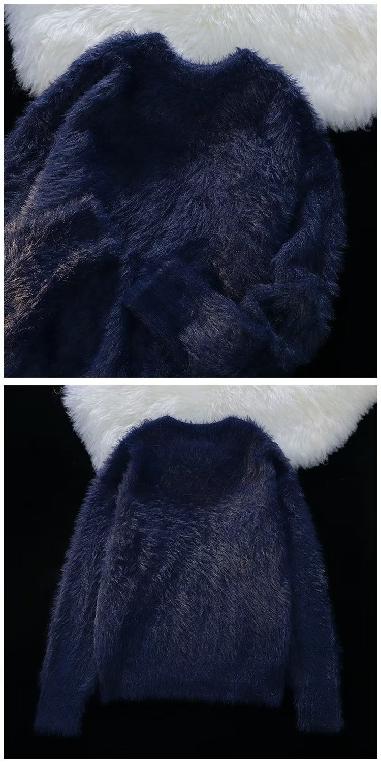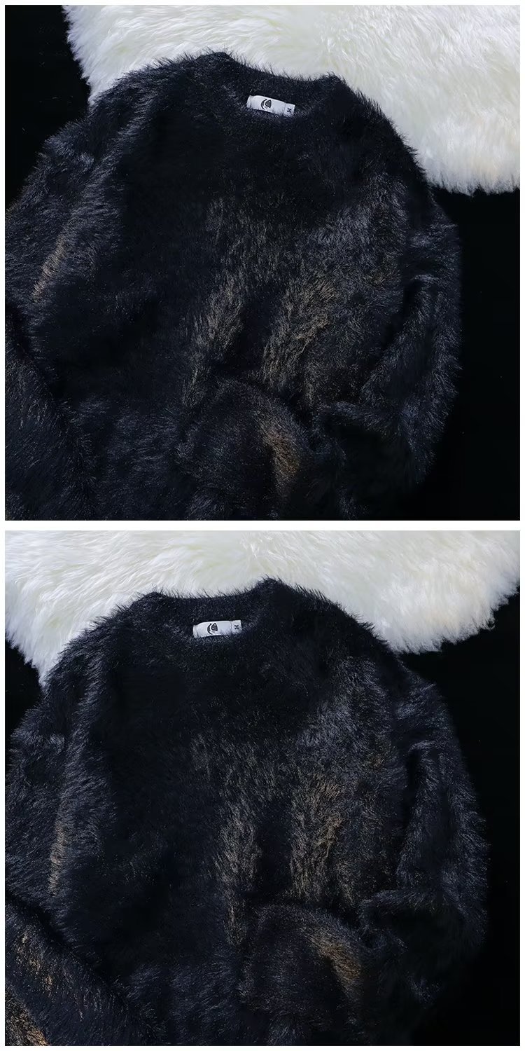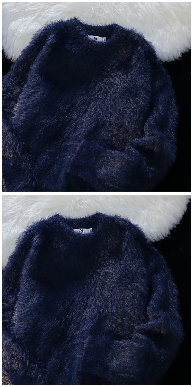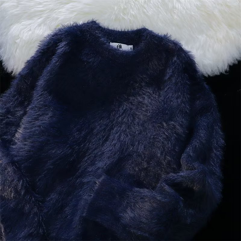 가을과 겨울 솔리드 컬러 따뜻한 내부 니트 스웨터 남성용 일본 스타일 트렌디 브랜드 레트로 루즈 소프트 왁스 모피 크루 넥 스웨터