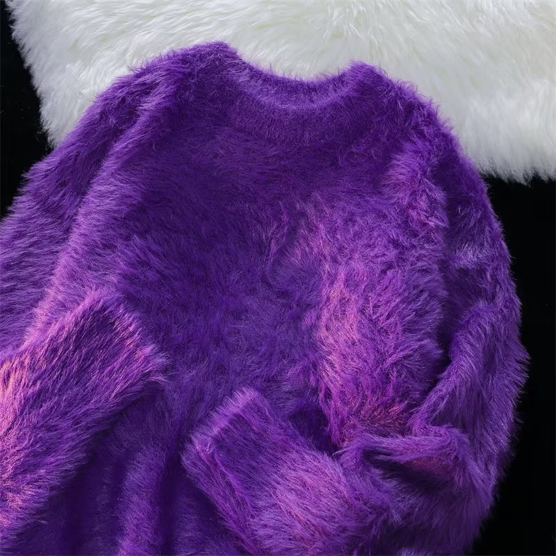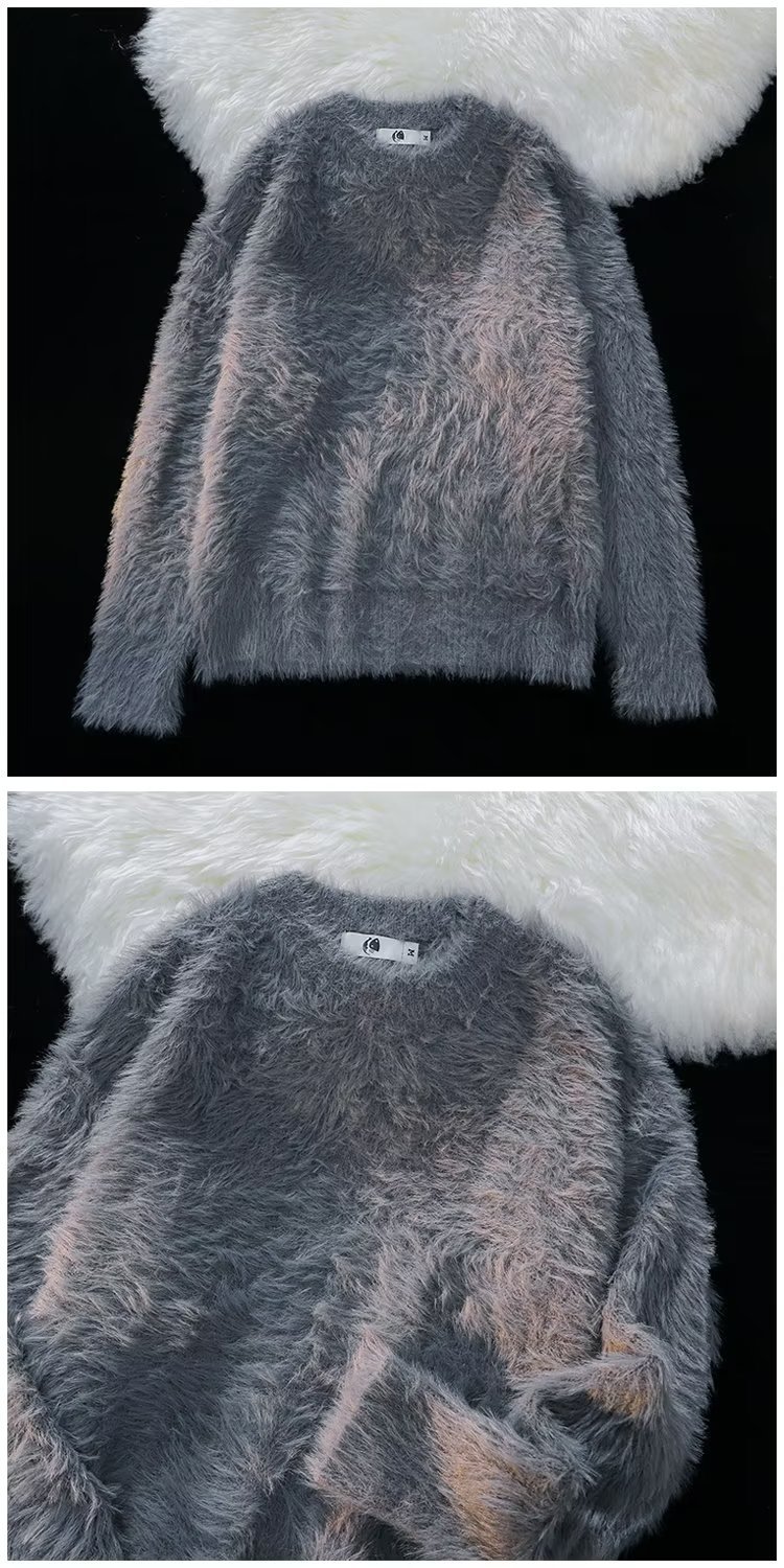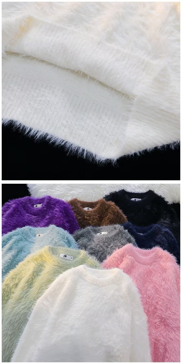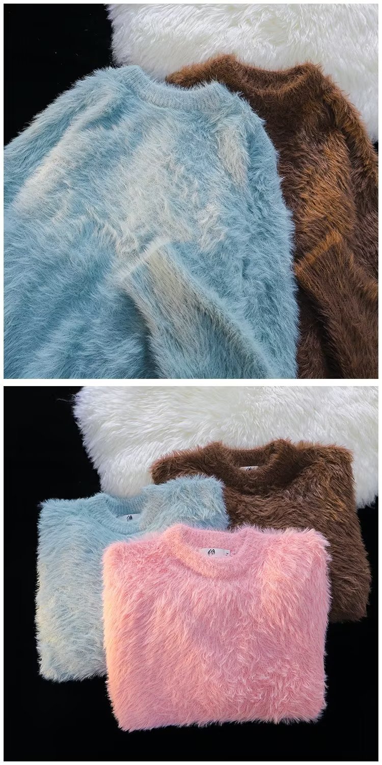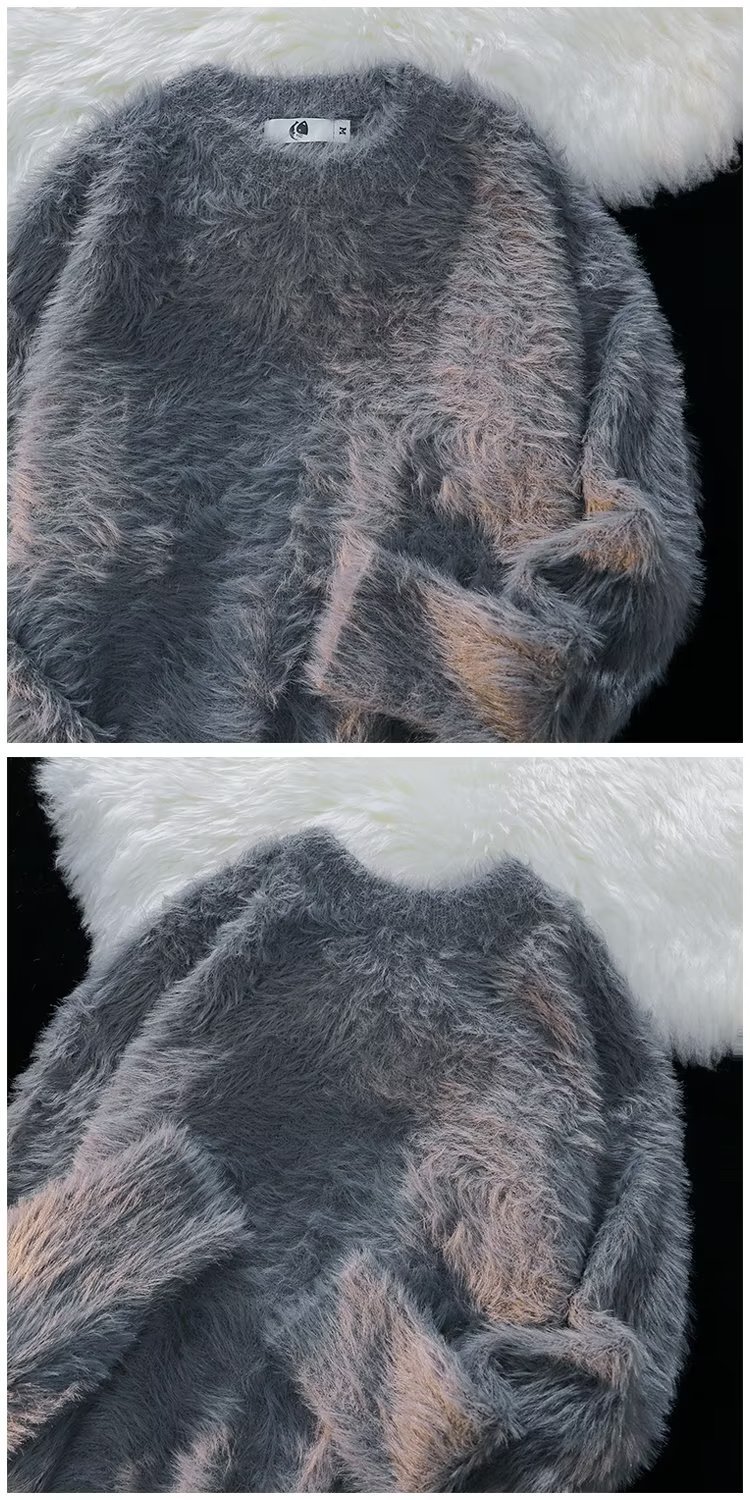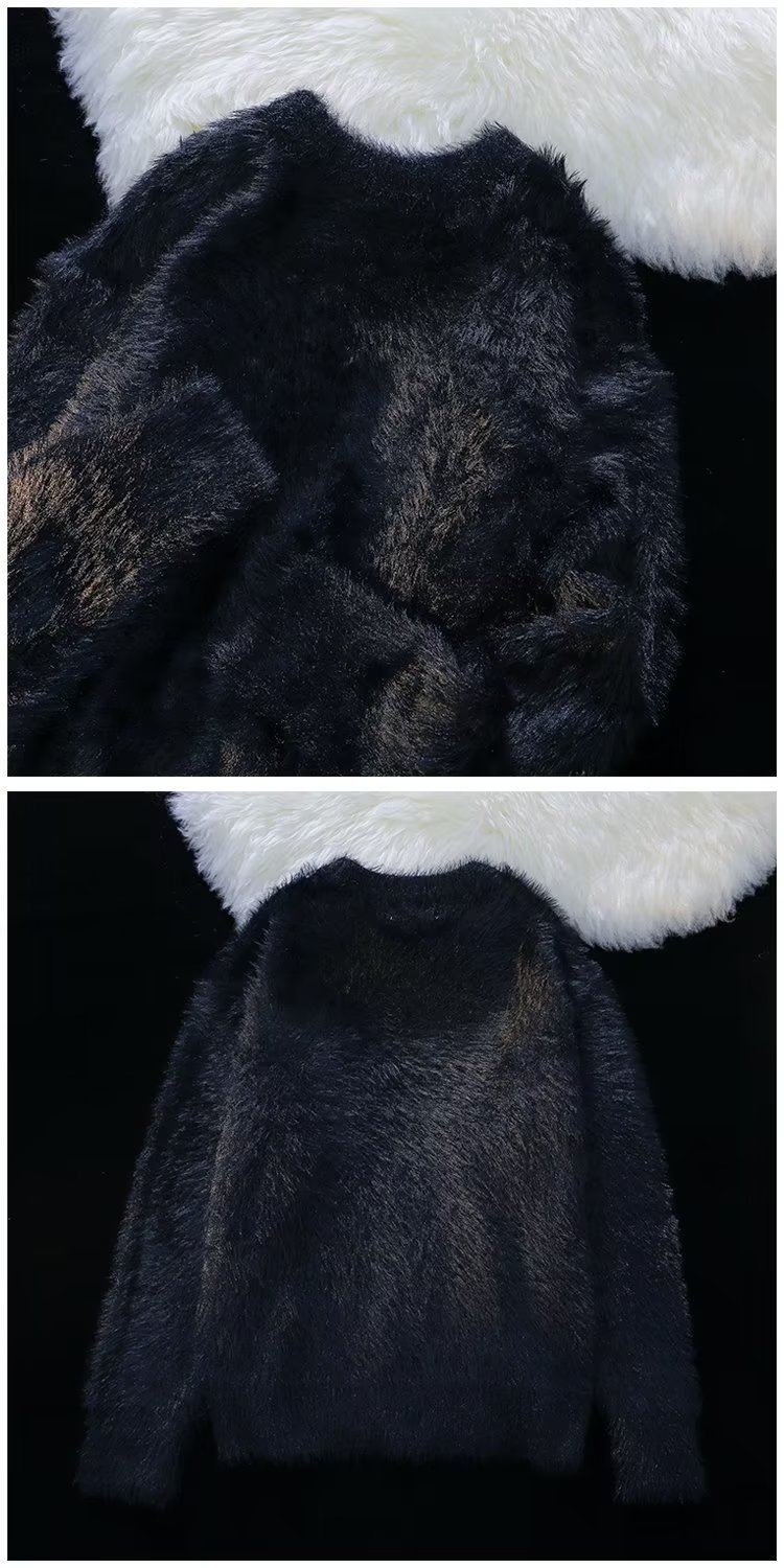 가을과 겨울 솔리드 컬러 따뜻한 내부 니트 스웨터 남성용 일본 스타일 트렌디 브랜드 레트로 루즈 소프트 왁스 모피 크루 넥 스웨터