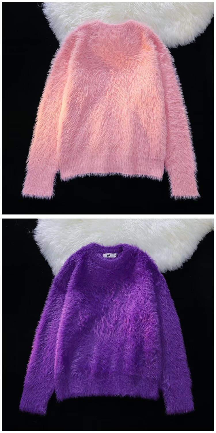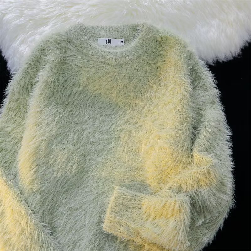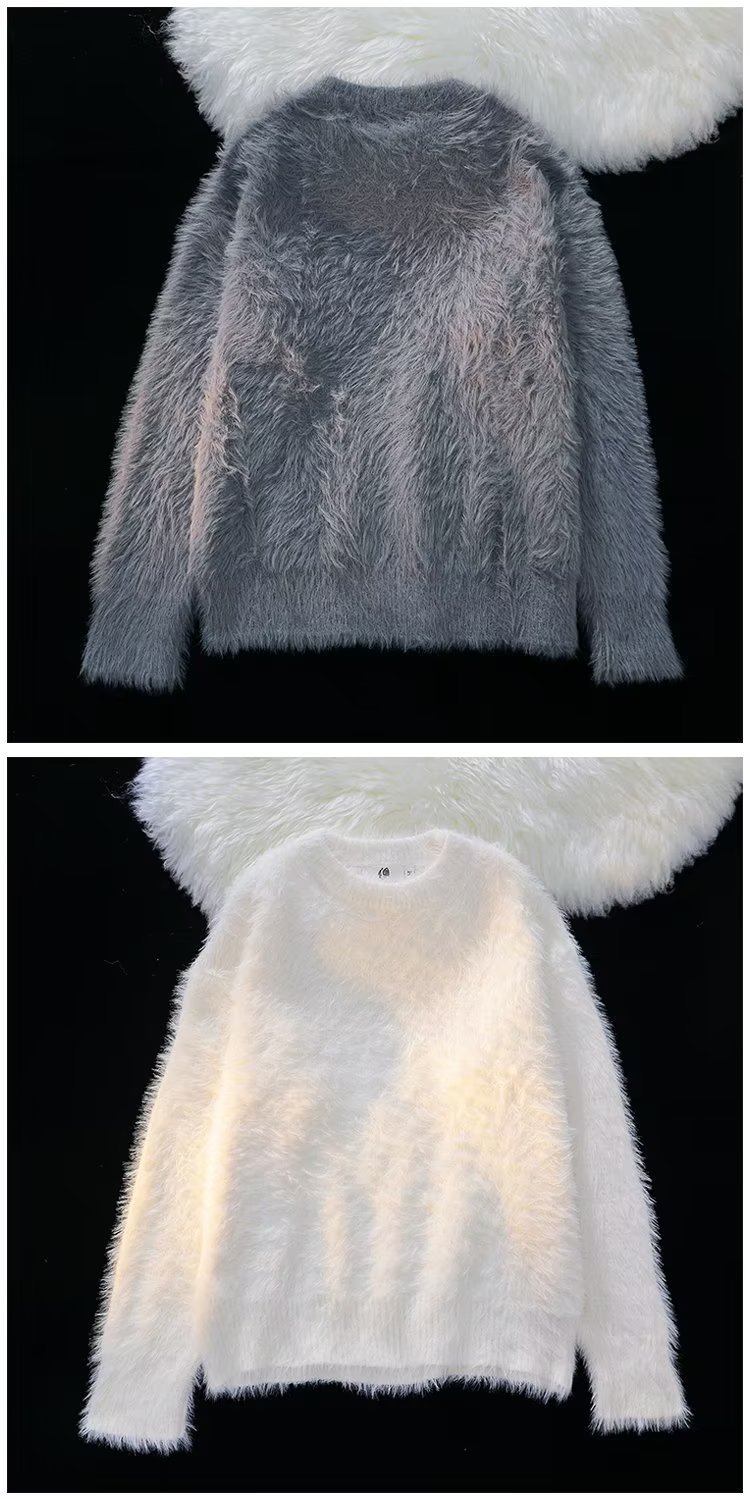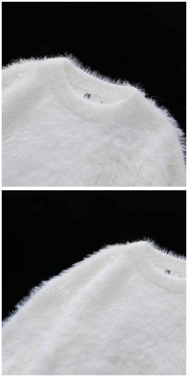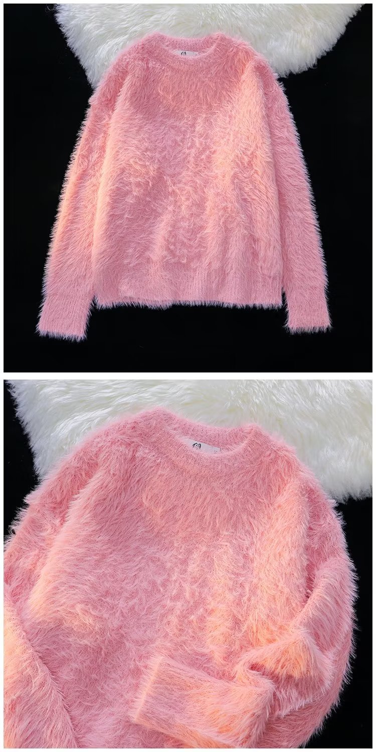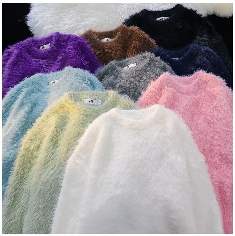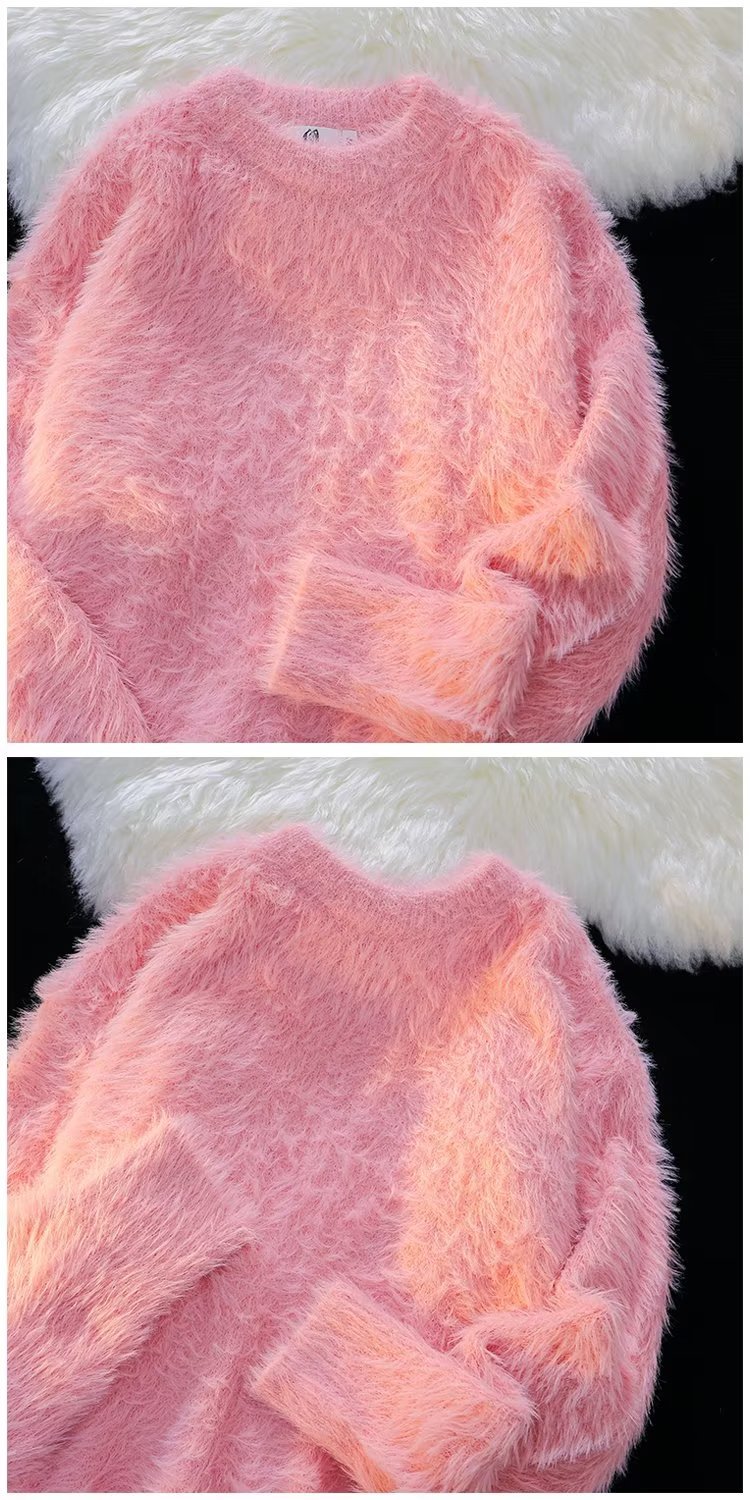 가을과 겨울 솔리드 컬러 따뜻한 내부 니트 스웨터 남성용 일본 스타일 트렌디 브랜드 레트로 루즈 소프트 왁스 모피 크루 넥 스웨터