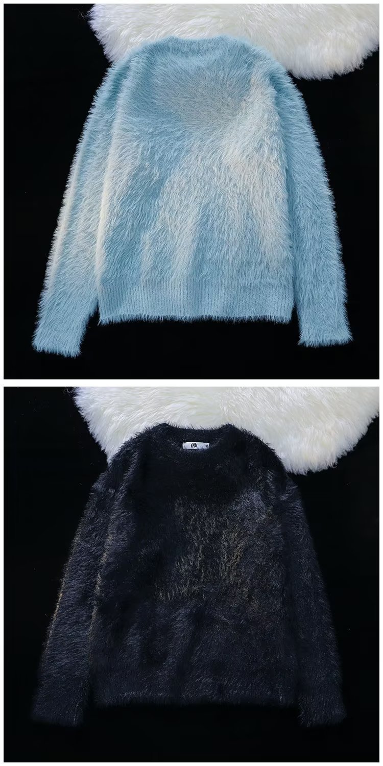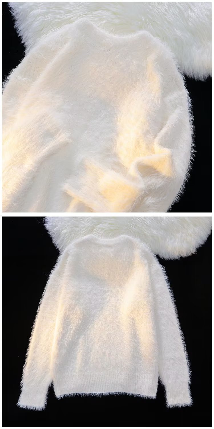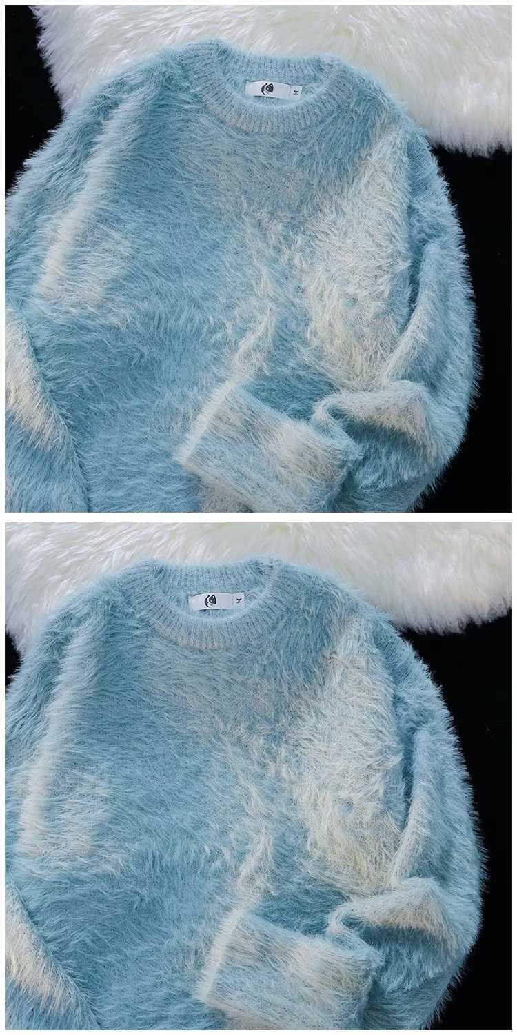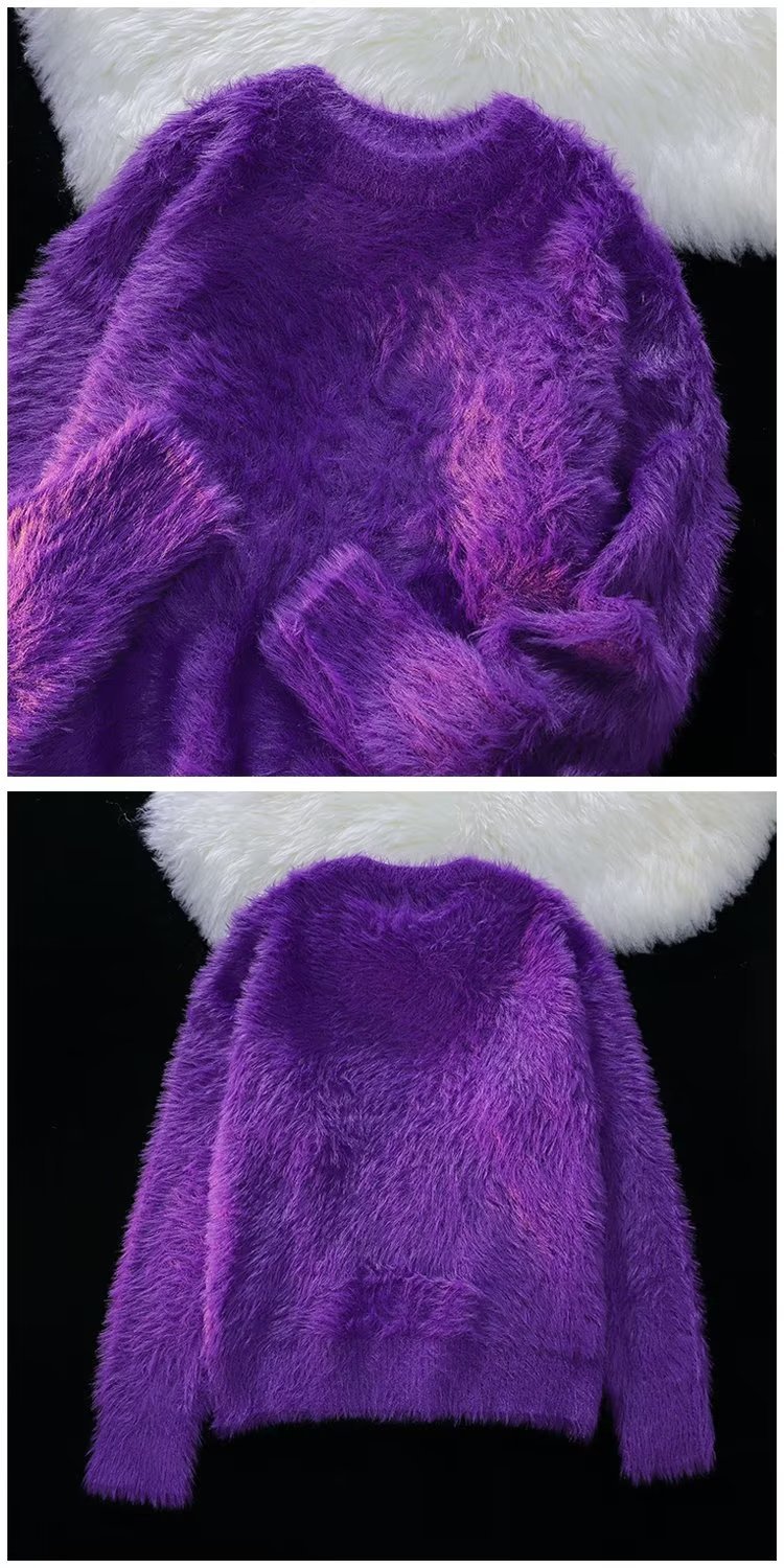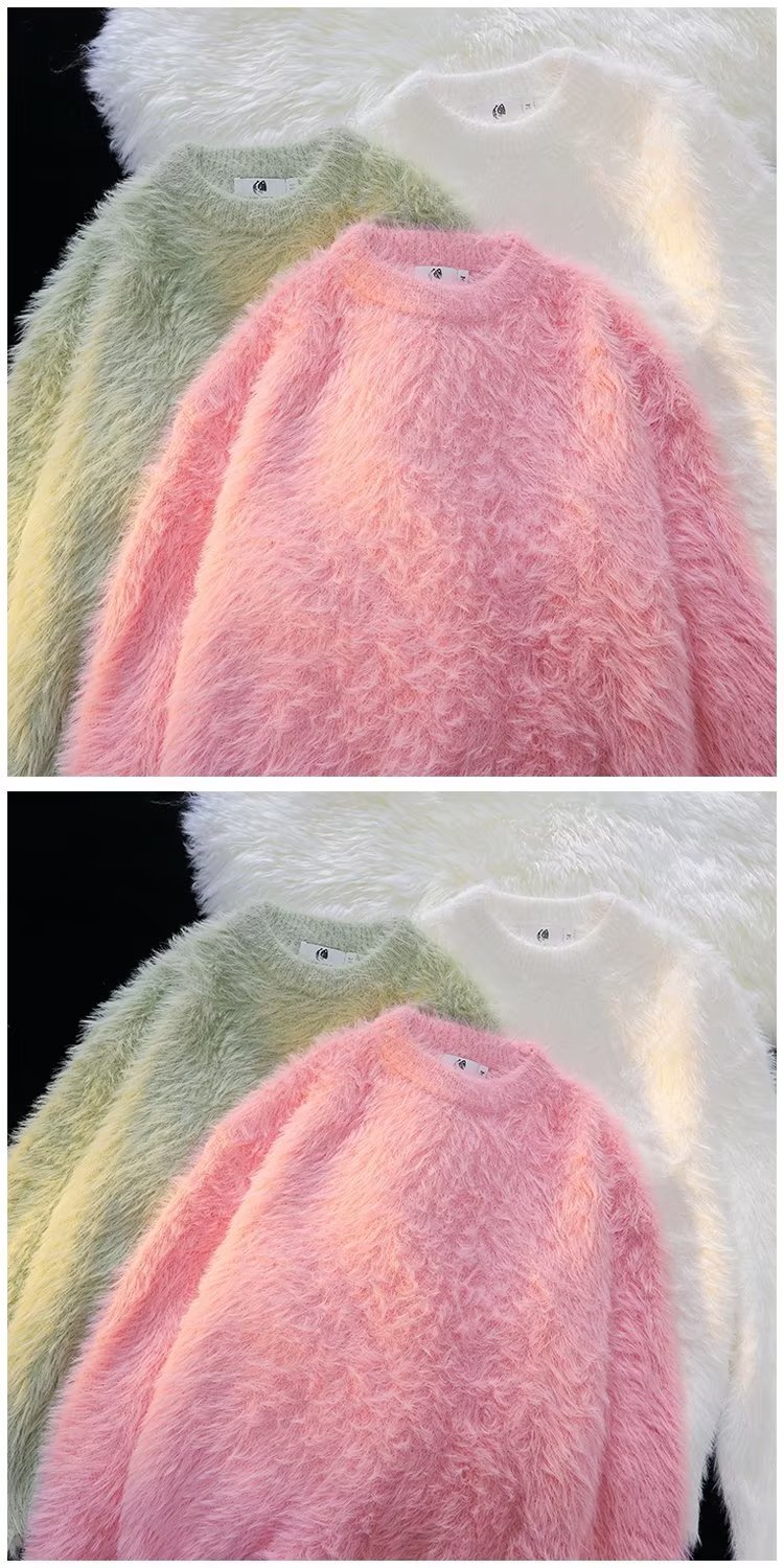 가을과 겨울 솔리드 컬러 따뜻한 내부 니트 스웨터 남성용 일본 스타일 트렌디 브랜드 레트로 루즈 소프트 왁스 모피 크루 넥 스웨터