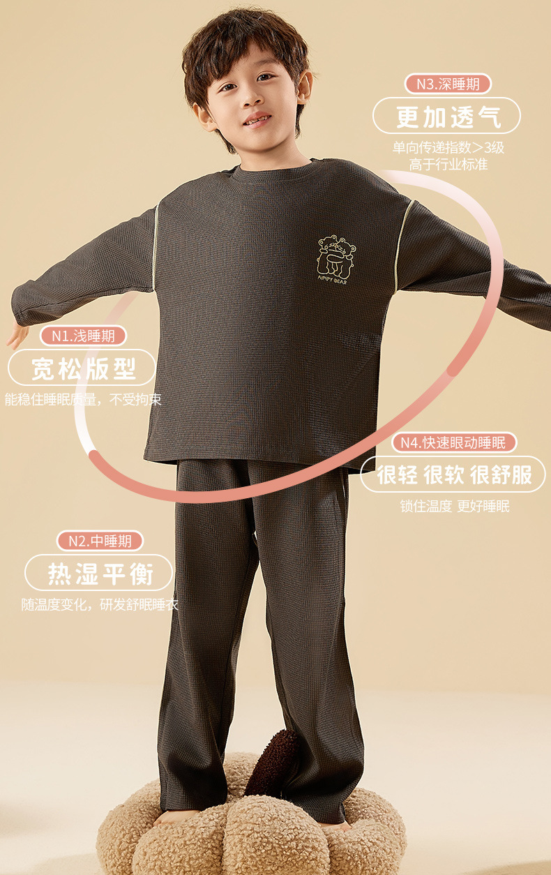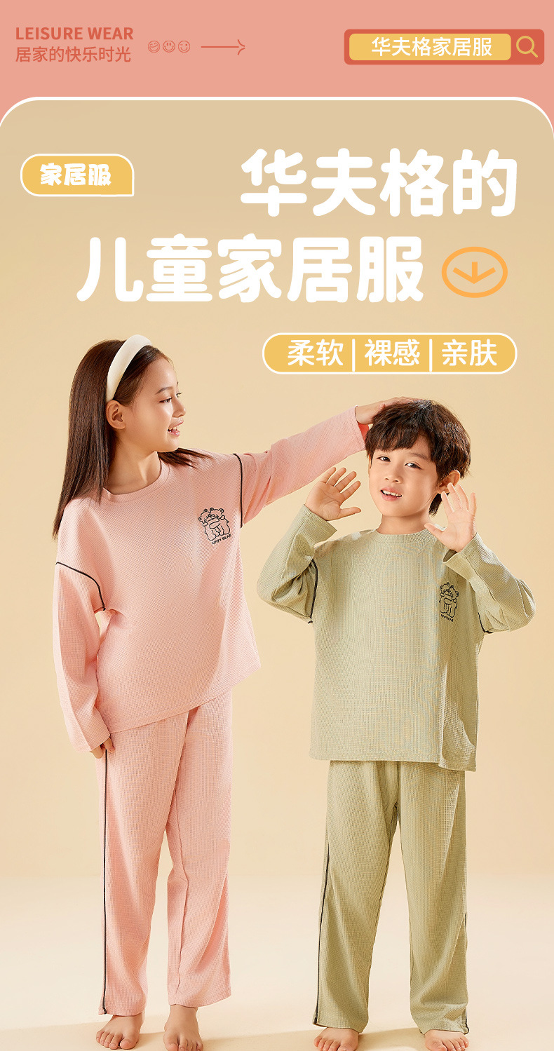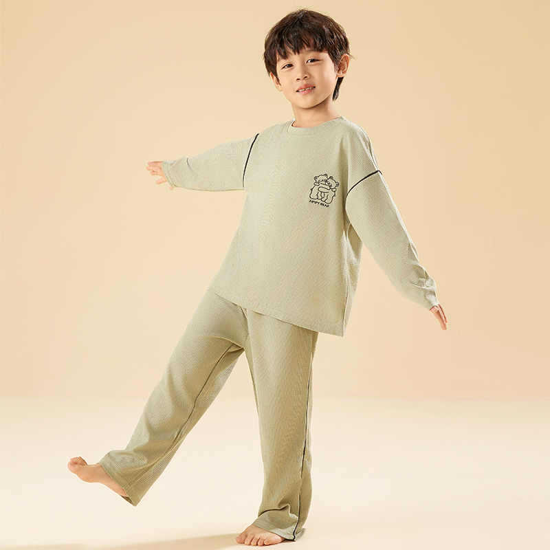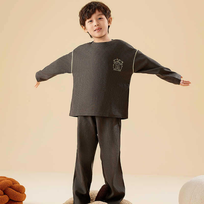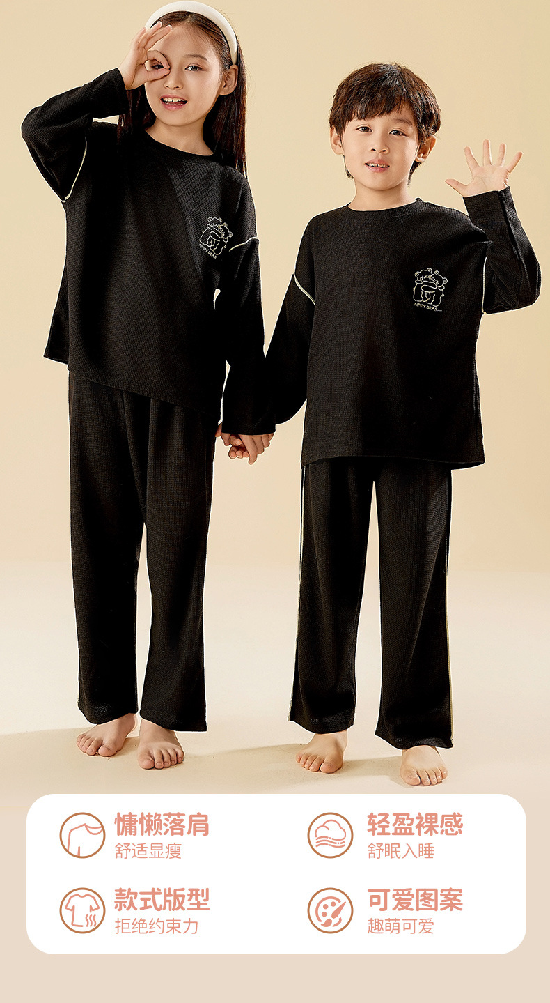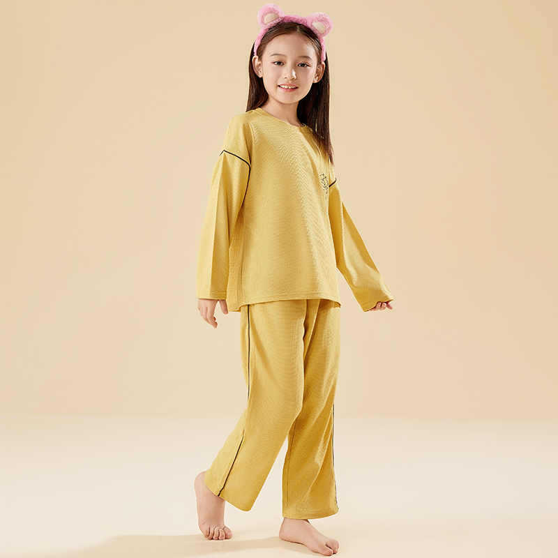 새로운 캐주얼 느슨한 둥근 목 긴 소매 잠옷 세트 봄과 가을 중년 어린이 잠옷 홈 의류 소년 소녀 잠옷