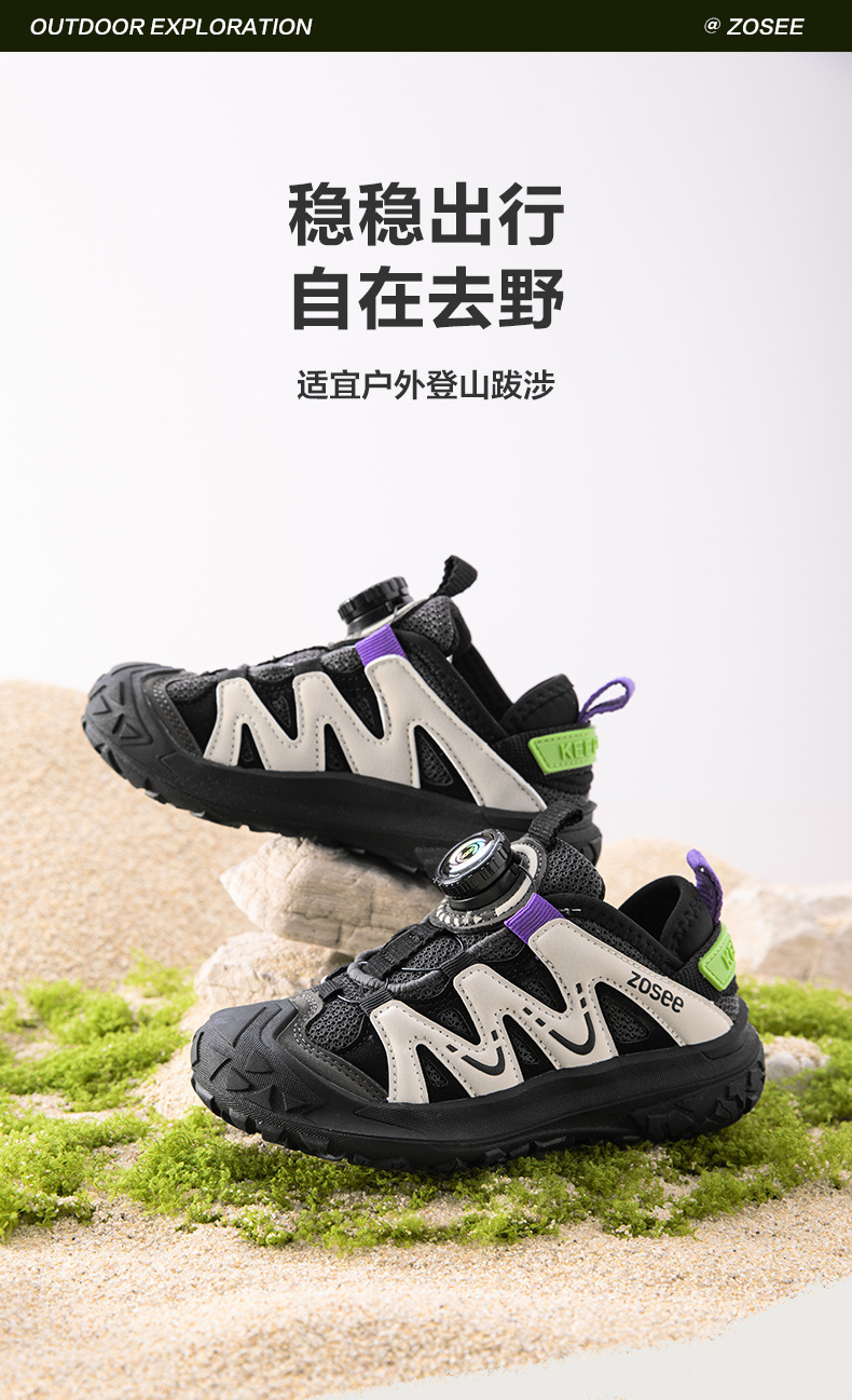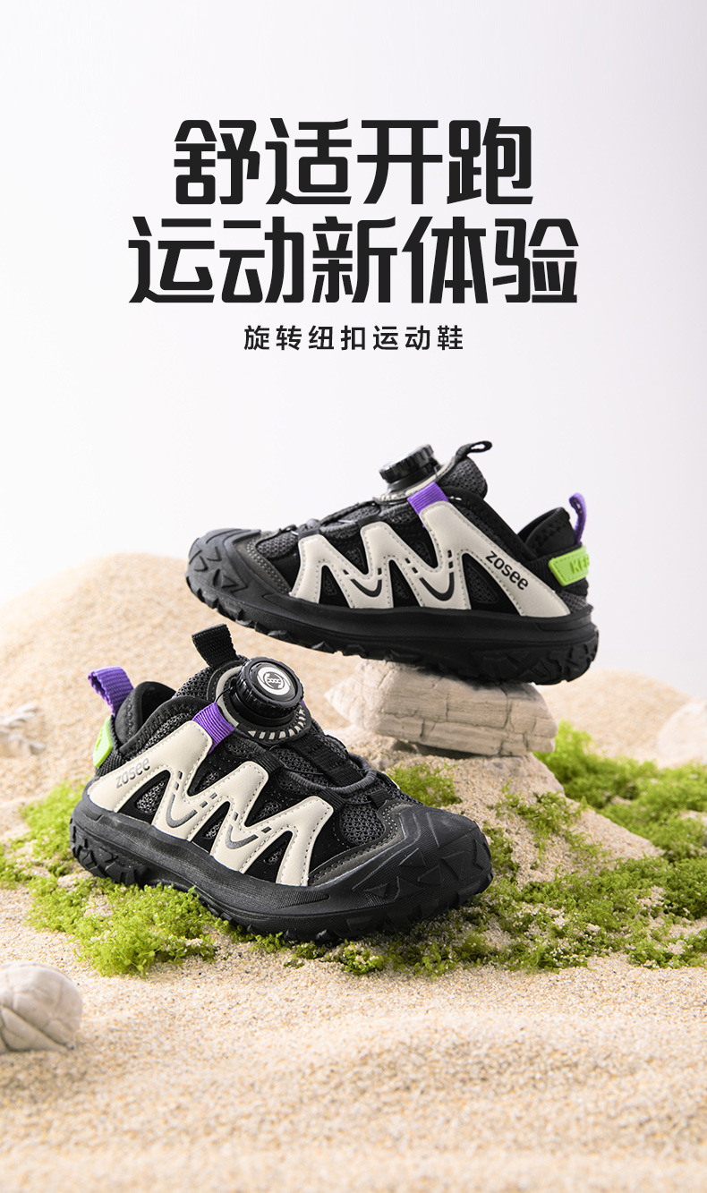 왼쪽 서쪽 소년 운동화 어린이 신발 2025 새로운 버튼 기능 메쉬 통기성 캐주얼 추적 신발 서양식스토어 가기