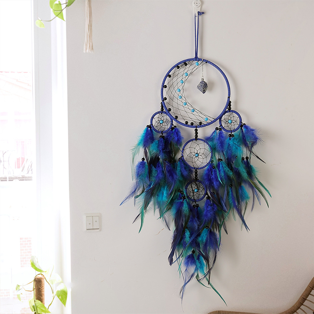 하이 엔드 라이트 럭셔리 드림 캐처 깃털 매달려 장식 크리스탈 스톤 손으로 짠 바람 차임 거실 벽 장식 폭발스토어 가기