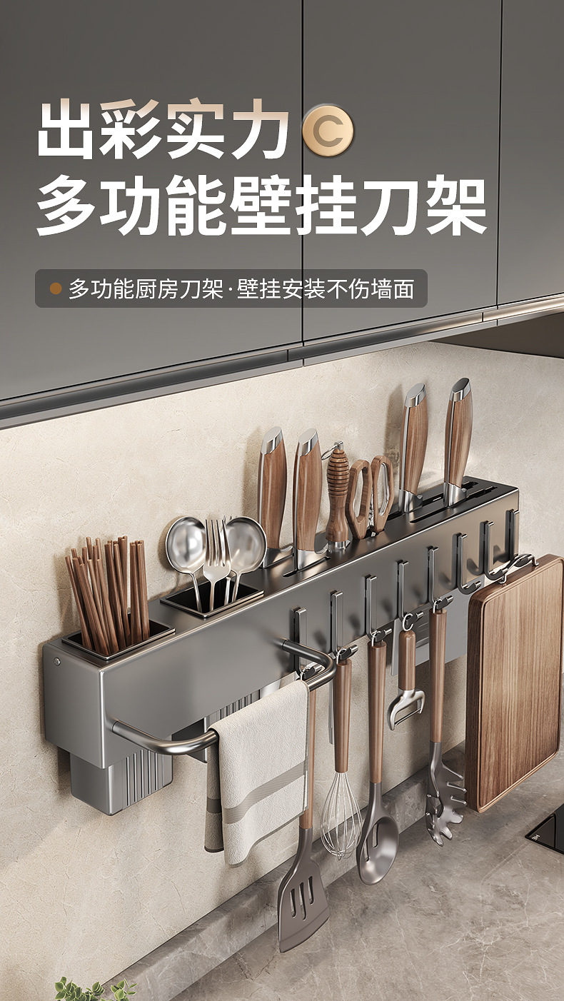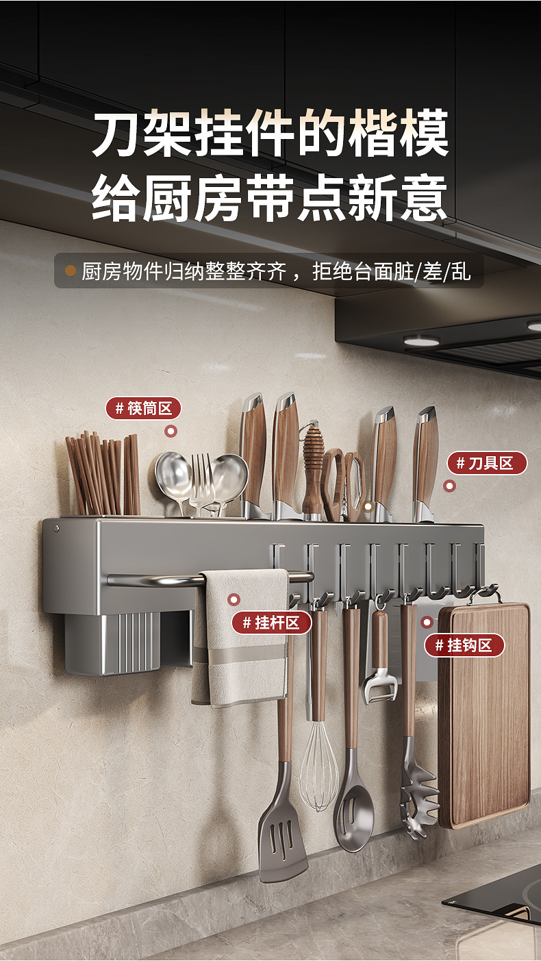 나이프 홀더 벽걸이 형 펀치없는 주방 용품 다기능 스토리지 랙 나이프 케이지 젓가락 홀더 젓가락 홀더 통합 스토리지 랙
