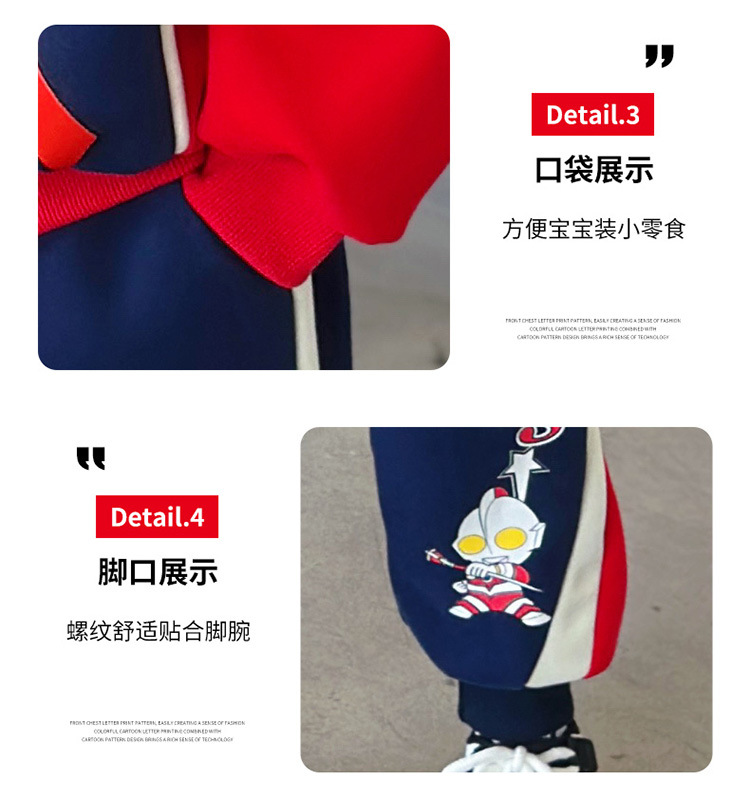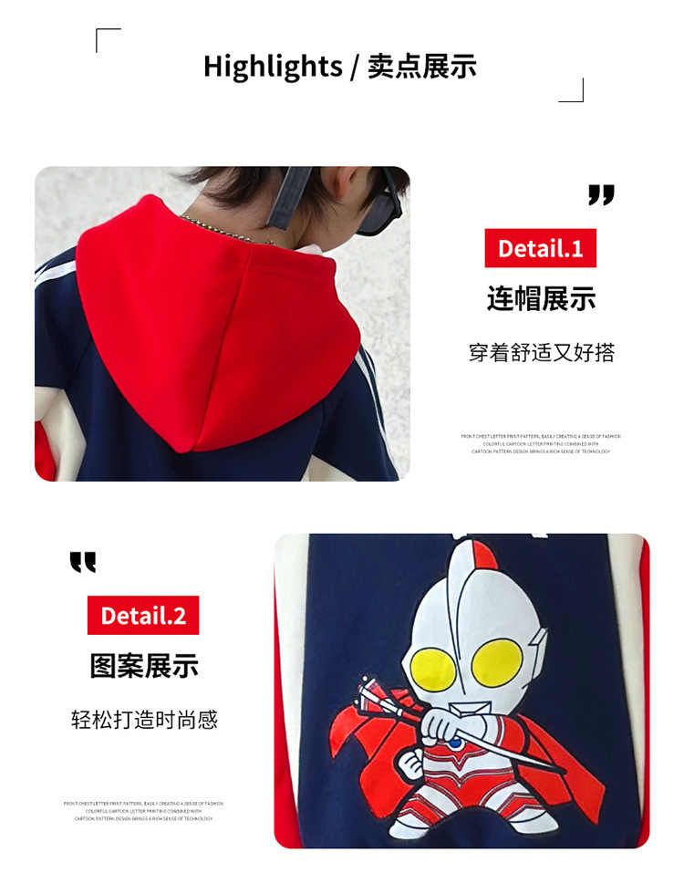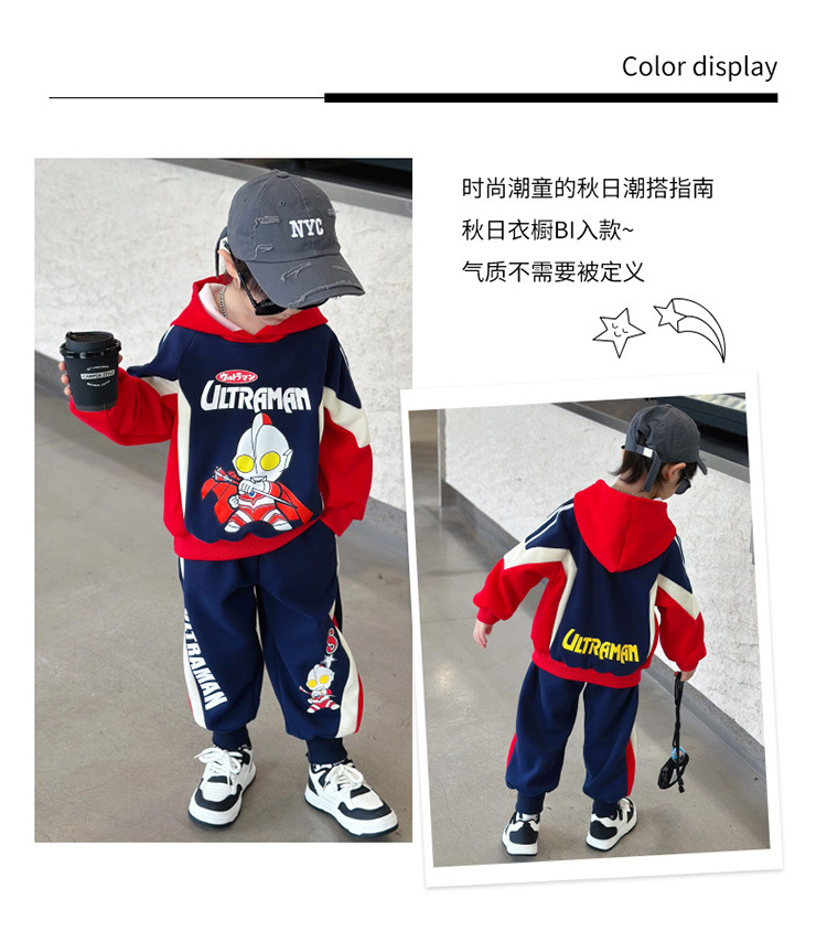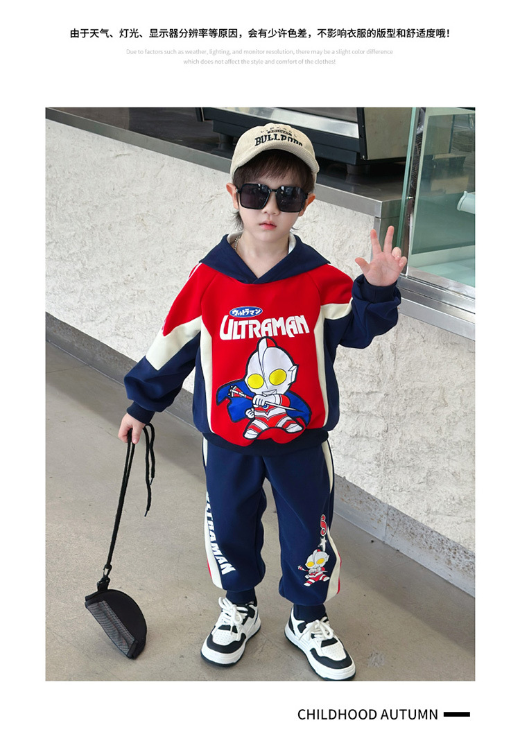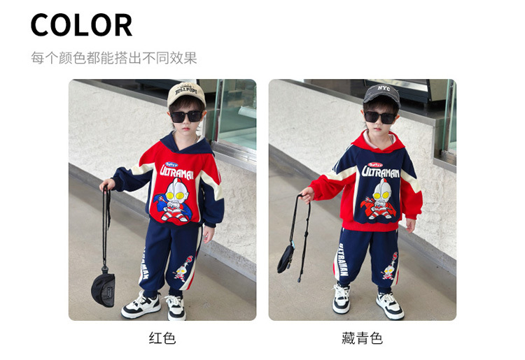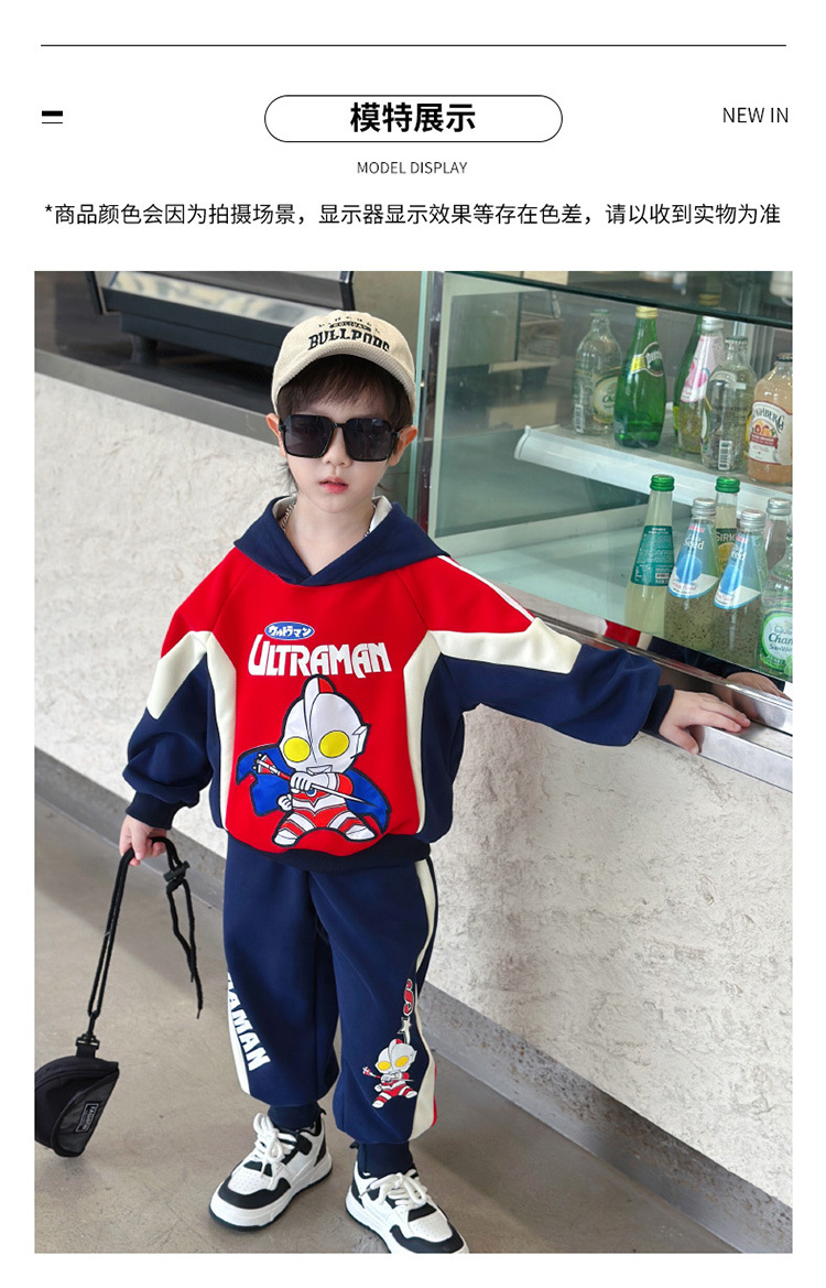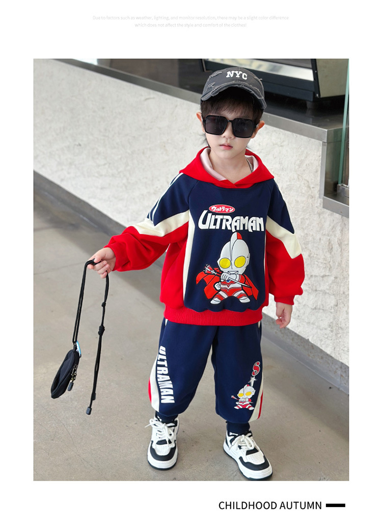 울트라 맨 옷 소년 봄과 가을 세트 2024 새로운 외국 스타일 멋진 잘 생긴 남자의 보물 후드 조끼 2 피스 트렌디 한 옷스토어 가기