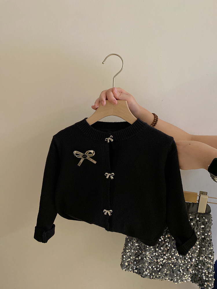 2024년 신상 여아 가을 의류, 세련된 리본 니트 스웨터 가디건, 패셔너블한 스팽글 스커트, 아동복 투피스 세트