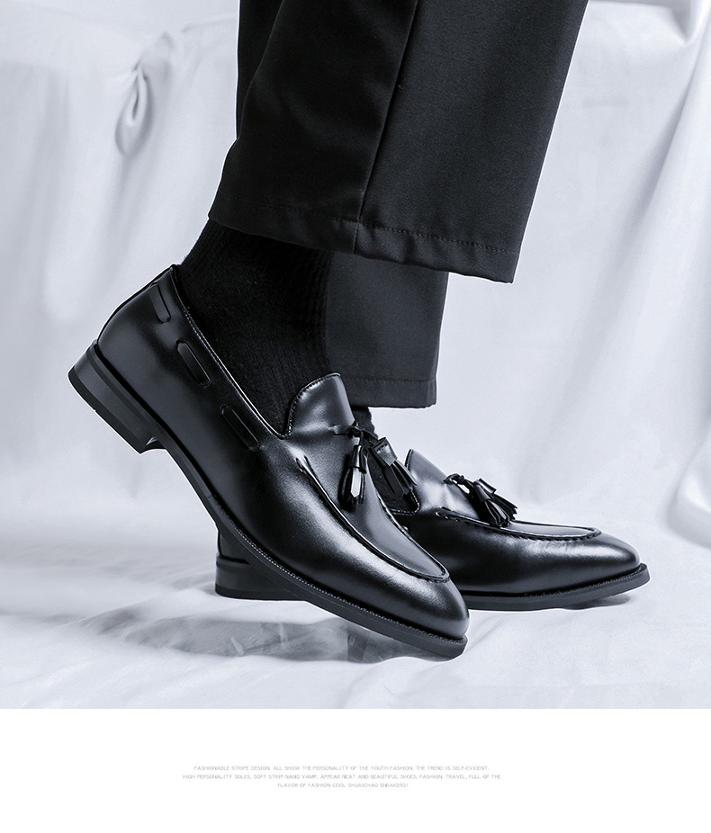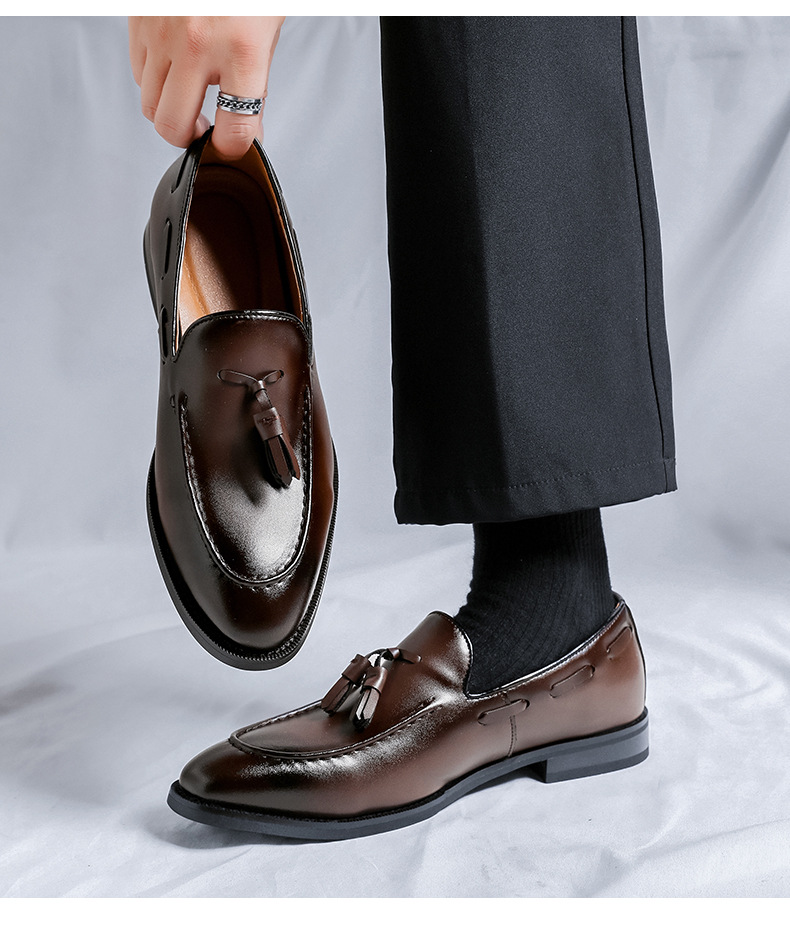 레트로 캐주얼 신발 유행 비즈니스 원피스 가죽 신발 술 영국 사무실 통근 게으른 한 페달 로퍼 남성