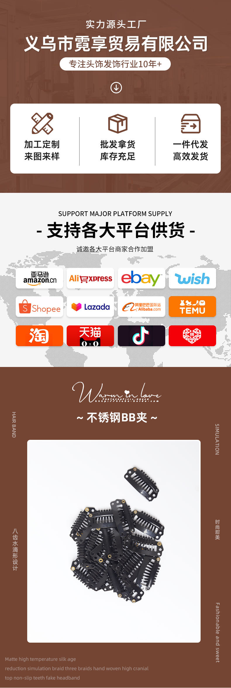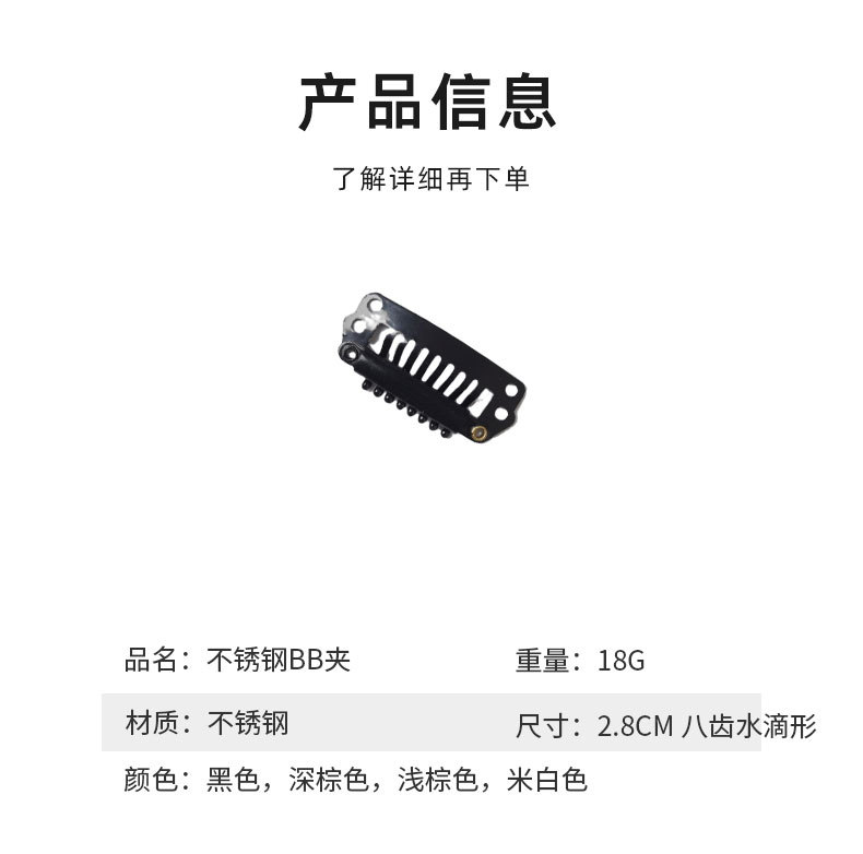 2.8cm 8 개의 이빨 드롭 모양의 BB 클립 스테인레스 스틸 가발 클립 베레 고정 클립 가발 가발 착용 액세서리 조수스토어 가기