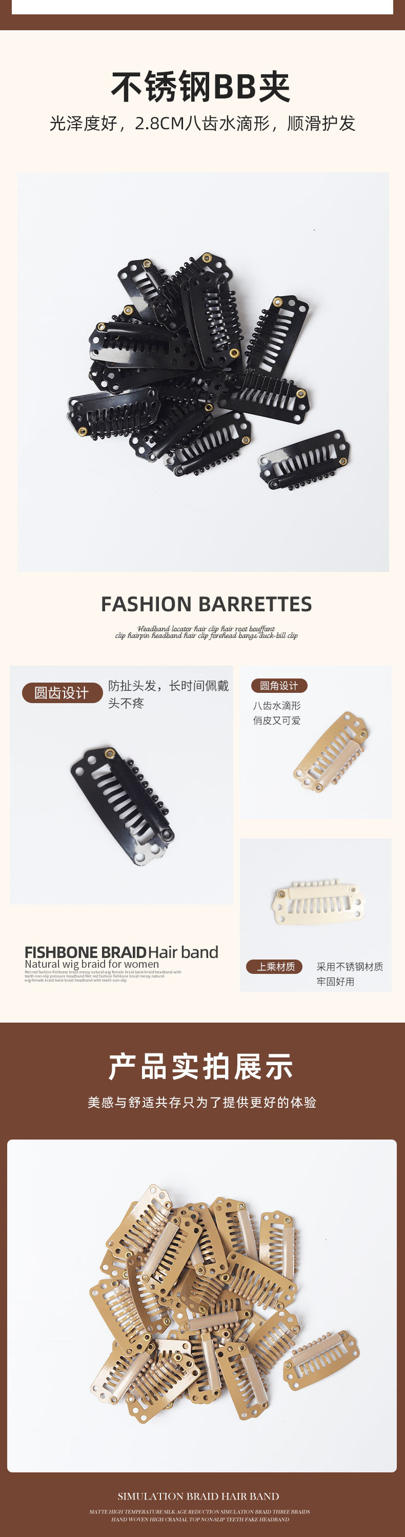 2.8cm 8 개의 이빨 드롭 모양의 BB 클립 스테인레스 스틸 가발 클립 베레 고정 클립 가발 가발 착용 액세서리 조수