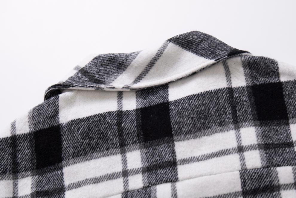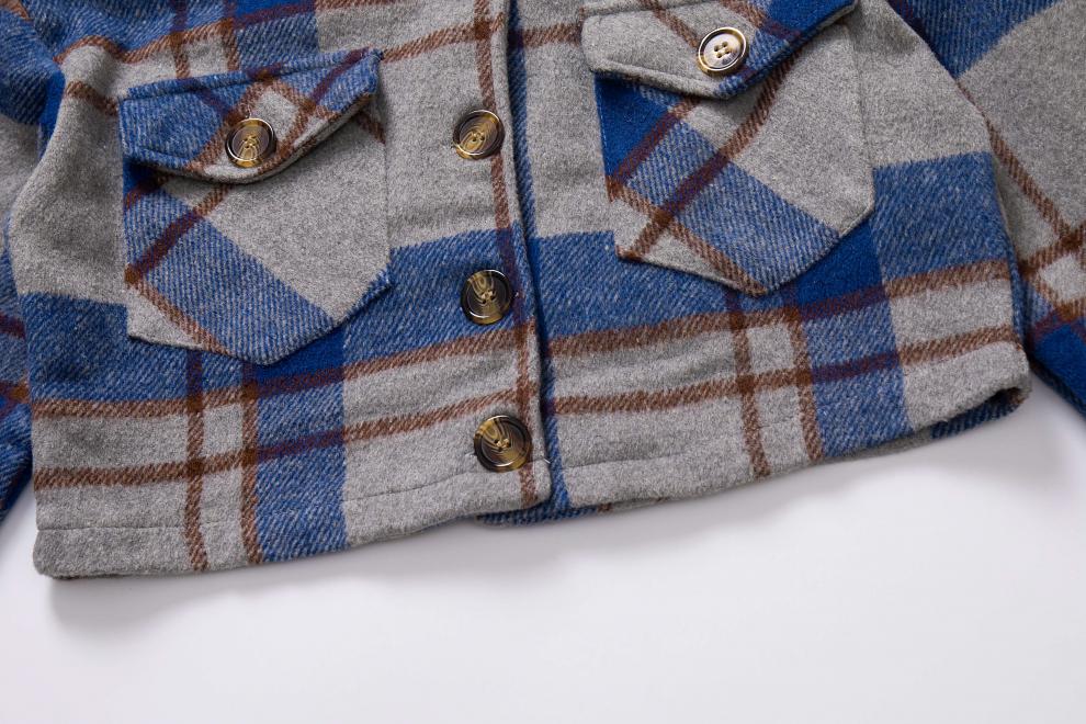 2024년 가을 겨울 신상 여성용 짧은 모직 코트 체크무늬 랜턴 소매 긴팔 재킷스토어 가기