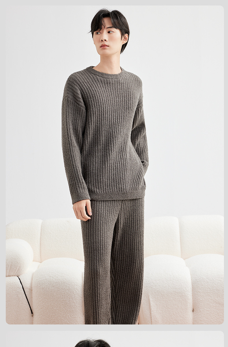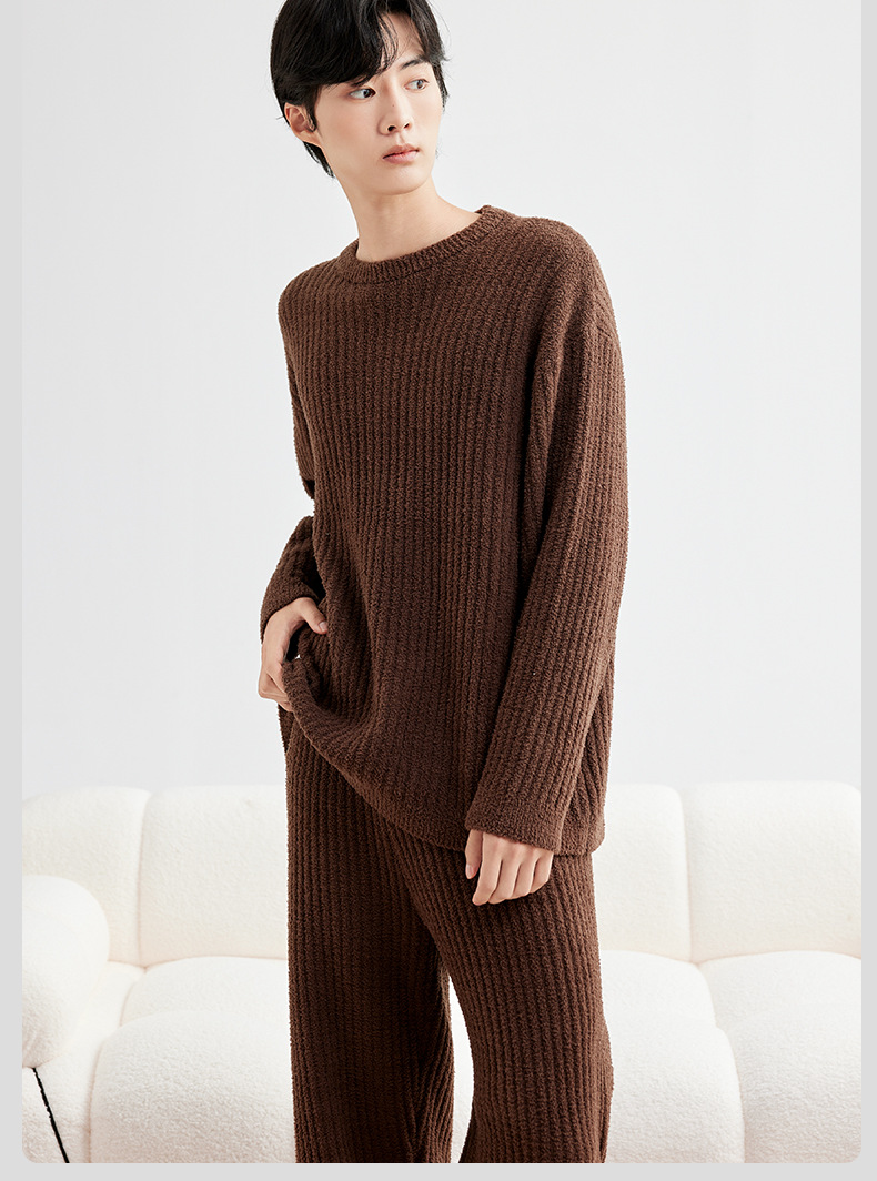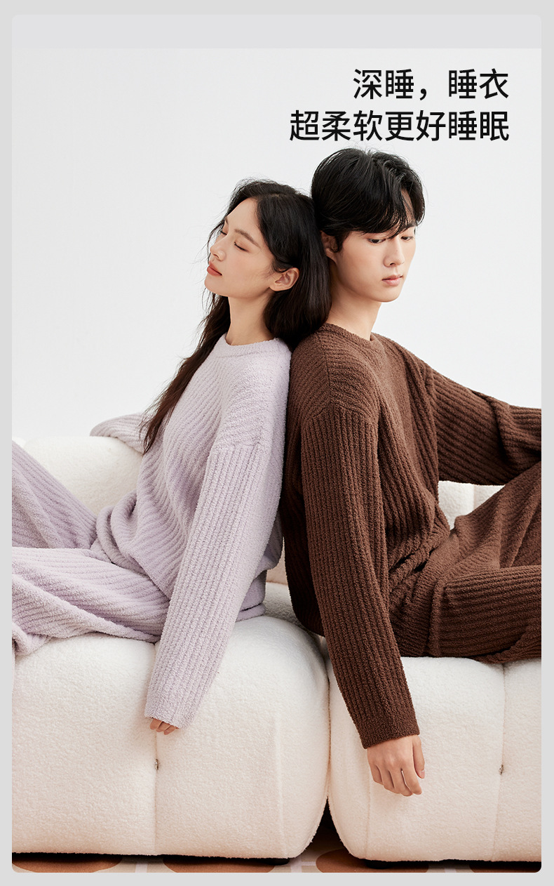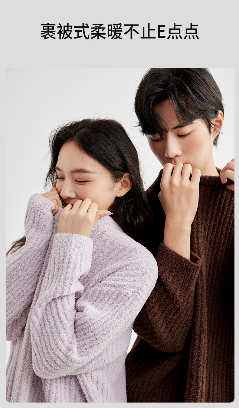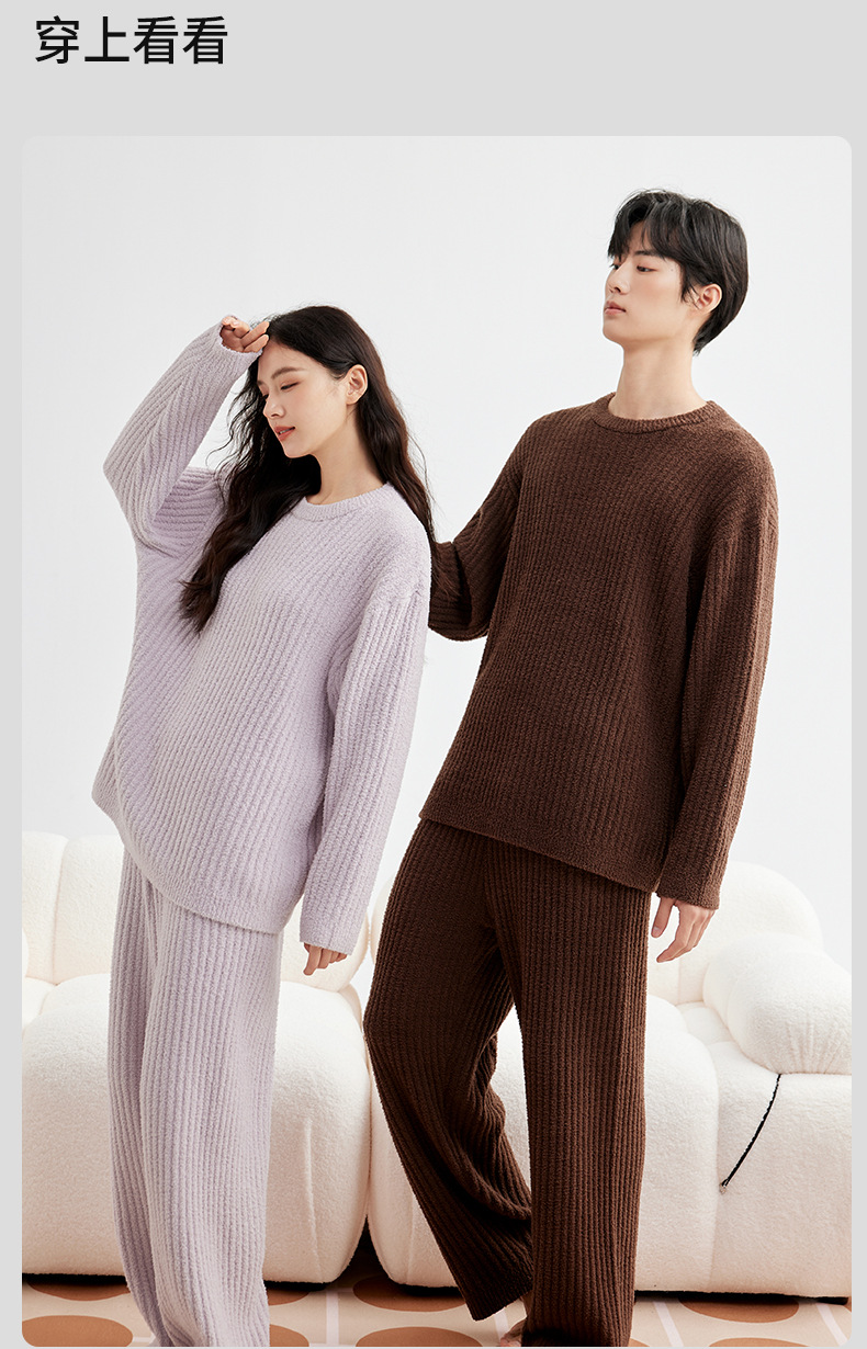 두꺼운 따뜻한 가을 겨울용 여성용 풀오버 스트라이프 반벨벳 잠옷 남성용 홈웨어 커플용스토어 가기