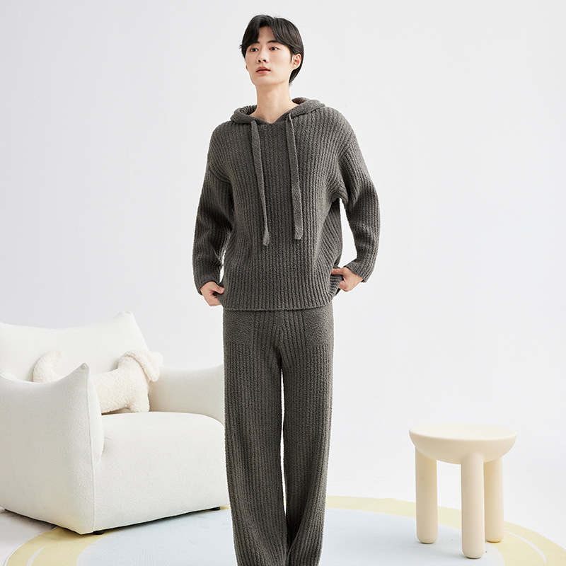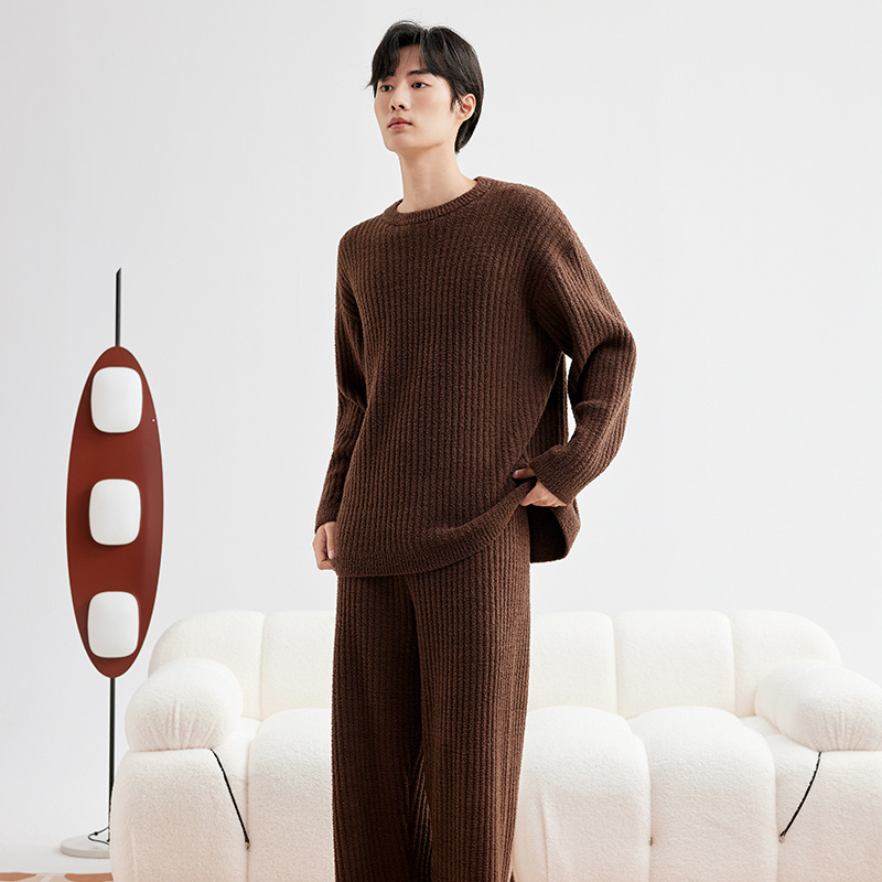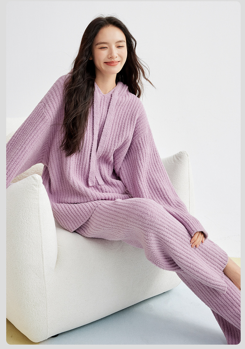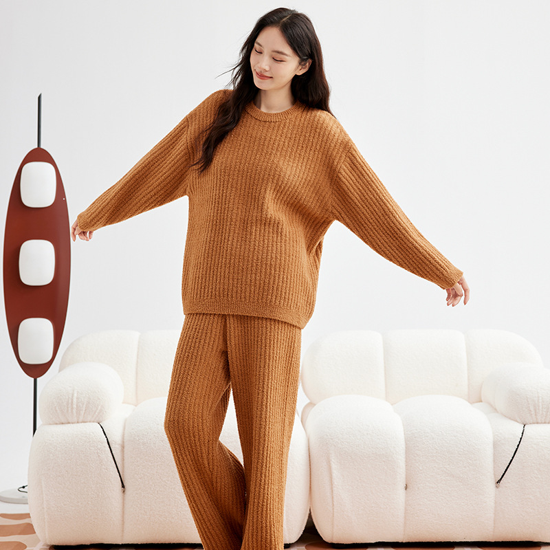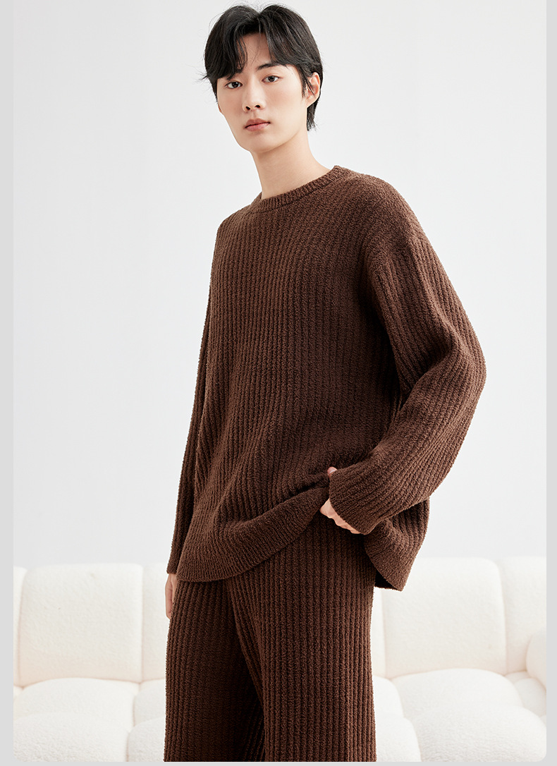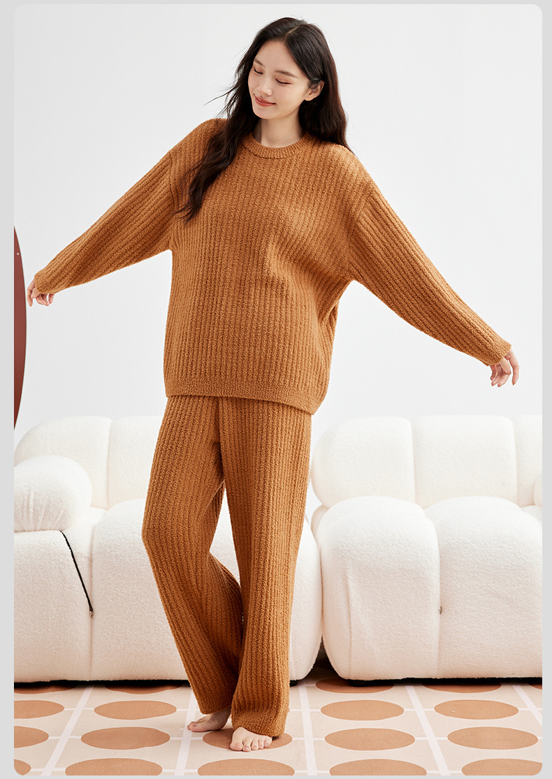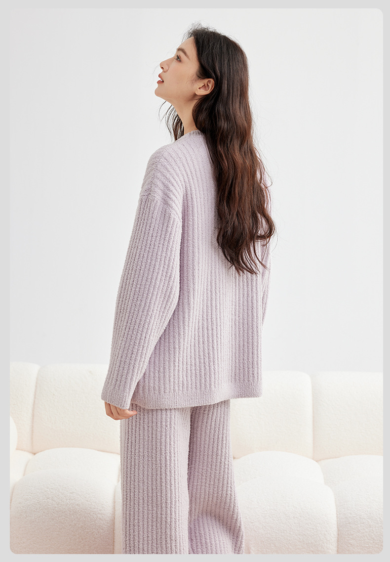 두꺼운 따뜻한 가을 겨울용 여성용 풀오버 스트라이프 반벨벳 잠옷 남성용 홈웨어 커플용스토어 가기