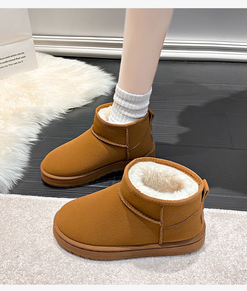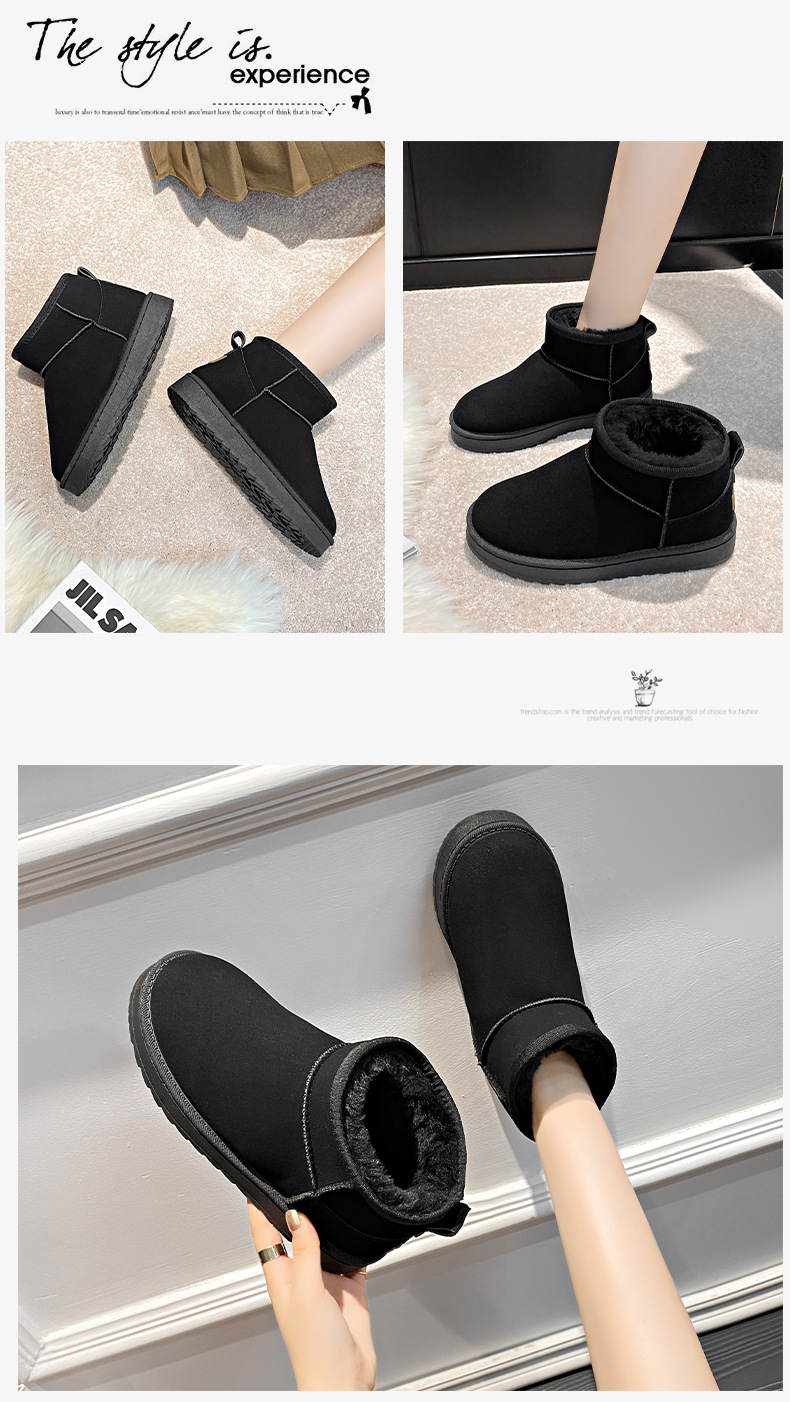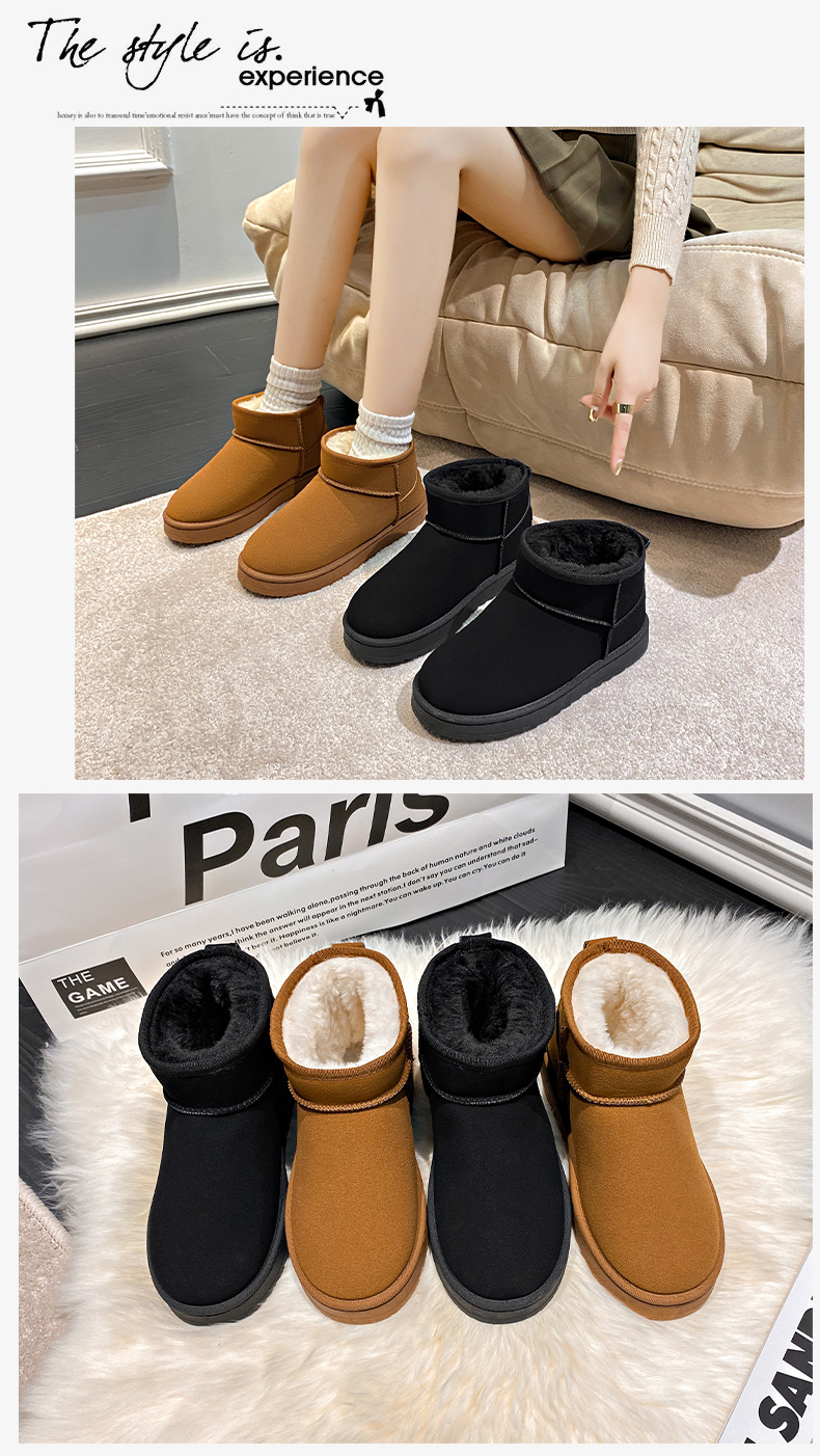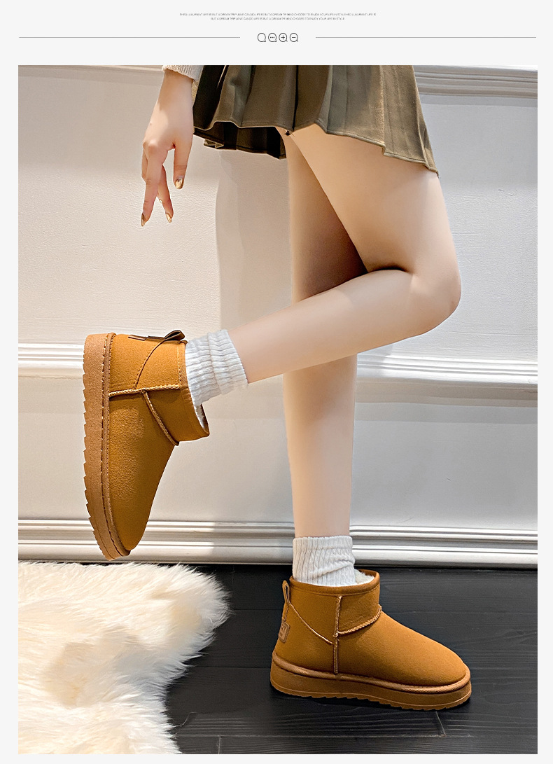 평평한 바닥 스노우 부츠 여성 모피 원피스 2024 새로운 Zhou Dongyu 증가 미니 짧은 튜브 두꺼운 면화 겨울스토어 가기