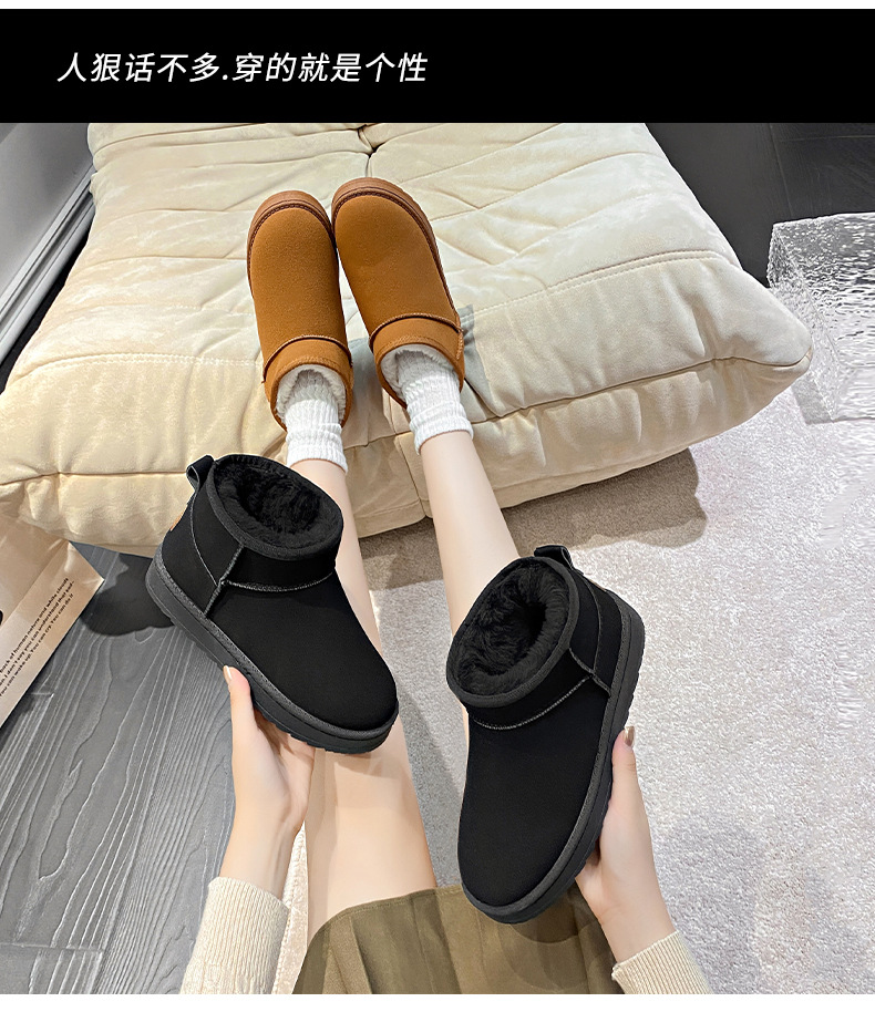 평평한 바닥 스노우 부츠 여성 모피 원피스 2024 새로운 Zhou Dongyu 증가 미니 짧은 튜브 두꺼운 면화 겨울