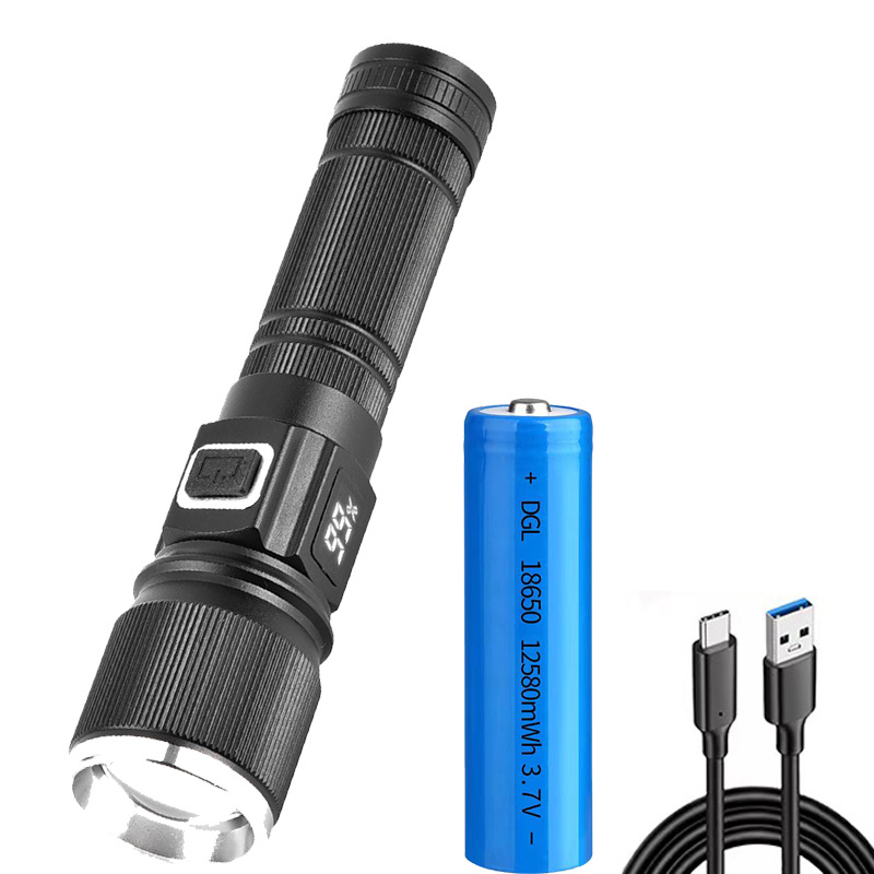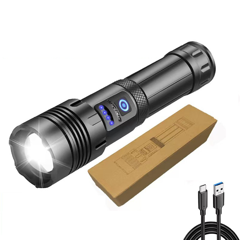 국경 LED 백색 레이저 손전등 유형-C 충전 텔레스코픽 줌 장거리 다기능 자기 방어 손전등