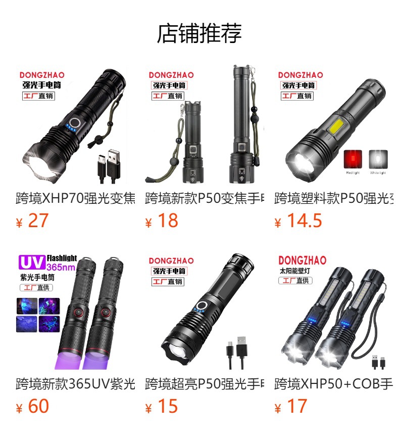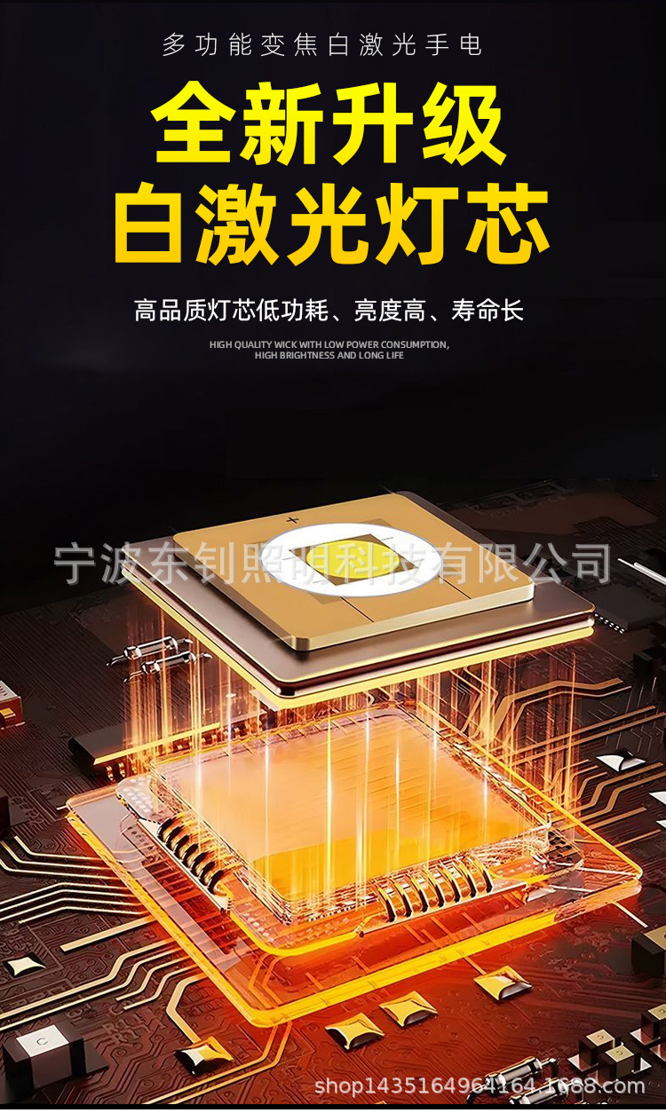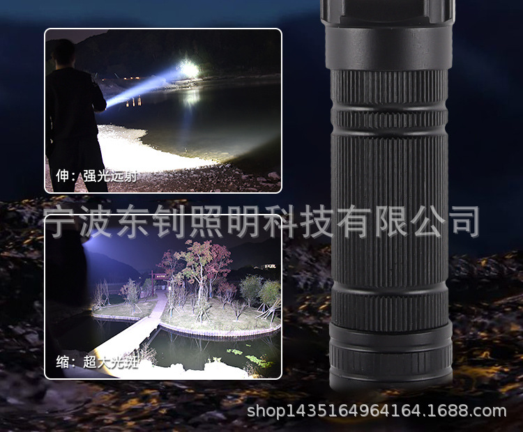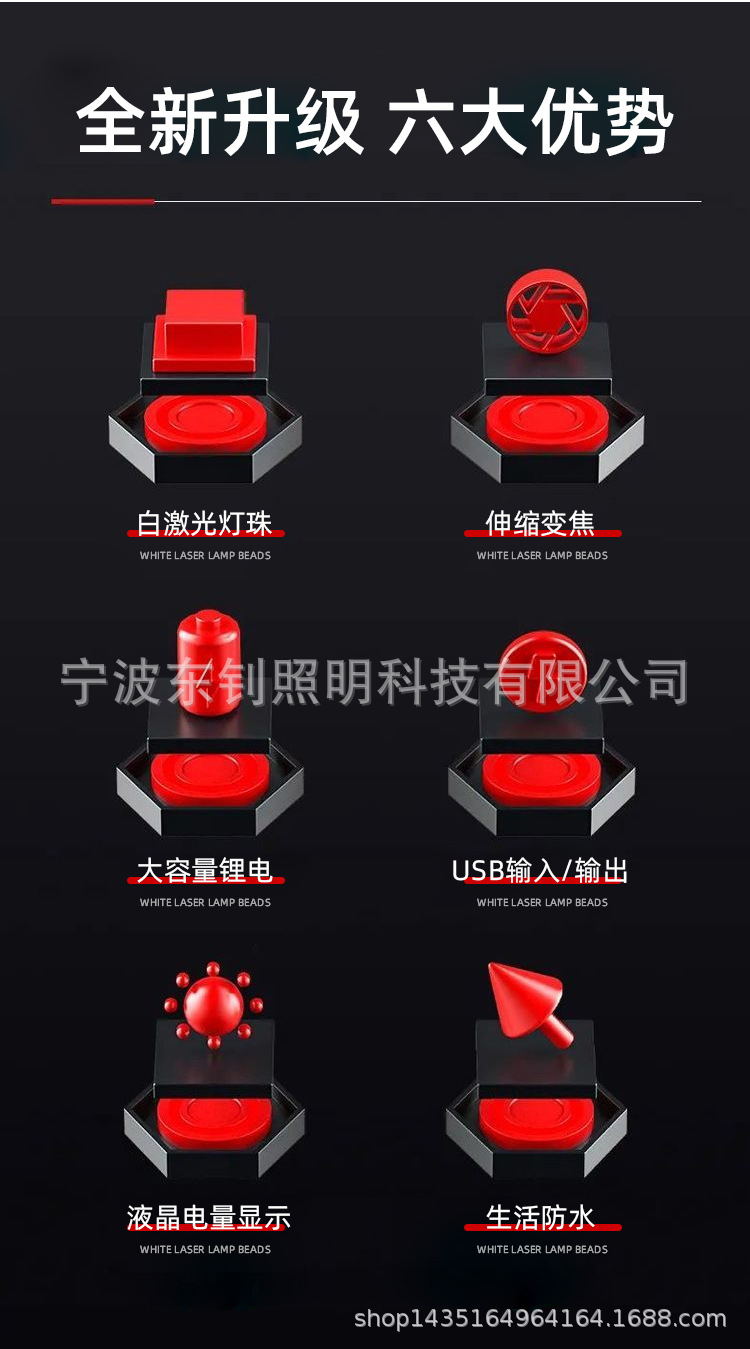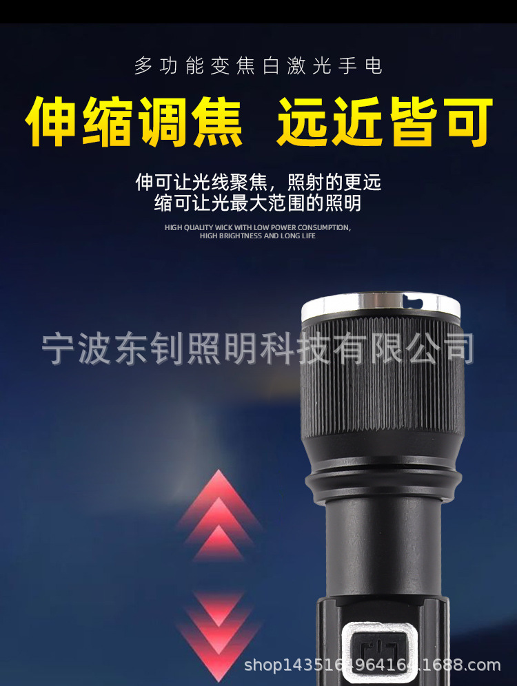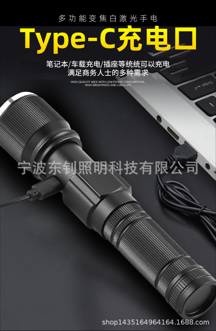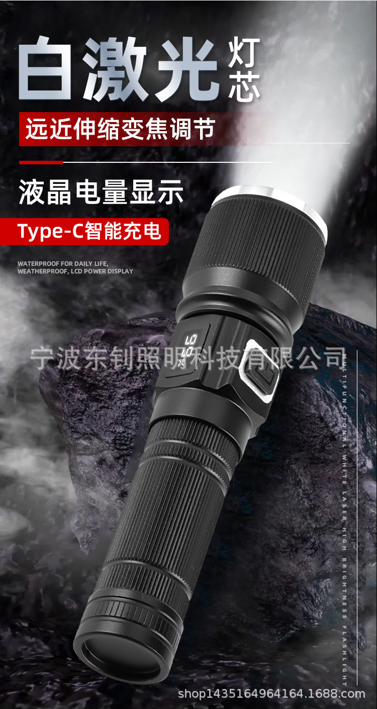 국경 LED 백색 레이저 손전등 유형-C 충전 텔레스코픽 줌 장거리 다기능 자기 방어 손전등스토어 가기