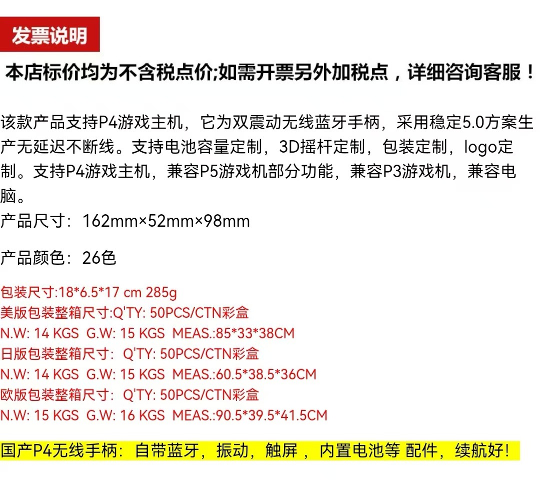 공장 맞춤형 P4 컨트롤러 국경 간 인기 무선 블루투스 게임 컨트롤러 PC 컴퓨터 조명이 있는 6축 진동스토어 가기