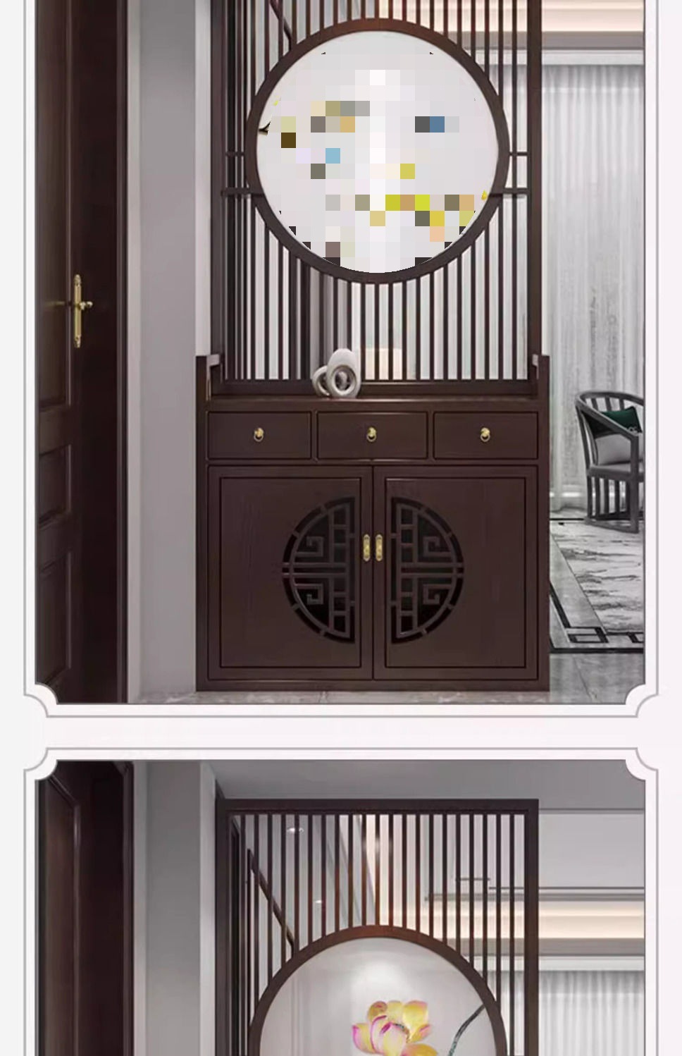 새로운 중국 스타일의 단단한 나무 거실 파티션 스크린 캐비닛 입구 현관 차단 새로운 올인원 신발 캐비닛 현대적인 새로운 스타일스토어 가기