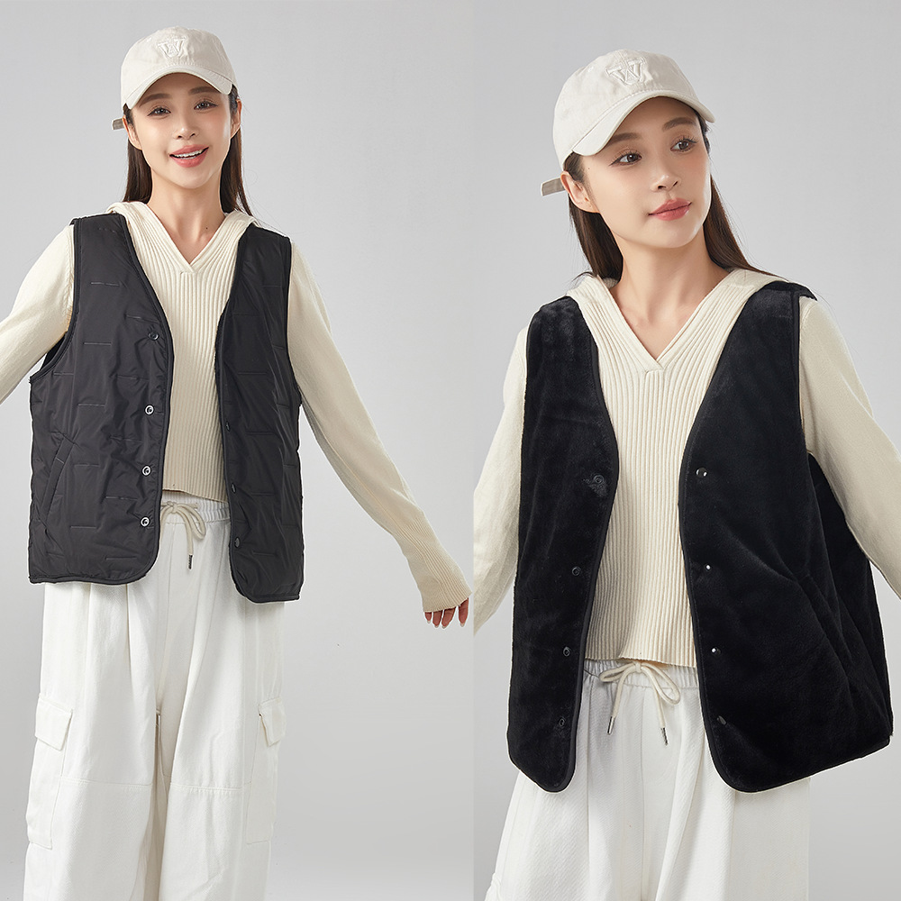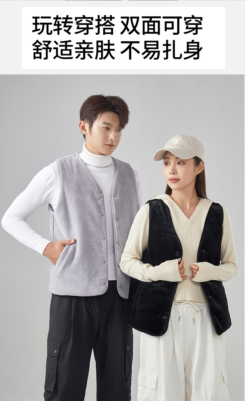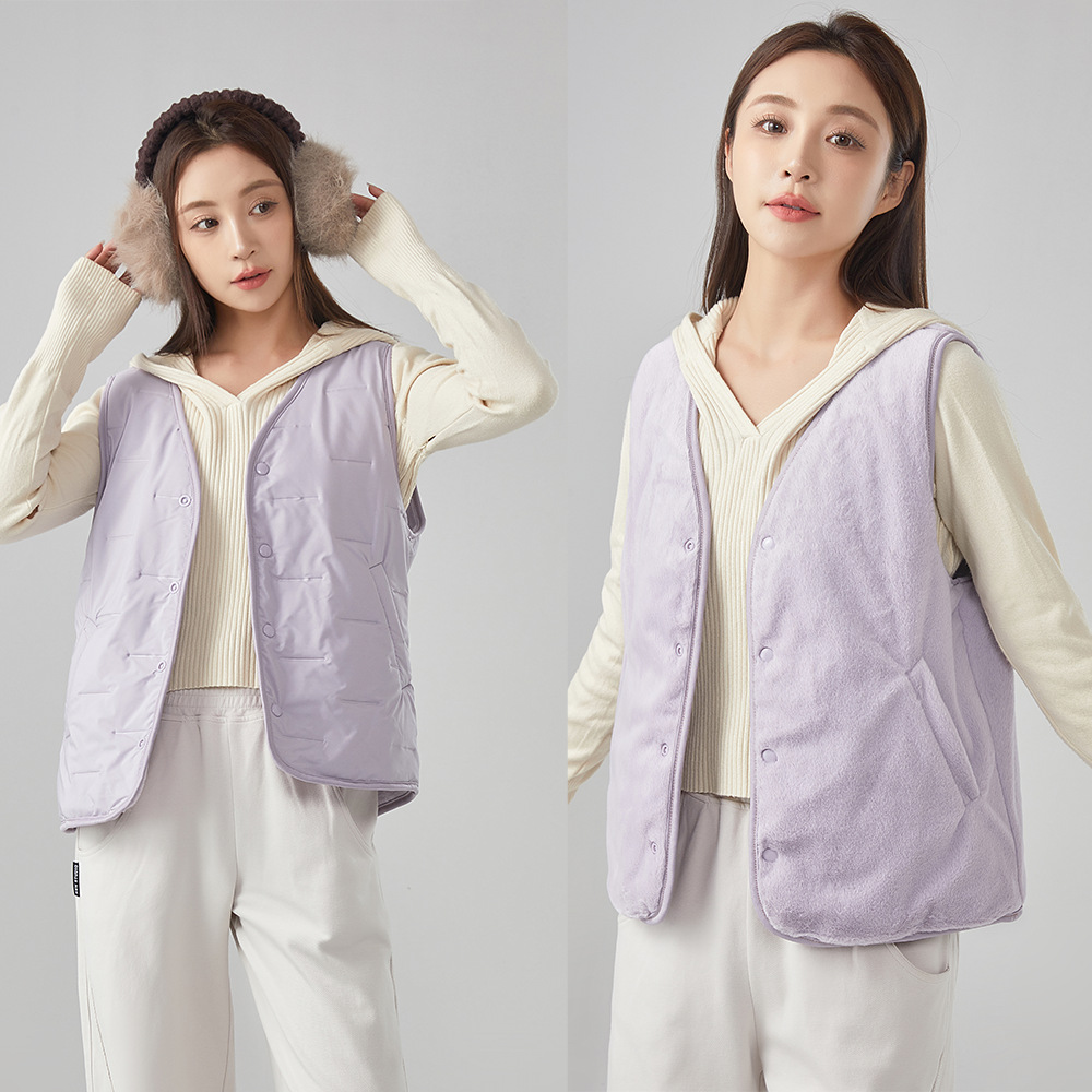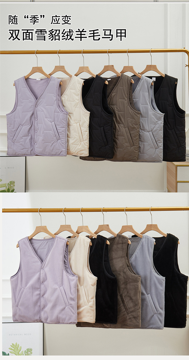 [흰 족제비 벨벳 양면 양모 조끼] 남녀 겨울 조끼 가벼운 열 보관 코트 양복 조끼 가을