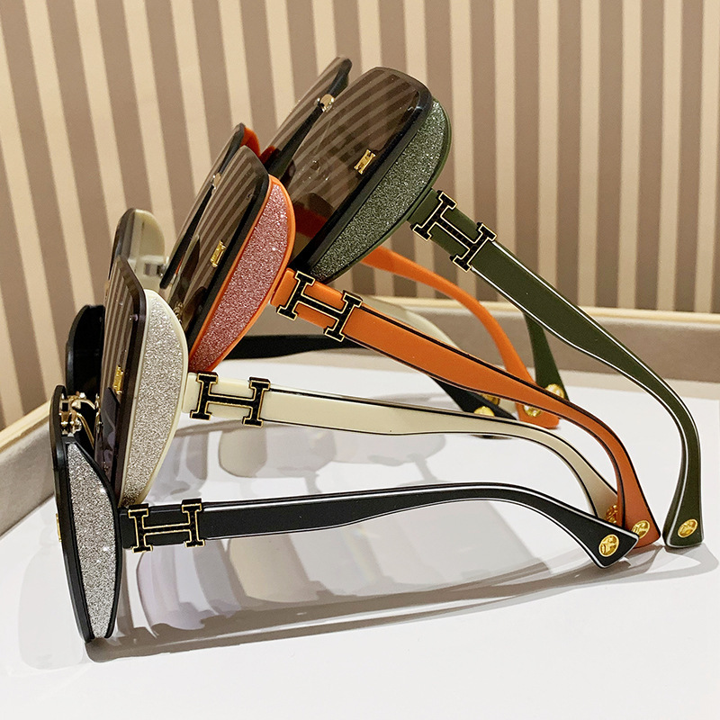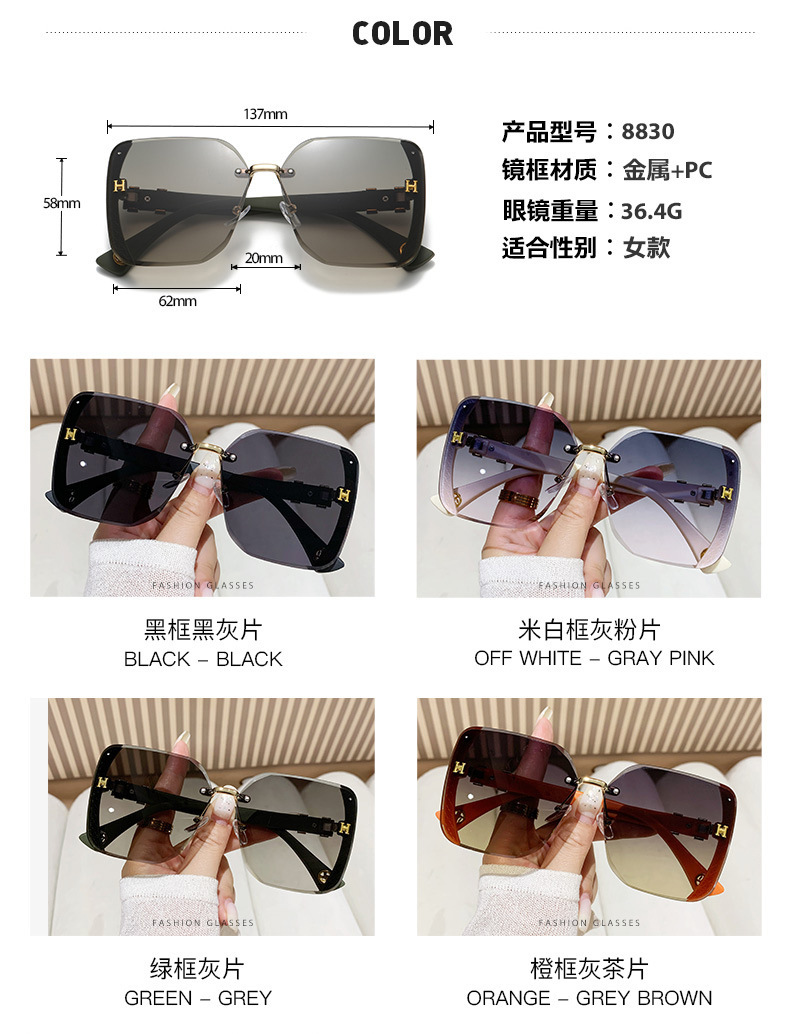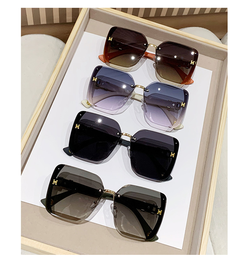 24 프레임리스 컷 엣지 선글라스 새로운 박스 선글라스 패션 UV 보호 선글라스 트렌디 스트리트 샷 선글라스