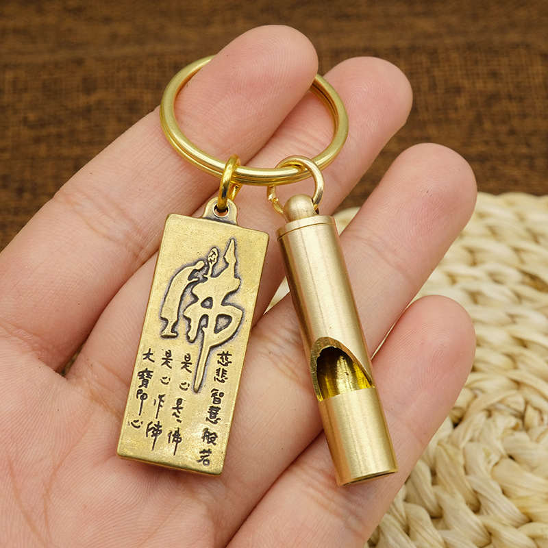 황동 휘슬 심판 레트로 야외 생존 휘슬 키 체인 어린이 생활 휘슬 펜던트 캠핑 훈련