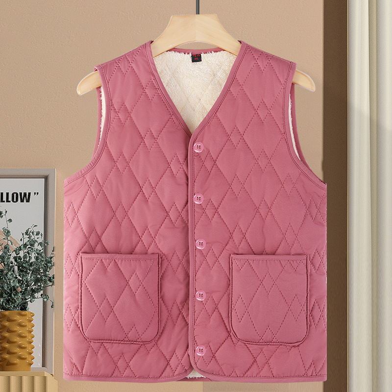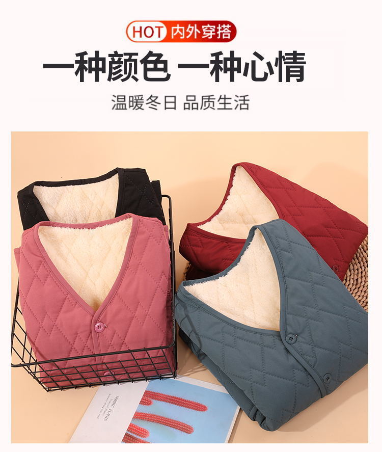 신상품 2025 가을 겨울 두꺼운 플리스 안감 방한 보온 초경량 여성 브이넥 조끼 내외 착용 여성 조끼스토어 가기