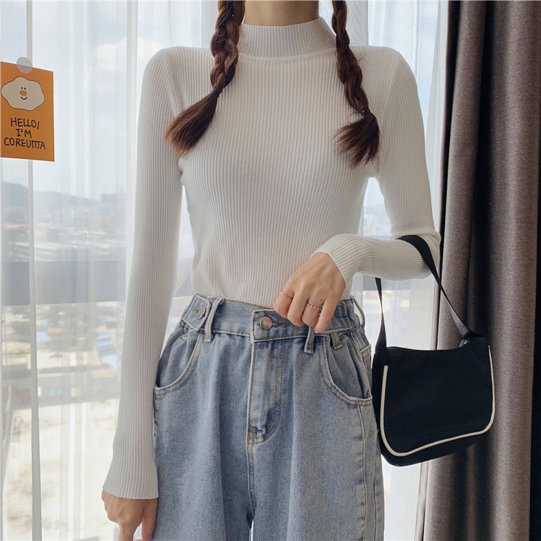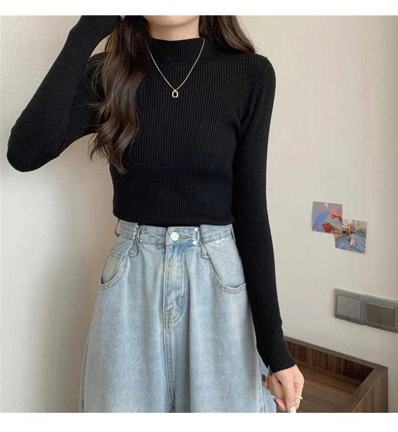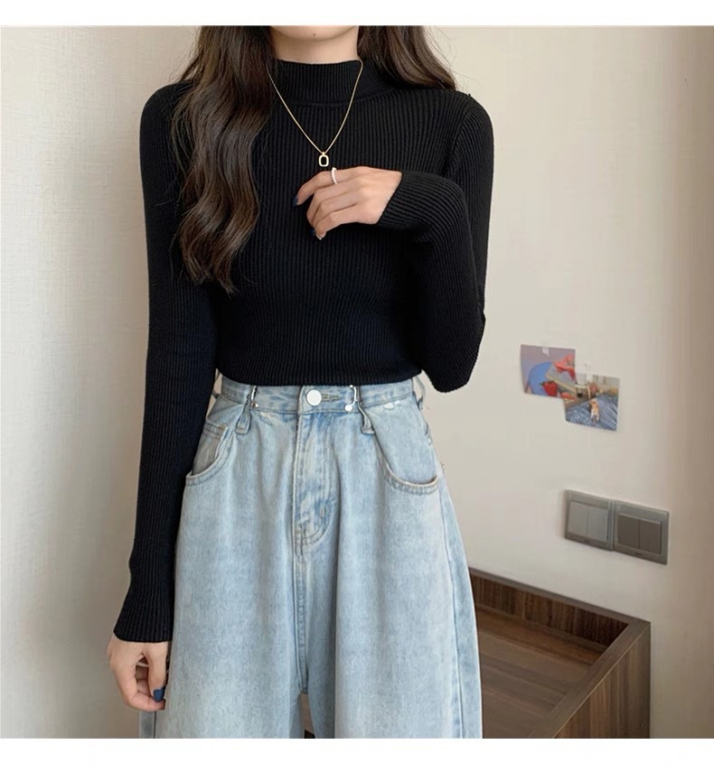 반하이넥 스웨터 여성용 가을 겨울 스타일리시 슬림핏 이너웨어 신상 다용도 니트 긴팔 도매스토어 가기