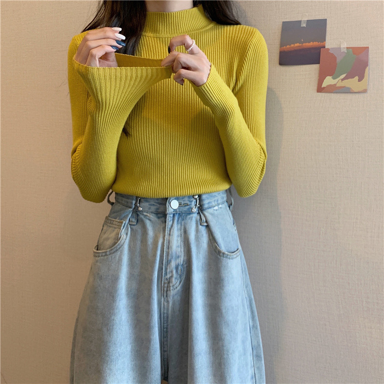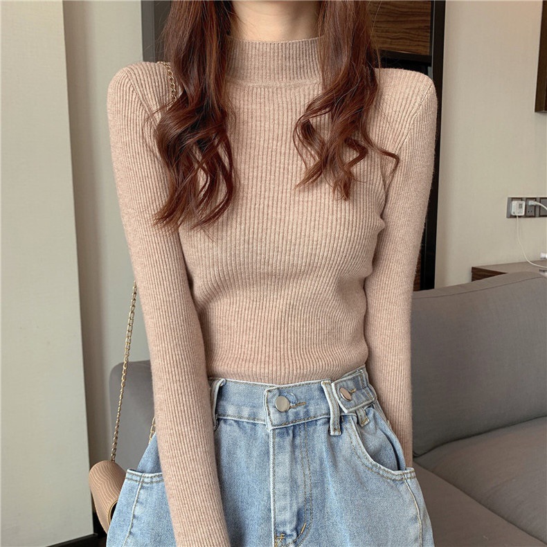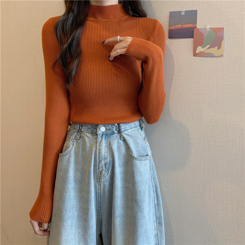 반하이넥 스웨터 여성용 가을 겨울 스타일리시 슬림핏 이너웨어 신상 다용도 니트 긴팔 도매