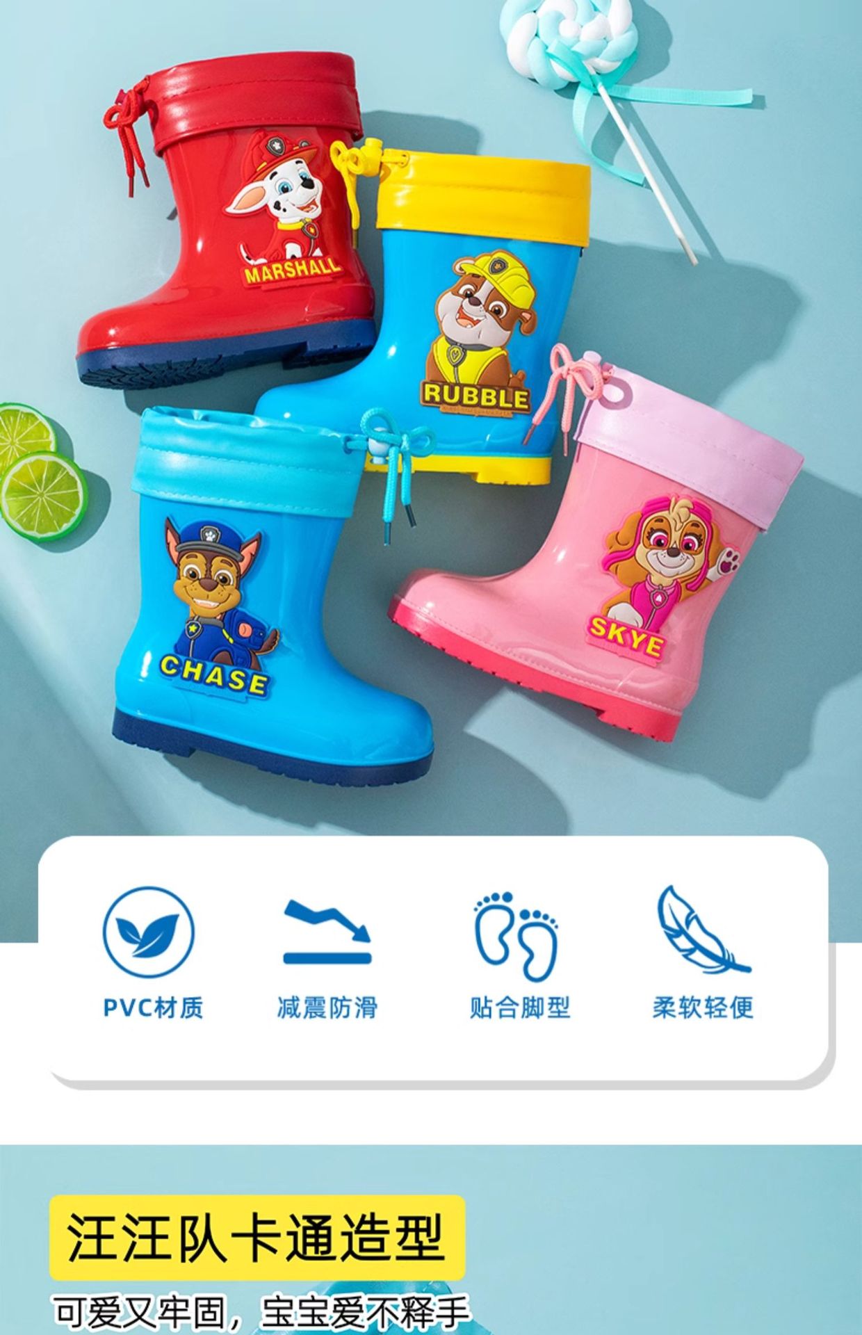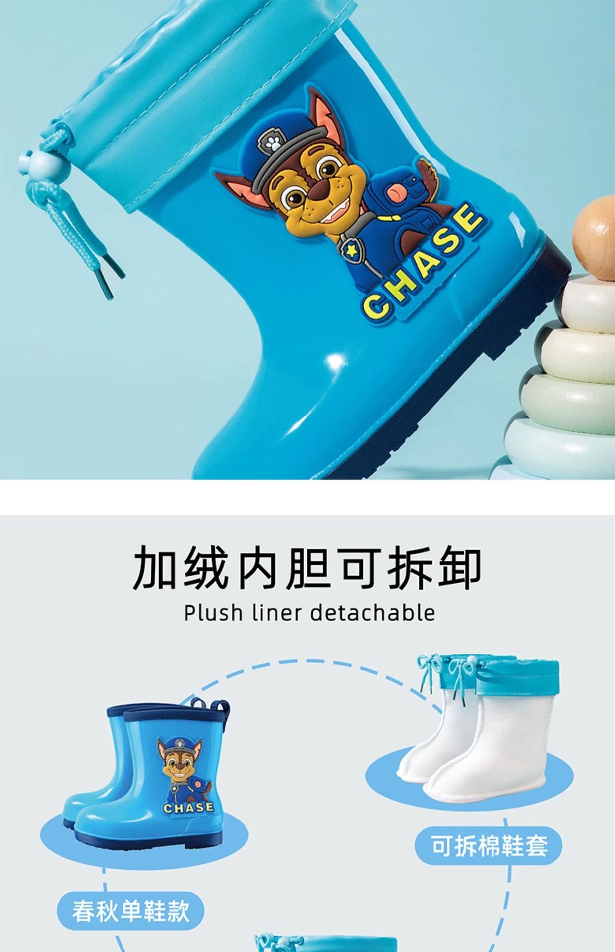 Wang Wang 팀 어린이 장화 만화 코르셋 기모 장화 올 시즌 소년 소녀를위한 보편적 인 물 신발 미끄럼 방지 고무 신발스토어 가기