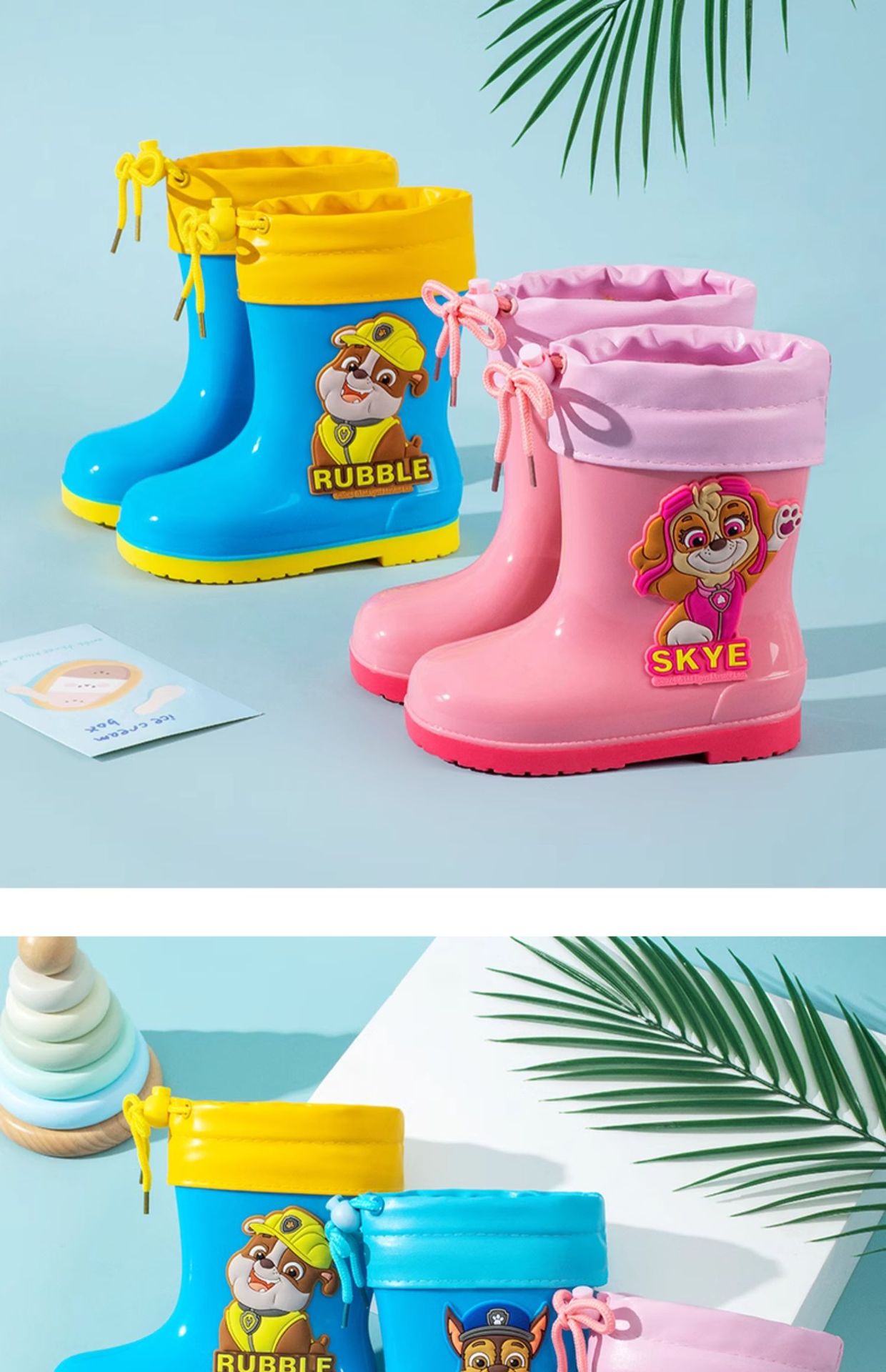 Wang Wang 팀 어린이 장화 만화 코르셋 기모 장화 올 시즌 소년 소녀를위한 보편적 인 물 신발 미끄럼 방지 고무 신발