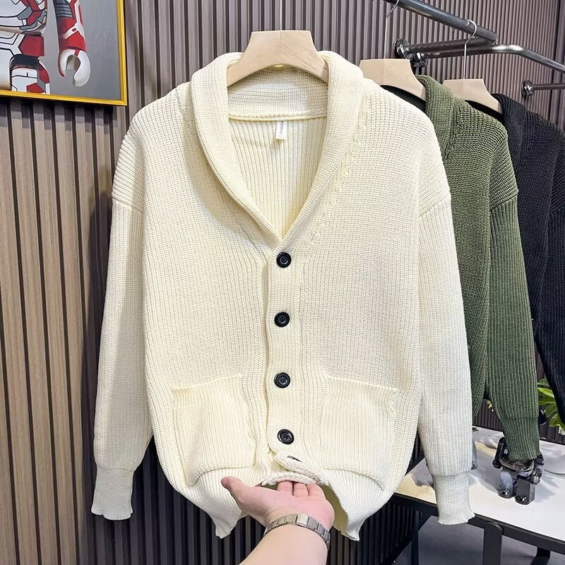 남성 니트웨어 스웨터 패션 도시 2024 가을 겨울 카디건 옷깃 중년 비즈니스 캐주얼스토어 가기
