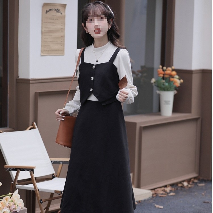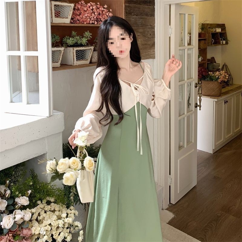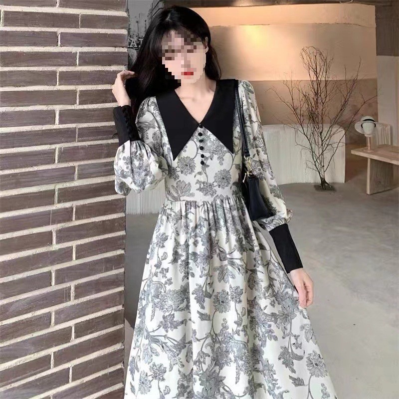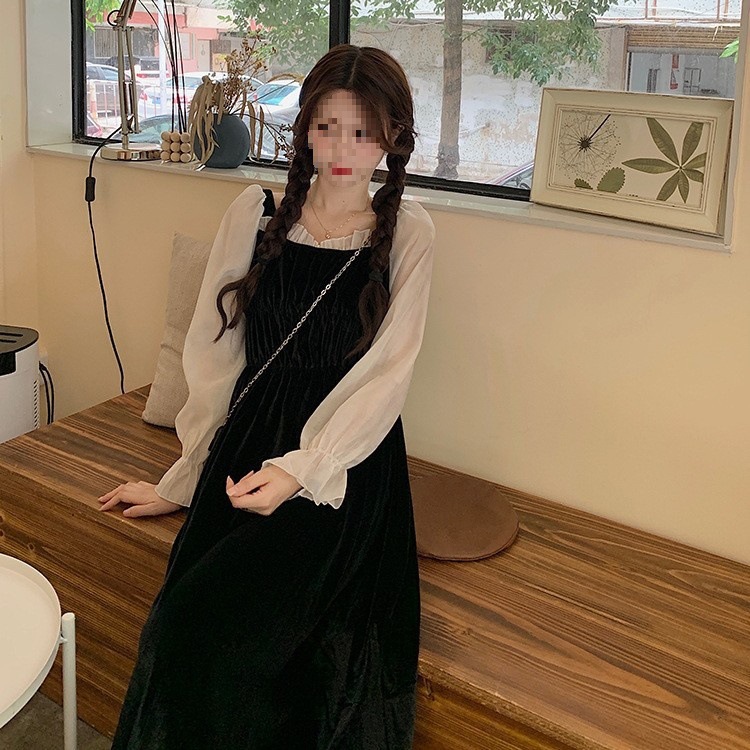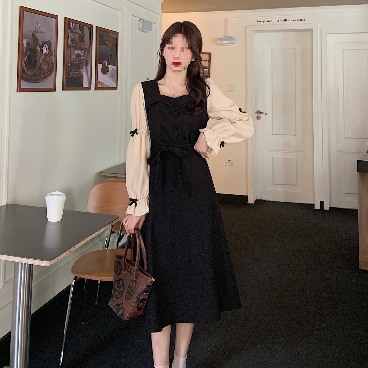 여성 여름 새로운 도착 블랙 원피스 프랑스 스타일 연령 감소 복고풍 광장 칼라 무릎 초과 긴 스커트스토어 가기