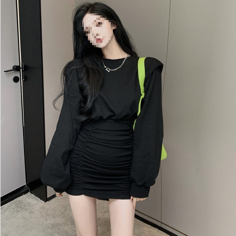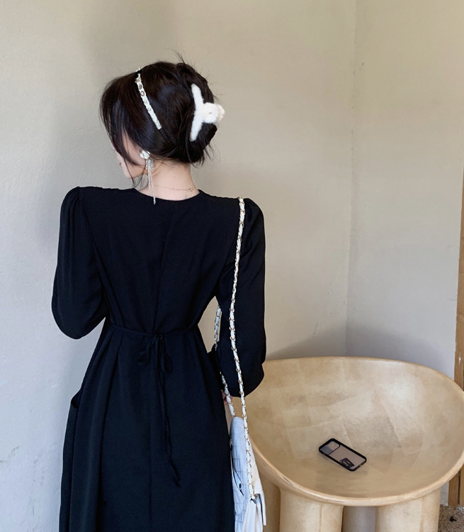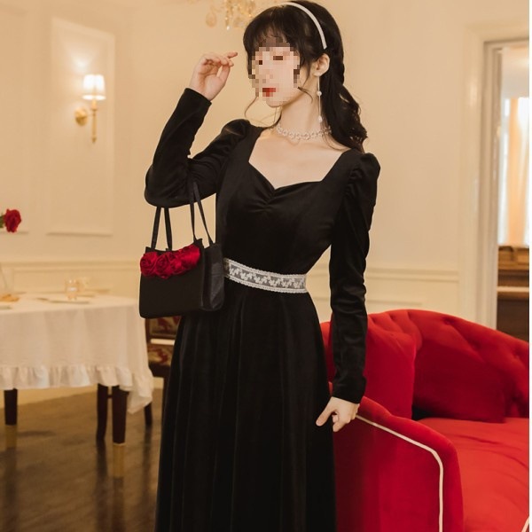 여성 여름 새로운 도착 블랙 원피스 프랑스 스타일 연령 감소 복고풍 광장 칼라 무릎 초과 긴 스커트