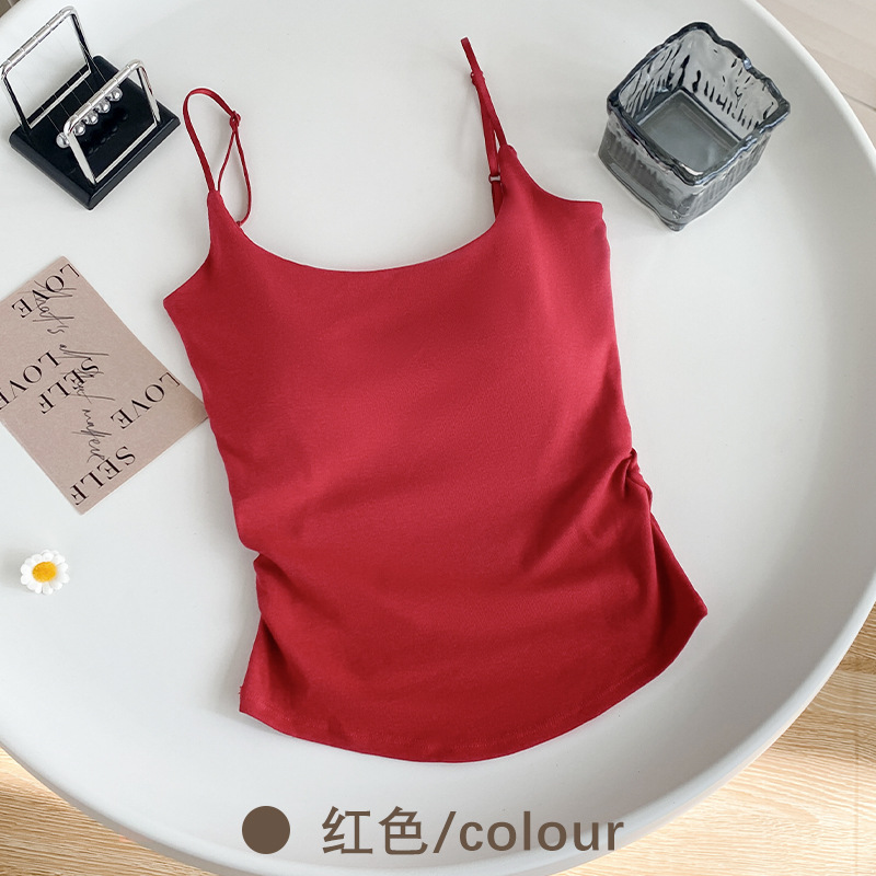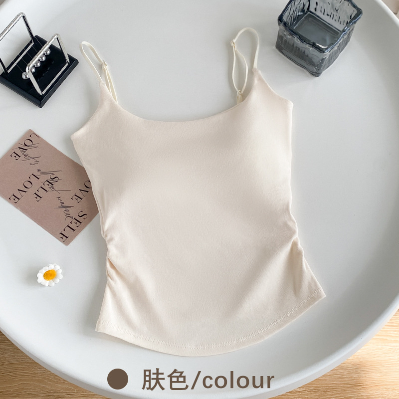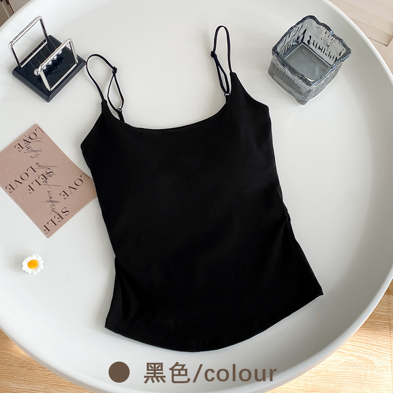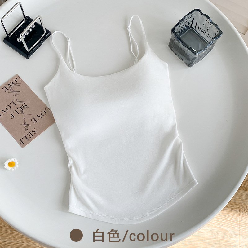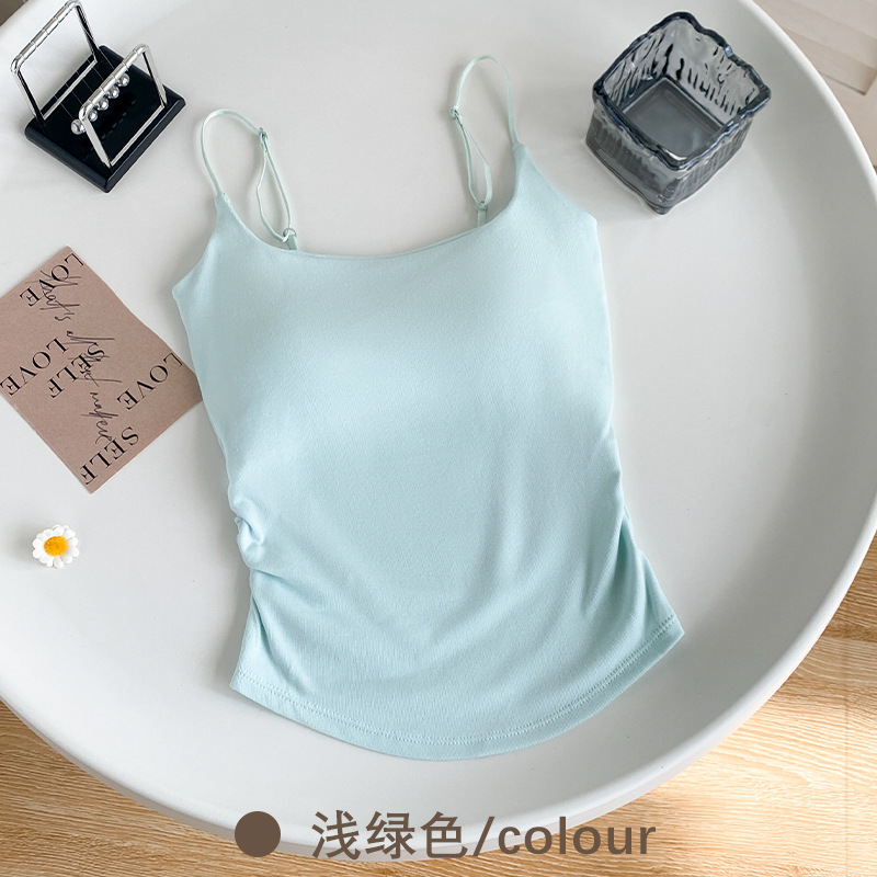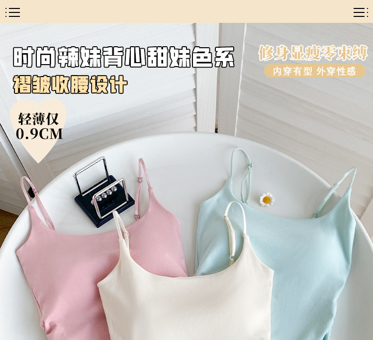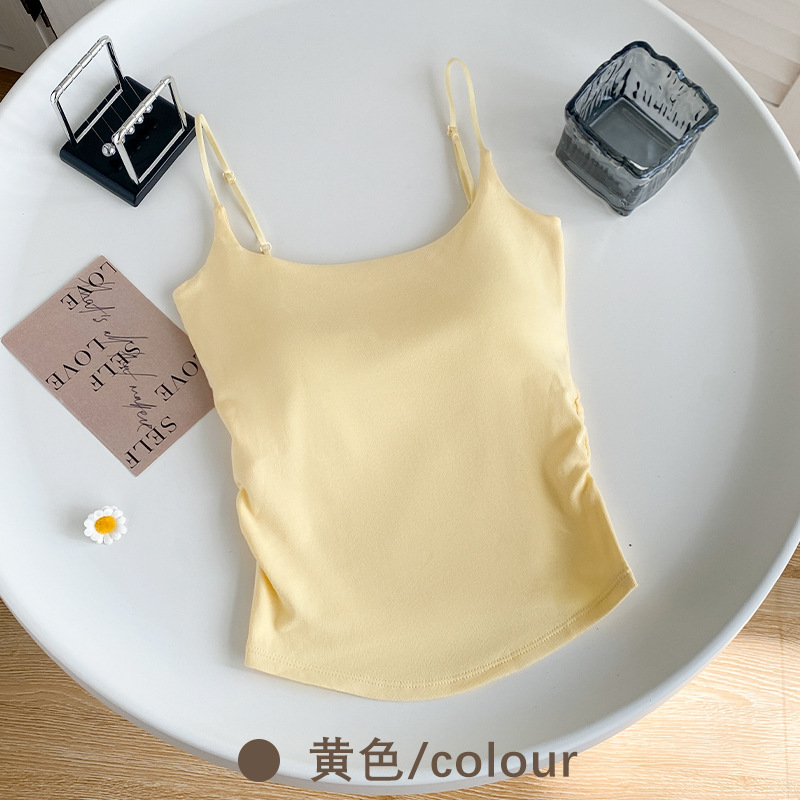 우유 노란색 조정 가능한 카미 솔 조끼 가슴 패드 여성의 여름 Pleated 허리 외부 착용 아름다운 뒤 내부 짧은 탑스토어 가기