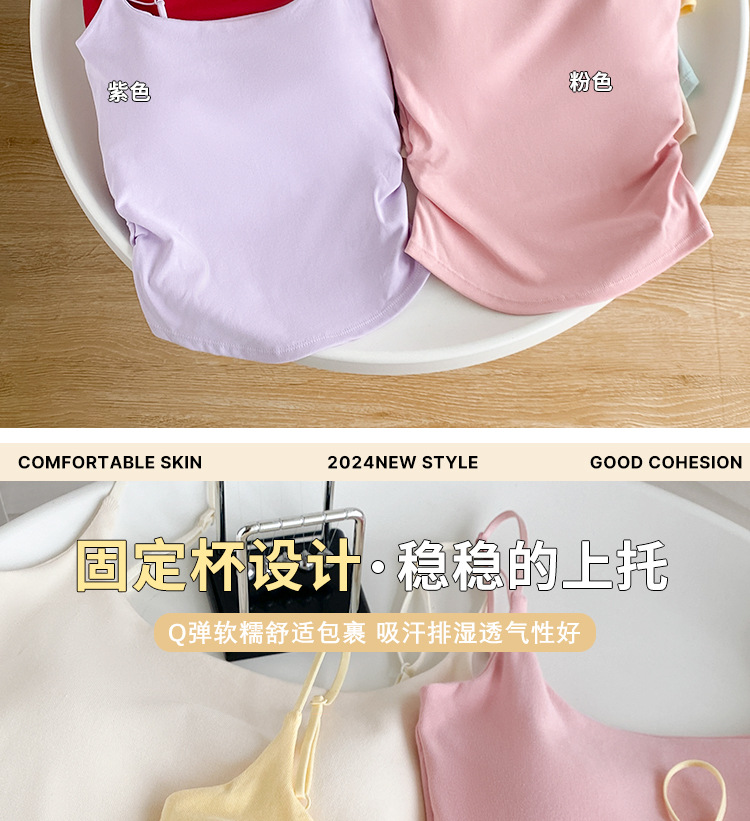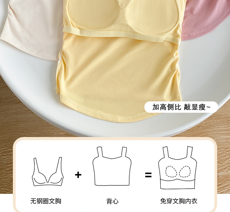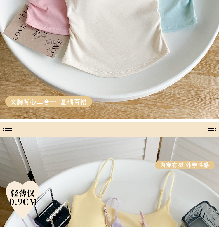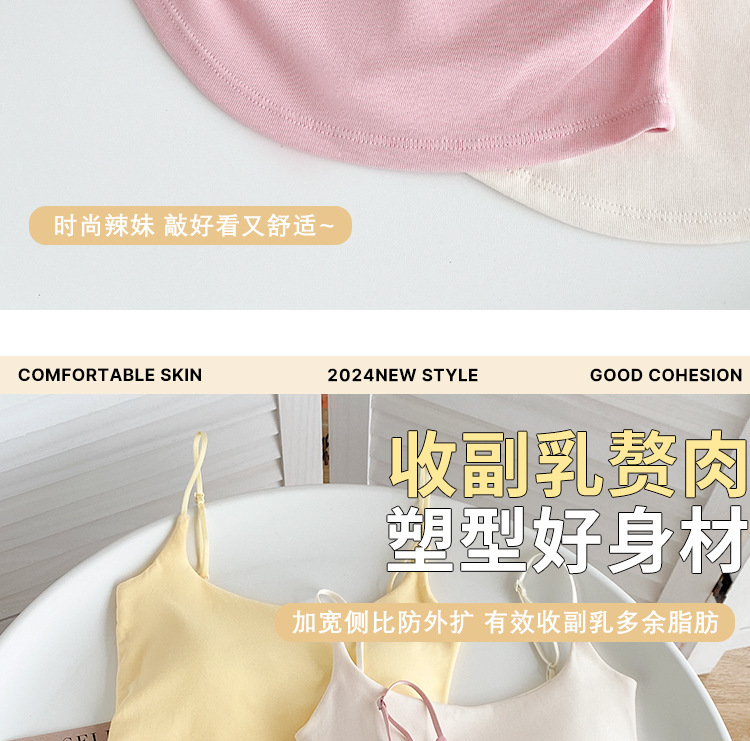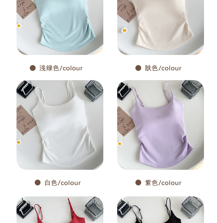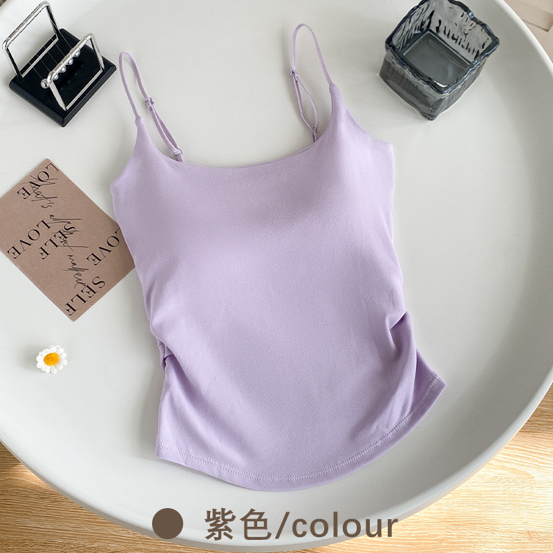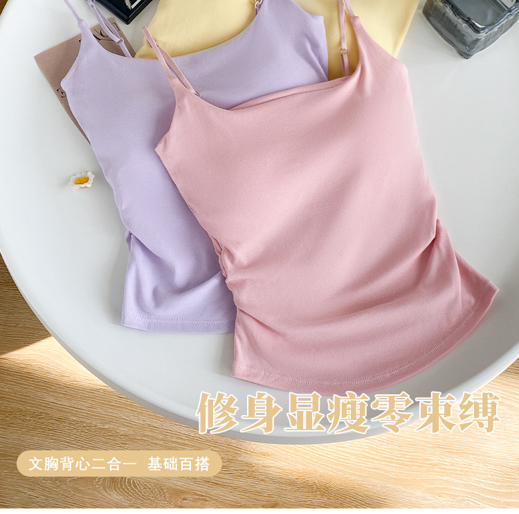 우유 노란색 조정 가능한 카미 솔 조끼 가슴 패드 여성의 여름 Pleated 허리 외부 착용 아름다운 뒤 내부 짧은 탑스토어 가기
