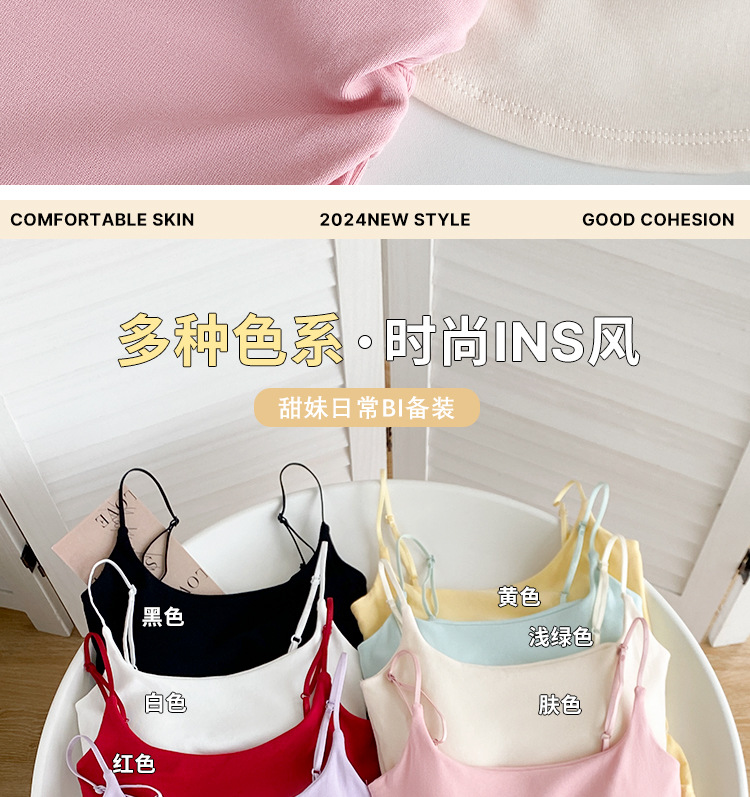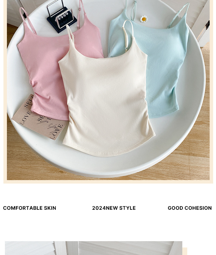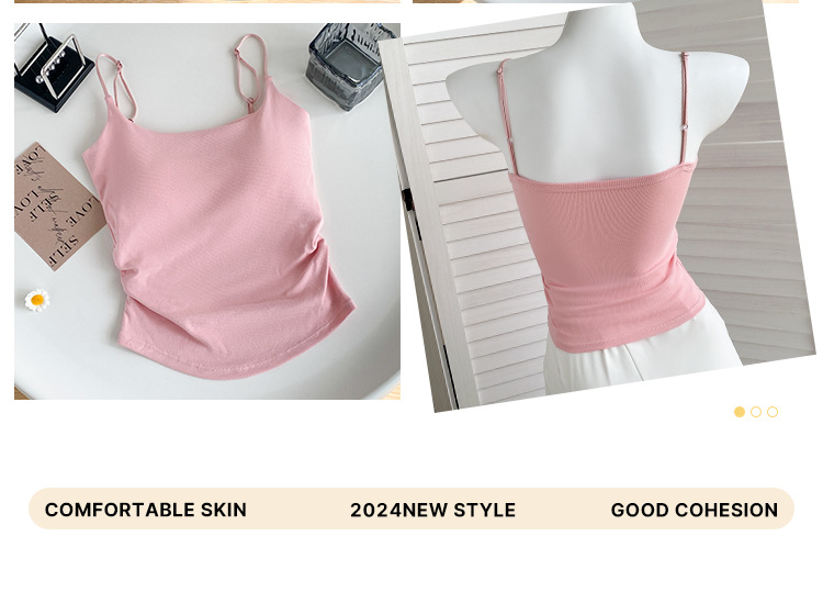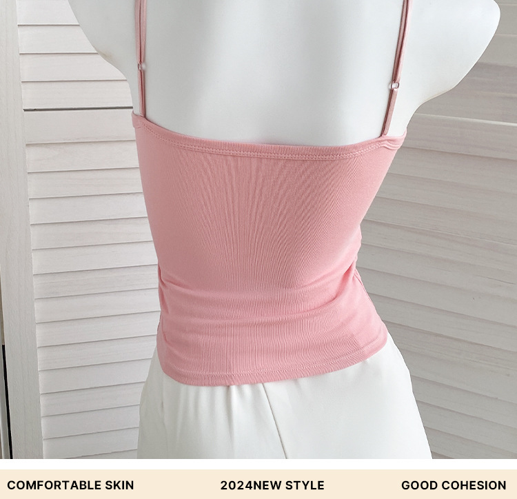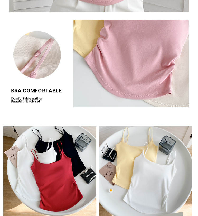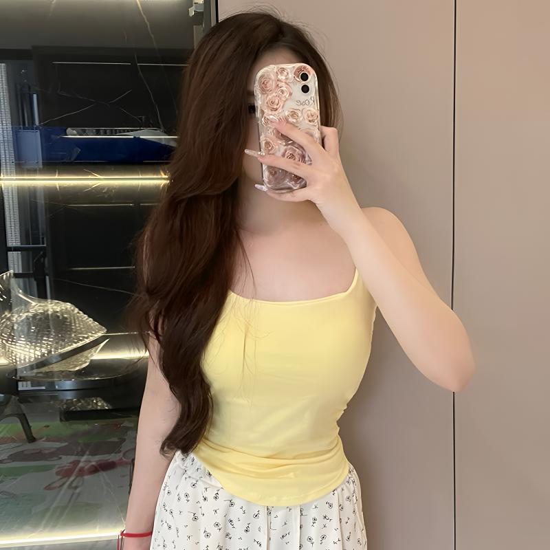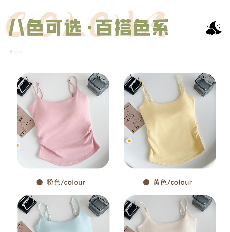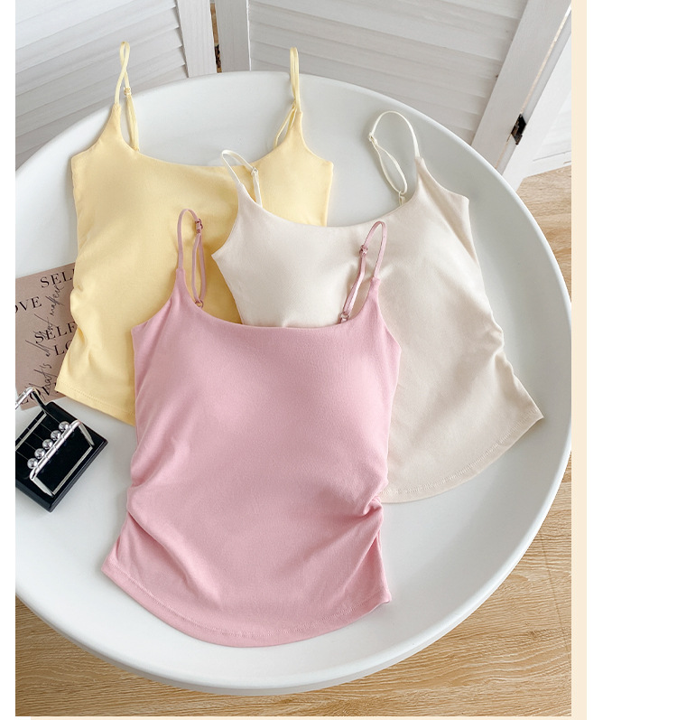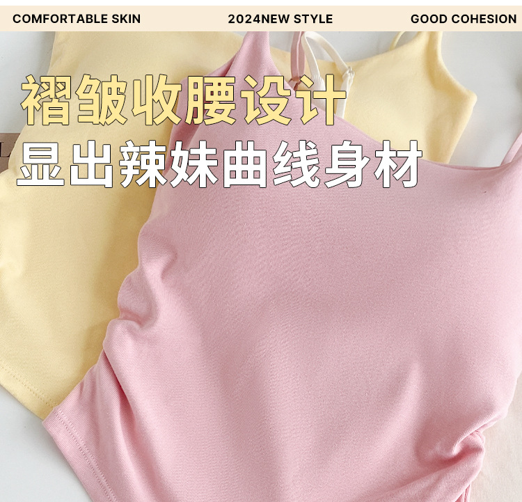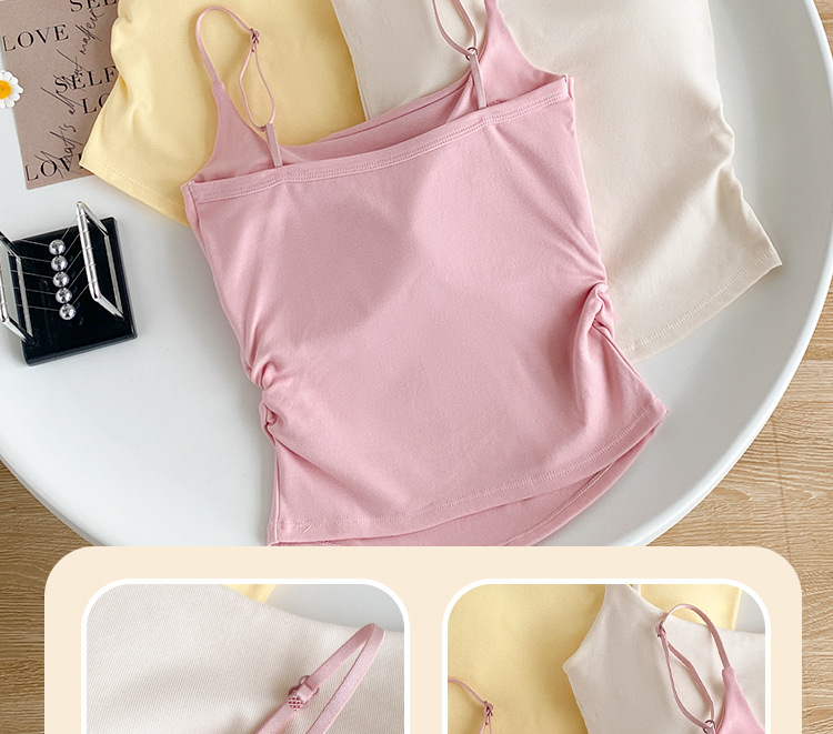 우유 노란색 조정 가능한 카미 솔 조끼 가슴 패드 여성의 여름 Pleated 허리 외부 착용 아름다운 뒤 내부 짧은 탑
